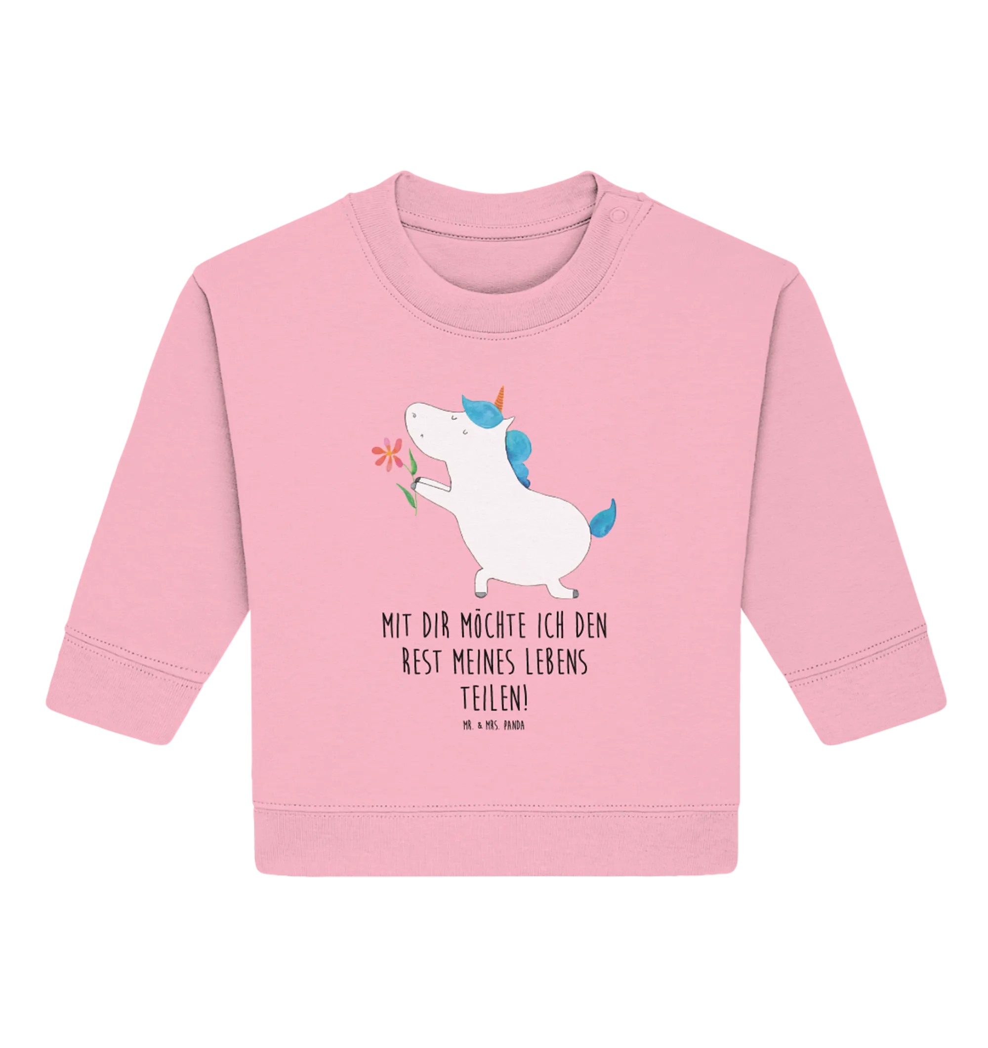 Der Organic Baby Pullover mit dem zauberhaften Einhorn Blume Design aus der Einhorn-Kollektion von Mr. & Mrs. Panda ist das perfekte Geschenk für kleine Einhorn-Fans und ihre Eltern! 🦄💖