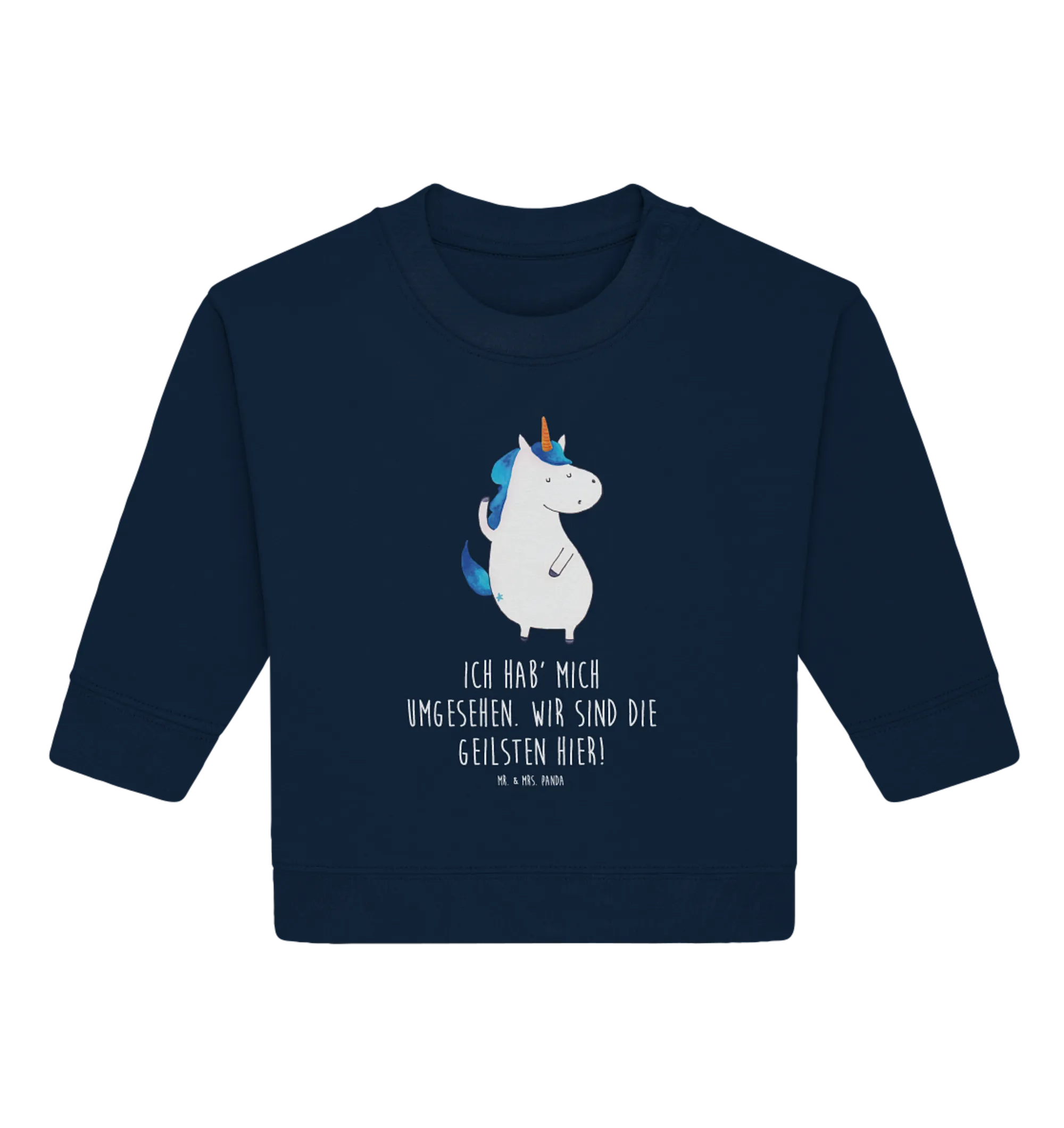 Mit seiner Hochqualität und dem tollen Design macht dieses Produkt nicht nur den kleinen Modebewussten glücklich, sondern auch die Eltern, die Wert auf Nachhaltigkeit und gute Materialien legen. Der Eco-Baby-Pullover ist ein wahres Must-Have für alle Einhorn-Fans. Bestelle jetzt und bereite jemandem eine wundervolle Freude mit diesem einzigartigen Geschenk! Das Einhorn sagt: "Ich hab' mich umgesehen. Wir sind die Geilsten hier!" Mit diesem Pullover wird es zum Ausdruck!