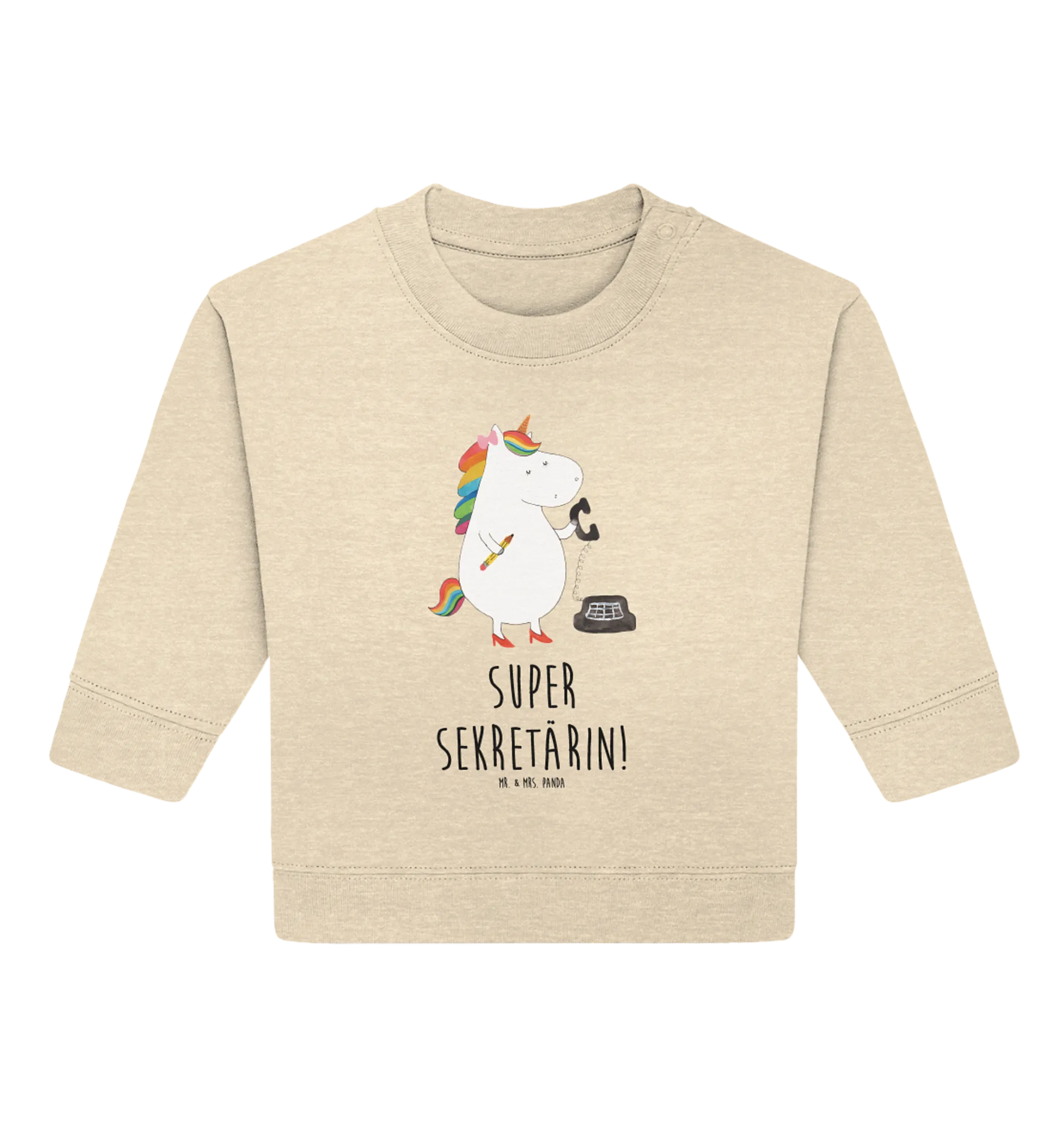 Der Organic Baby Pullover Einhorn Sekretärin aus der bezaubernden Einhorn-Kollektion von Mr. & Mrs. Panda ist das perfekte Geschenk für kleine Zauberwesen und ihre frischgebackenen Eltern! Dieser Pullover vereint niedliches Design mit unserem einzigartigen Einhorn-Motiv und dem liebevollen Slogan "Super Sekretärin!".