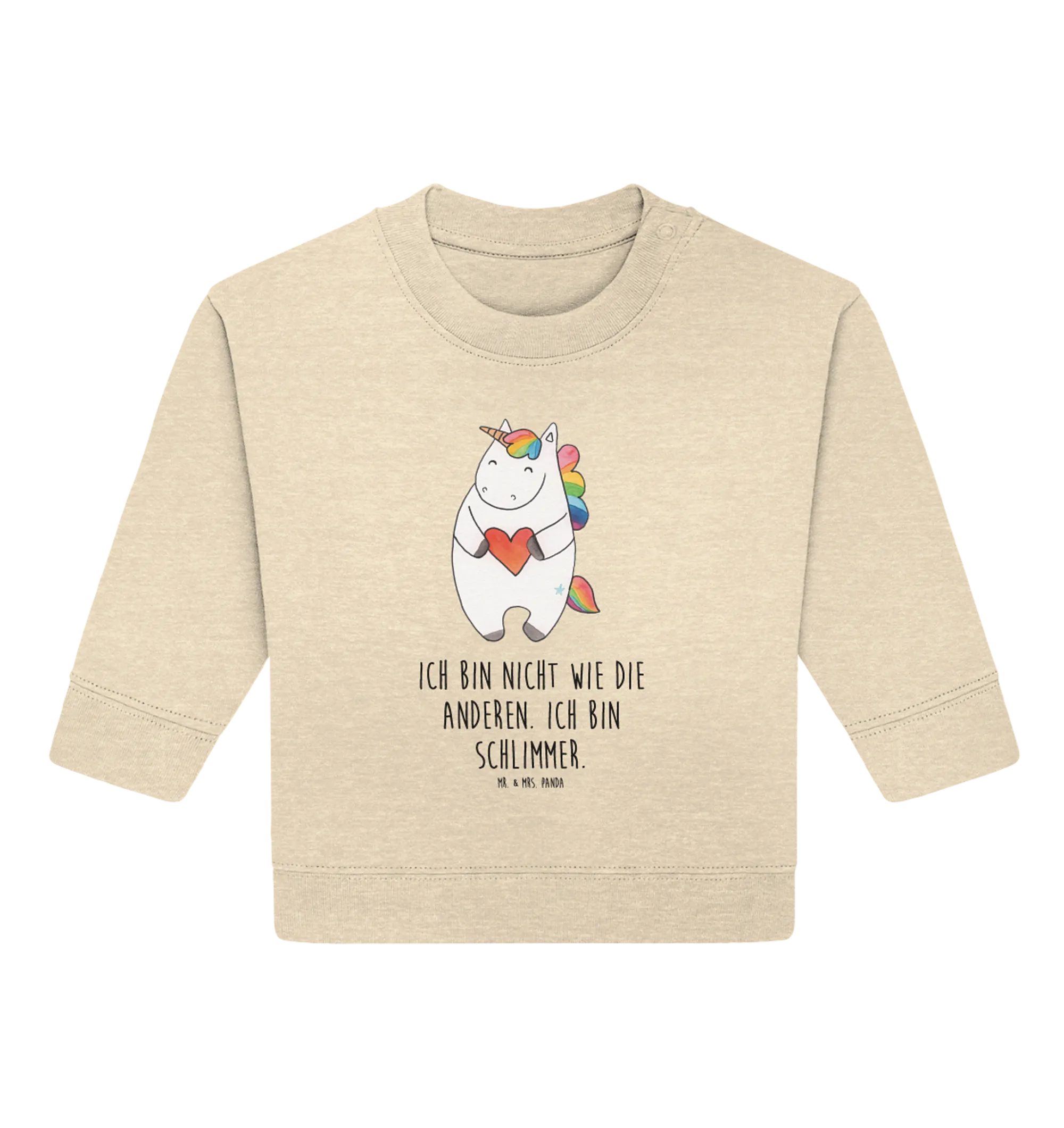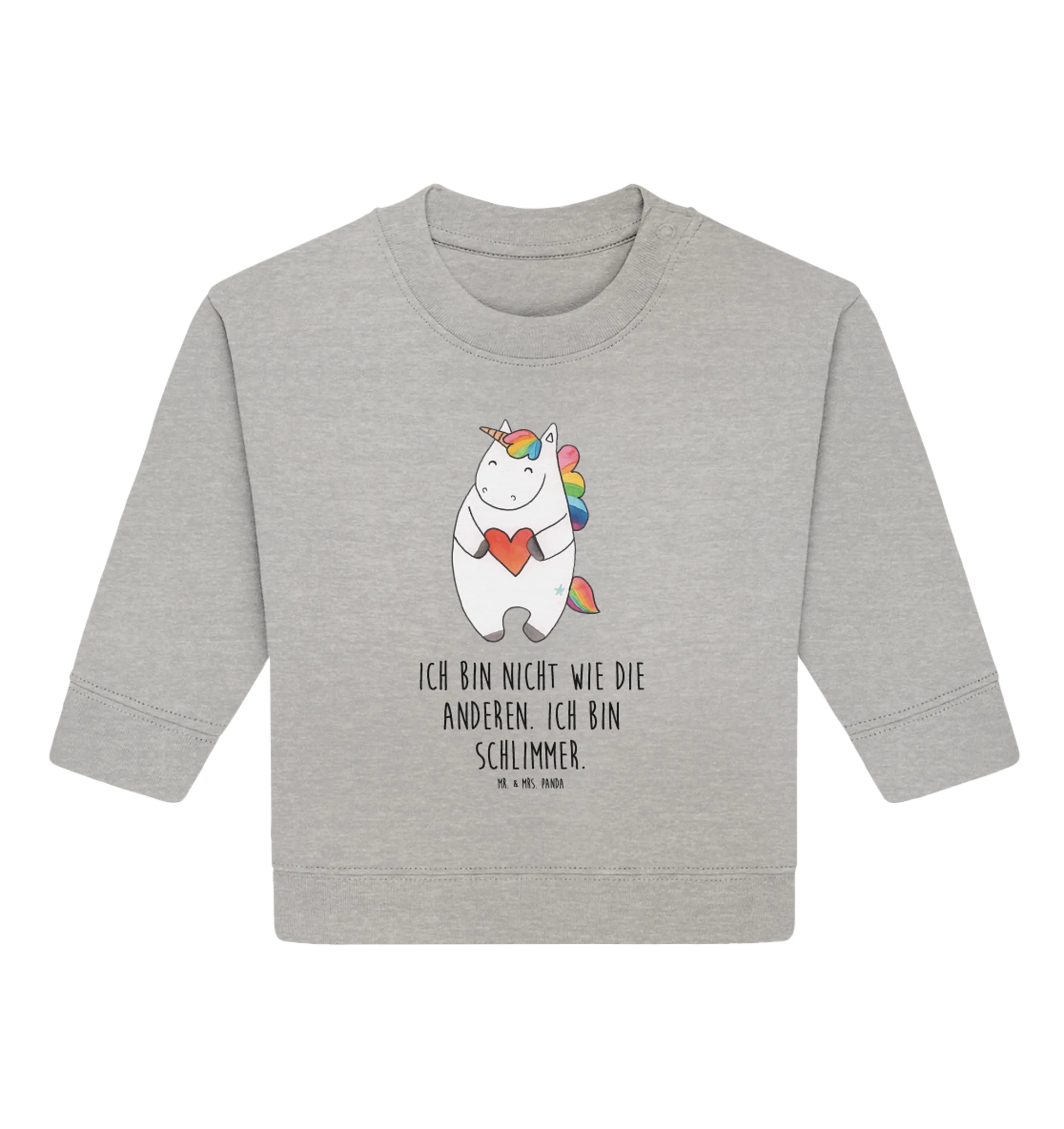 Entdecke den zauberhaften Organic Baby Pullover Einhorn Herz aus der Einhorn-Kollektion von Mr. & Mrs. Panda! Dieses süße und besonders weichgemachte Kleidungsstück ist genau das Richtige für dein kleines Einhorn oder als perfektes Geschenk für frischgebackene Eltern und ihre bezaubernden Babys.