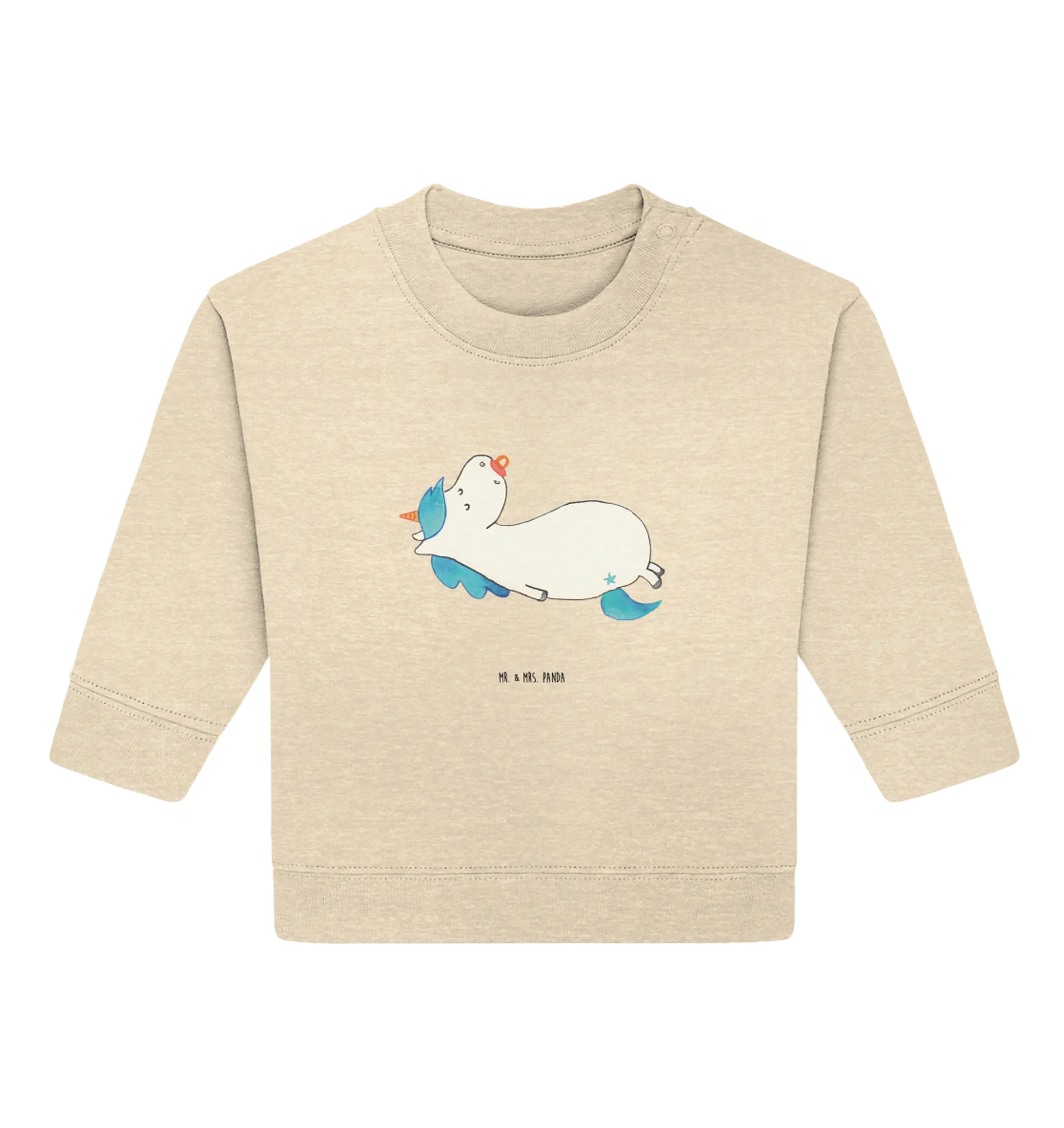 Der Organic Baby Pullover "Einhorn Schnullie" aus der süßen Einhorn-Kollektion von Mr. & Mrs. Panda ist das perfekte Geschenk für alle kleinen Einhorn-Liebhaber! Mit seinem fröhlichen Motiv eines zuckersüßen Einhorns, das friedlich mit einem Schnuller im Mund schläft, bringt dieser Pullover Freude und Wärme in den Alltag Deines Babys! Egal ob als Geschenk zur Geburt, zum Geburtstag oder einfach nur so – er wird garantiert Herzen erobern.