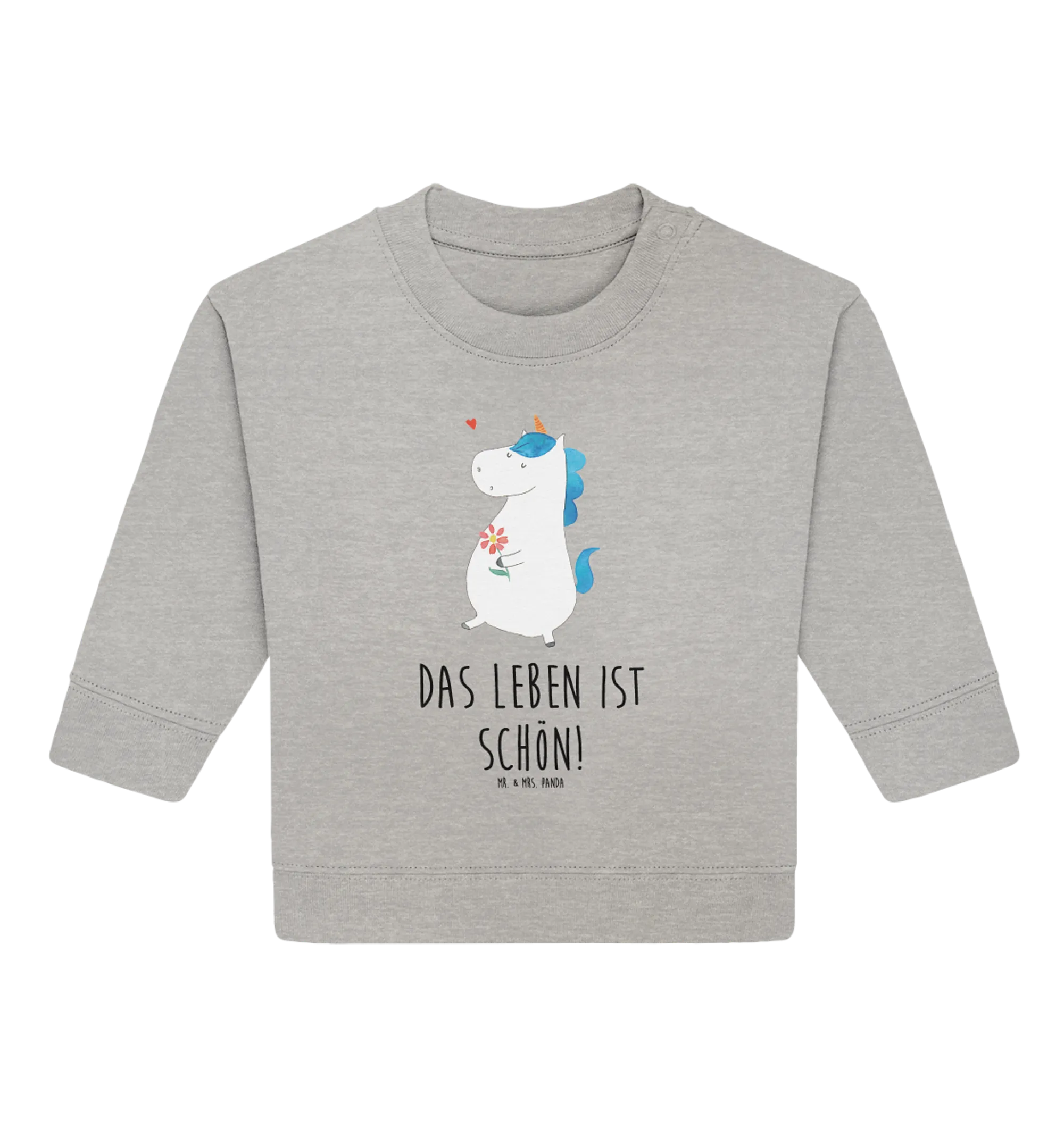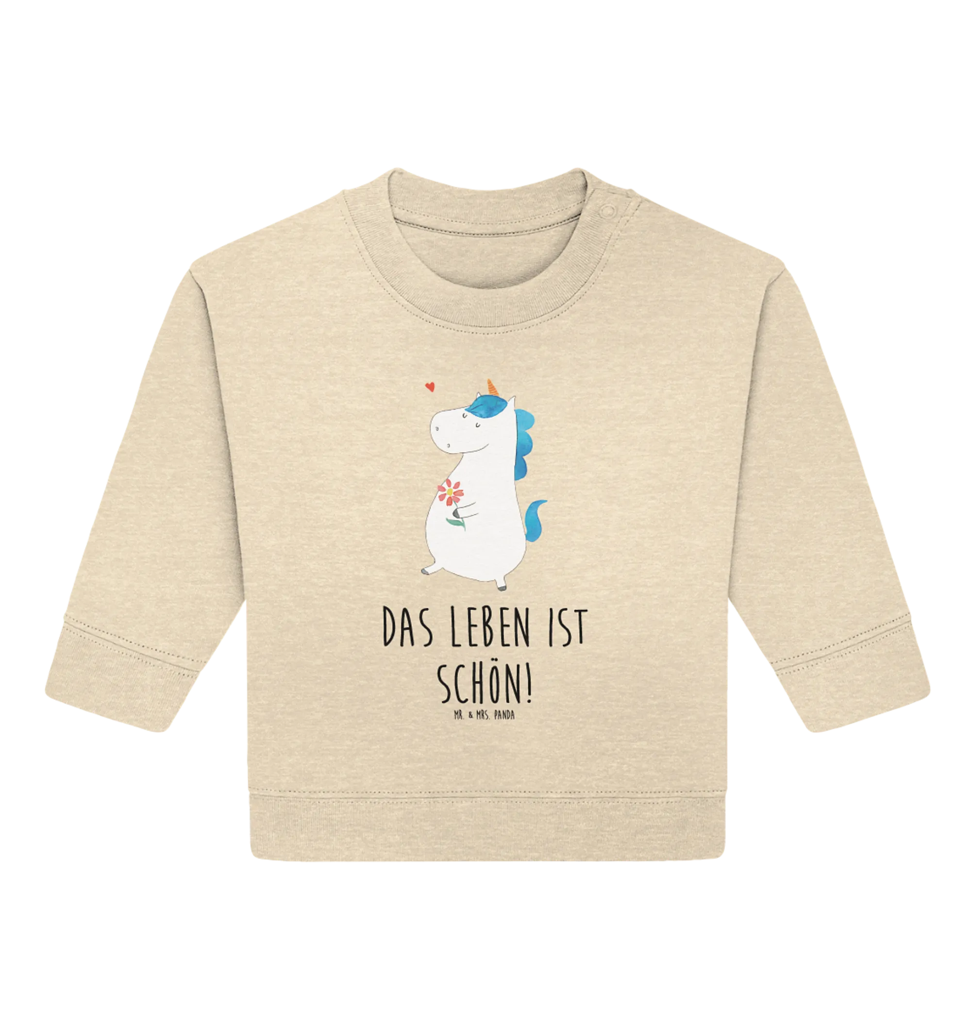 Die Einhorn - Kollektion von Mr. & Mrs. Panda ist nicht nur für kleine Einhorn-Fans, sondern auch ein tolles Geschenk für werdende Mütter, Großeltern, Tanten und Freundinnen. Du möchtest einem kleinen Geburtstagskind oder dem Baby eines Freundes eine besondere Freude bereiten? Dieser Pullover ist ideal für jeden Anlass! Die positive Botschaft "Das Leben ist schön!" wird sicher ein Lächeln ins Gesicht zaubern und die Vorfreude auf den nächsten Spaziergang ins Freie steigern.