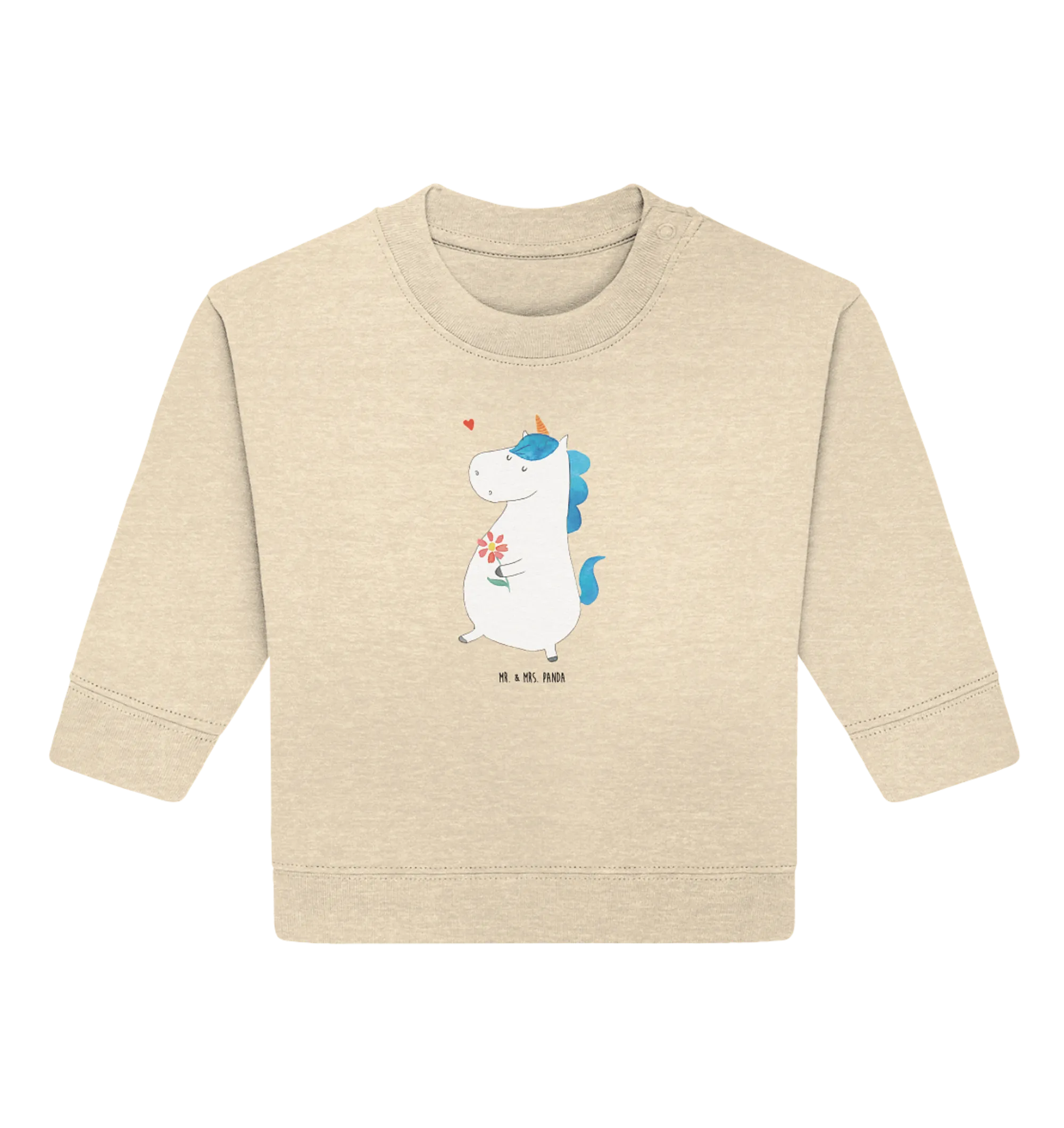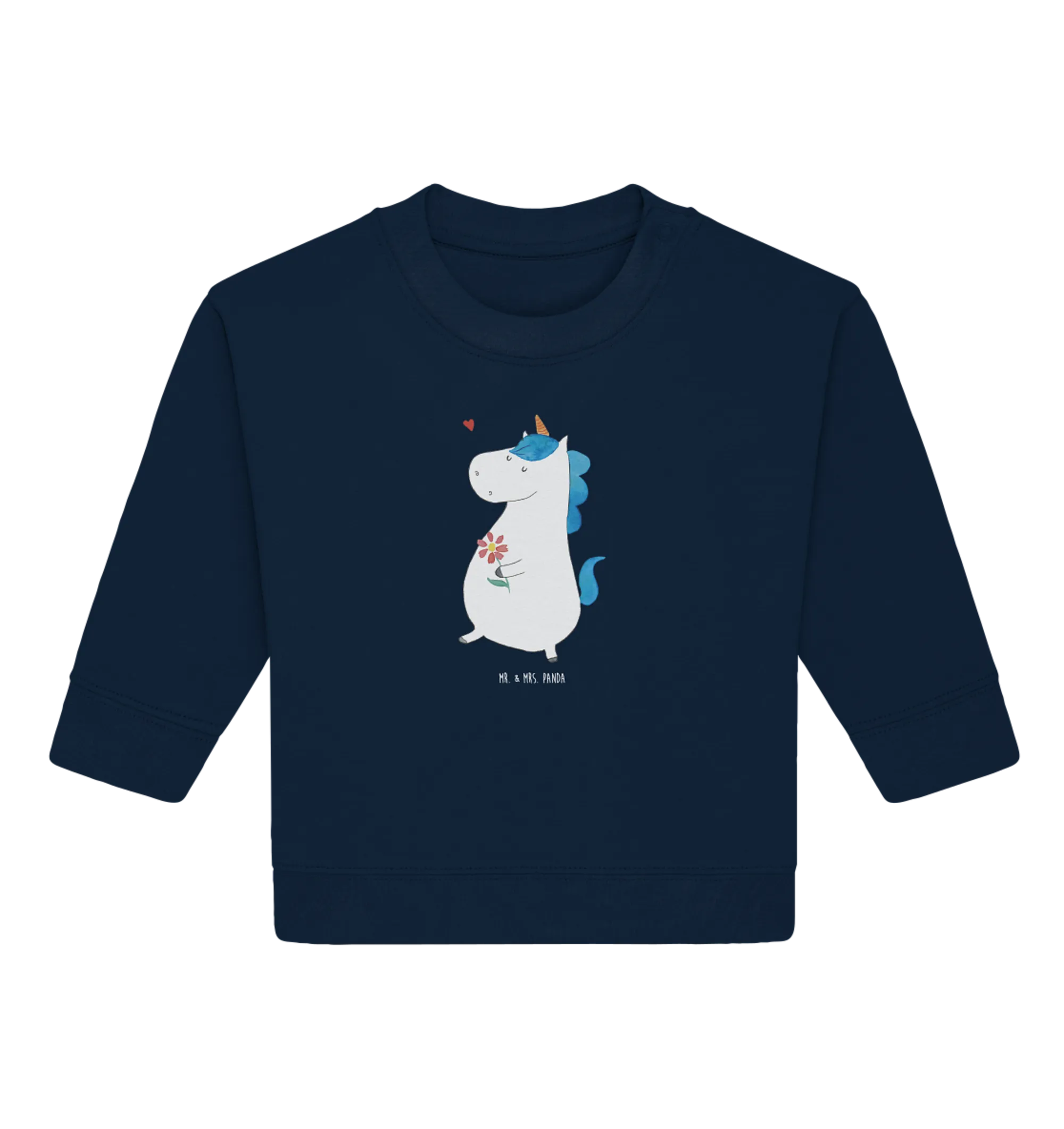 Der Organic Baby Pullover mit dem bezaubernden Motiv 'Einhorn Spaziergang' aus der Einhorn-Kollektion von Mr. & Mrs. Panda ist mehr als nur ein Kleidungsstück – er ist ein Stück Glück!