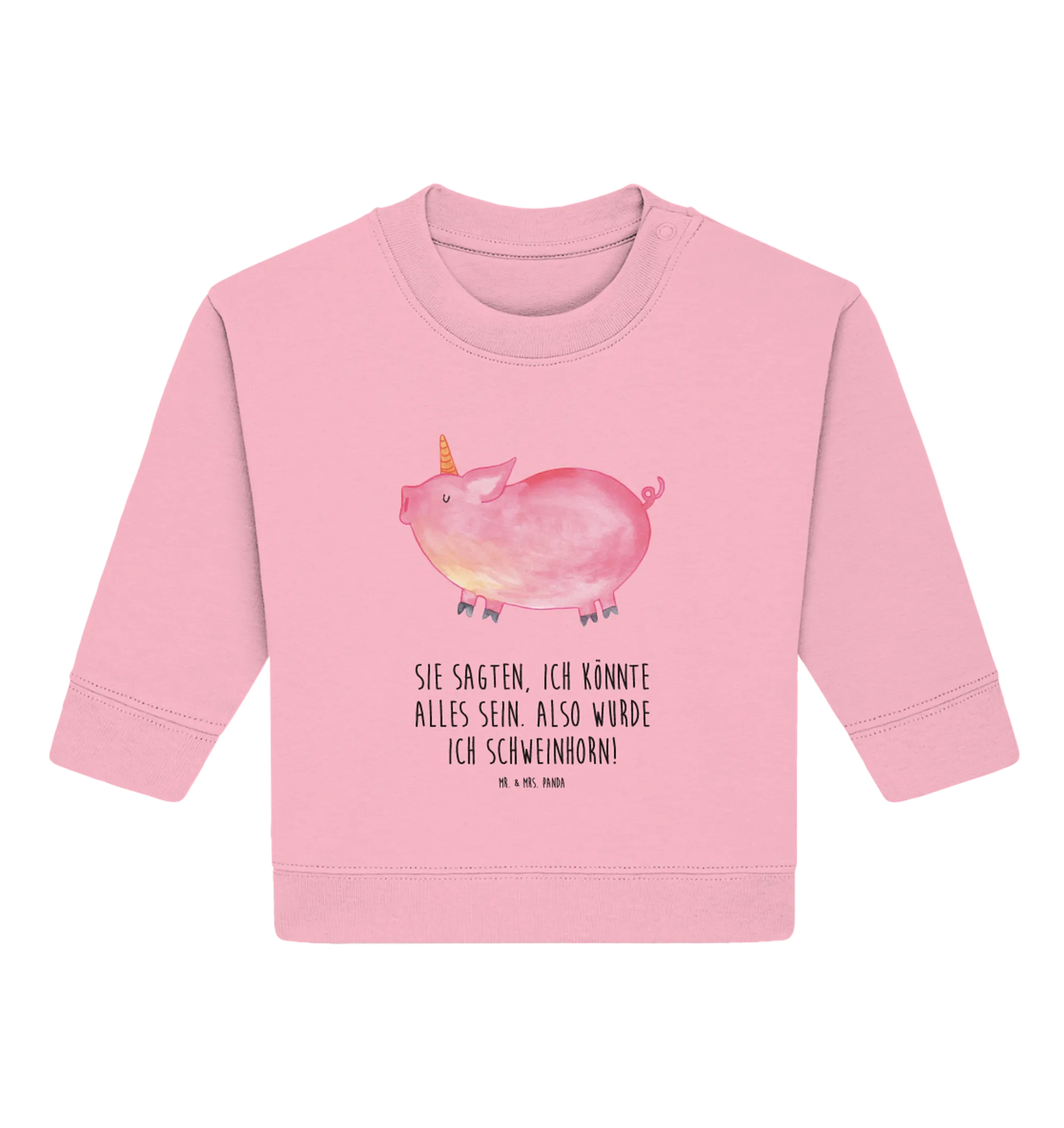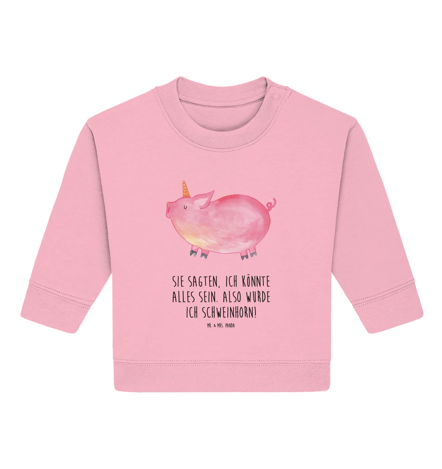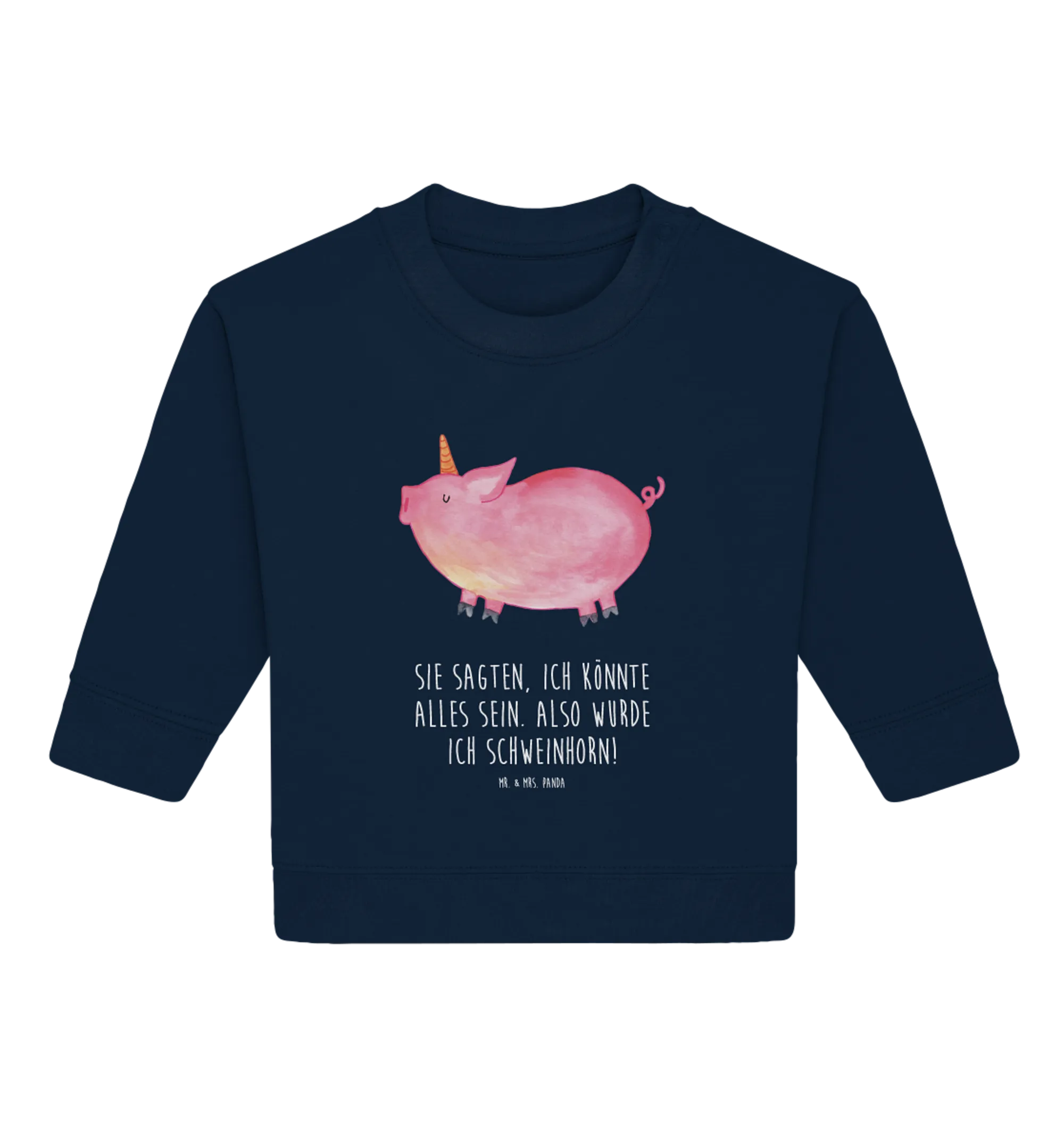 Die Einhorn-Kollektion von Mr. & Mrs. Panda umfasst eine Vielzahl von liebevoll handgezeichneten Designs, die nicht nur als Kleidung, sondern auch als wunderbare Geschenke für jeden Anlass dienen. Wenn Du auf der Suche nach einem besonderen Geschenk zur Geburt, zur Taufe oder einfach nur zur Freude eines kleinen Lieblings bist, ist dieser Baby Pullover eine hervorragende Wahl. Die Kombination aus witzigem Schweinhorn-Motiv und dem Spruch „Sie sagten, ich könnte alles sein. Also wurde ich Schweinhorn!“ macht ihn zu einem ganz besonderen Kleidungsstück.