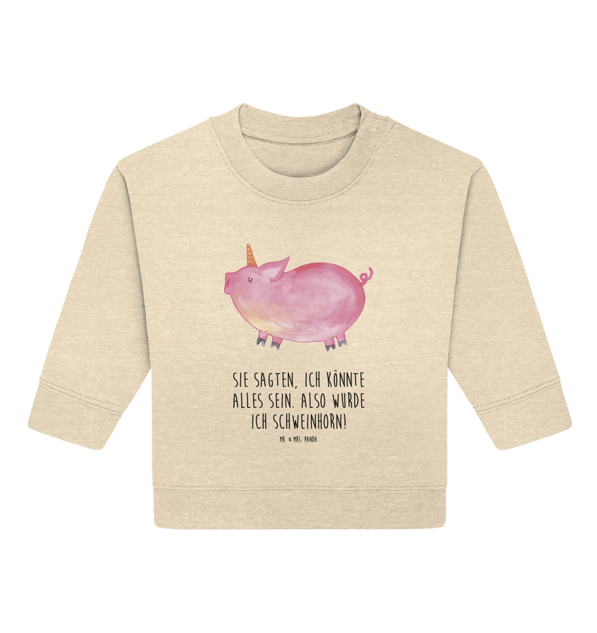 Der Organic Baby Pullover mit dem süßen Einhorn Schweinhorn Motiv aus der Einhorn-Kollektion von Mr. & Mrs. Panda ist das perfekte Geschenk für kleine Einhornliebhaber! Ob zum Geburtstag, zur Taufe oder einfach so, dieser Pullover bringt die Herzen aller Eltern und Kinder zum Schmelzen.
