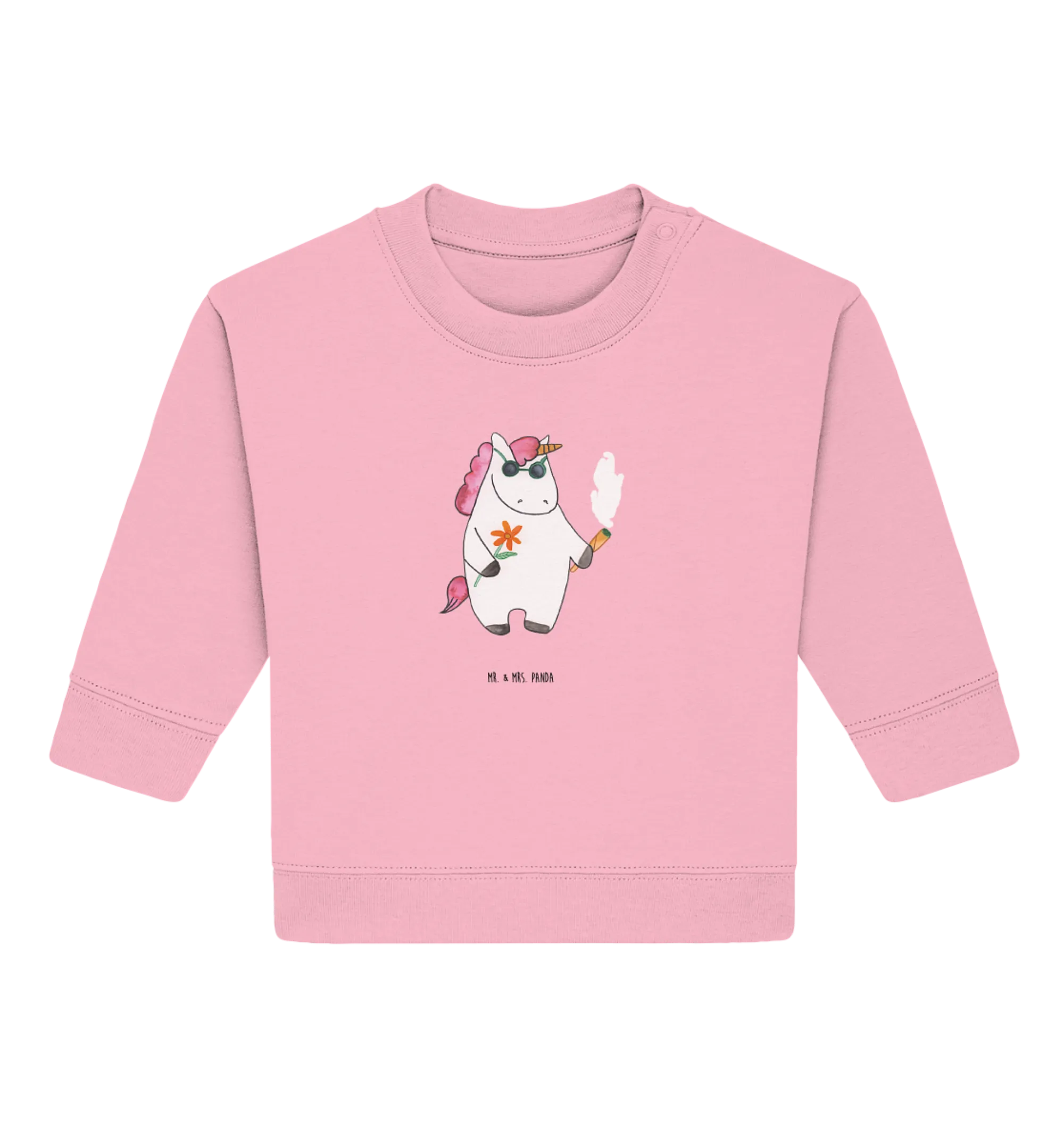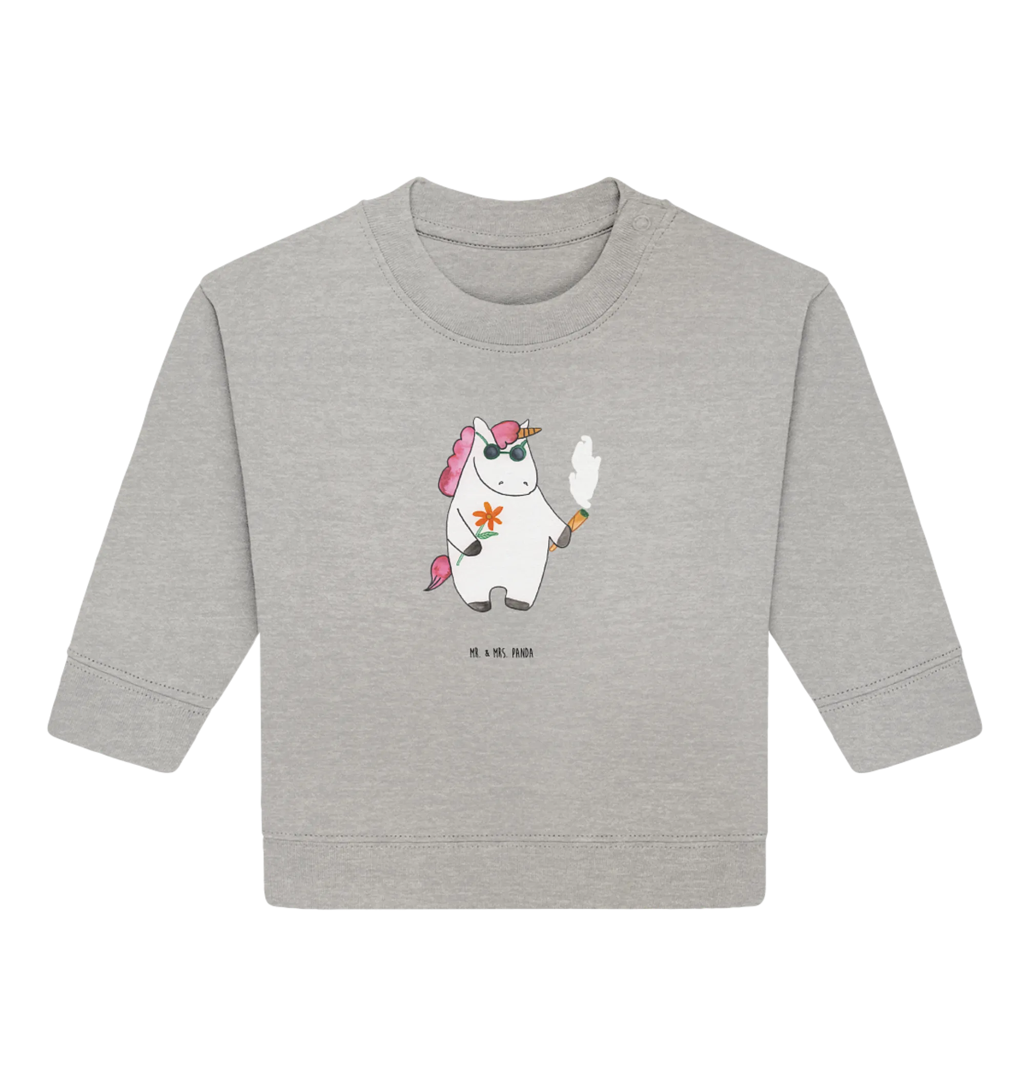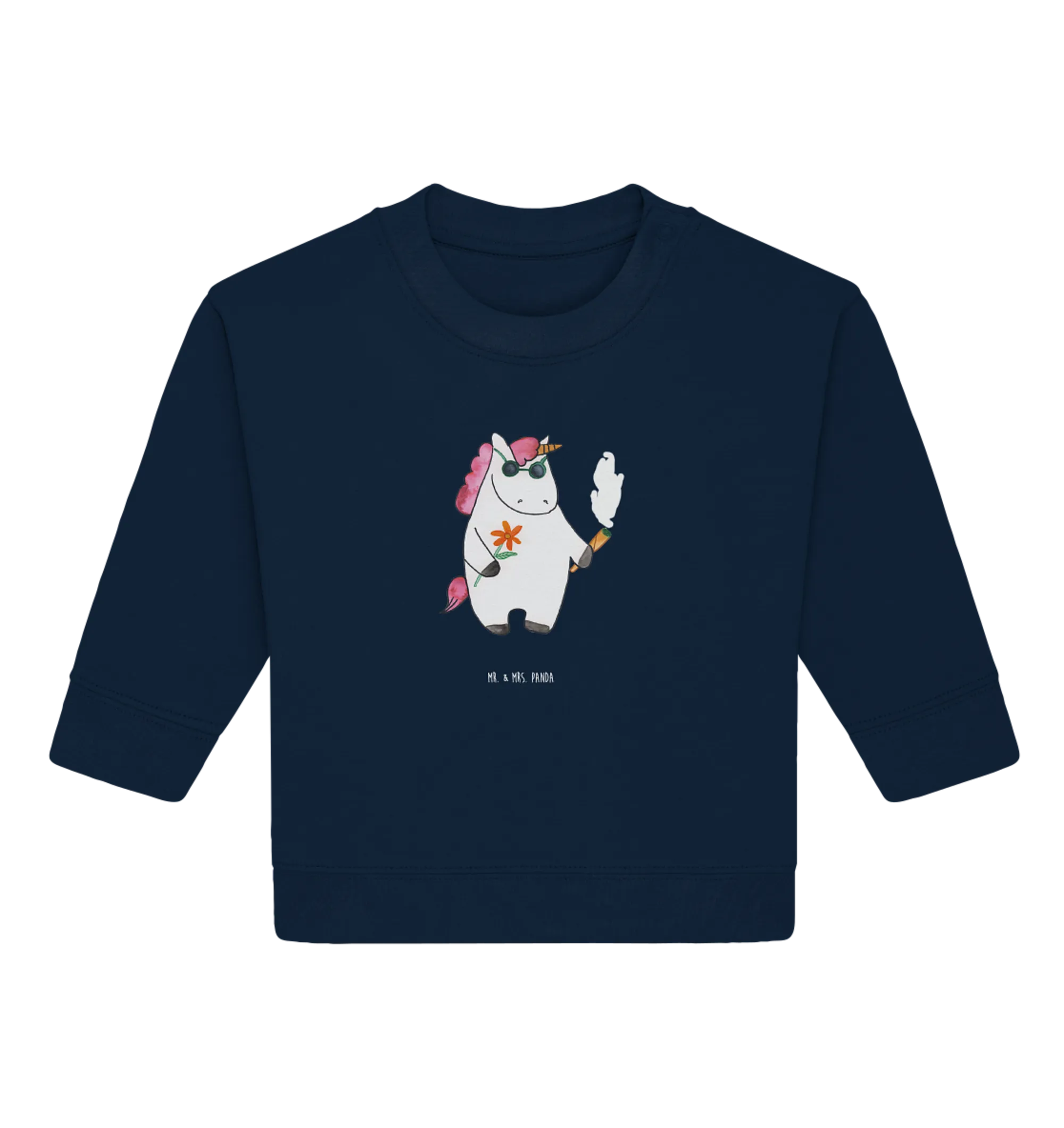 Entdecke den zauberhaften Organic Baby Pullover mit dem witzigen Einhorn Woodstock-Motiv aus der einmaligen Einhorn-Kollektion von Mr. & Mrs. Panda!