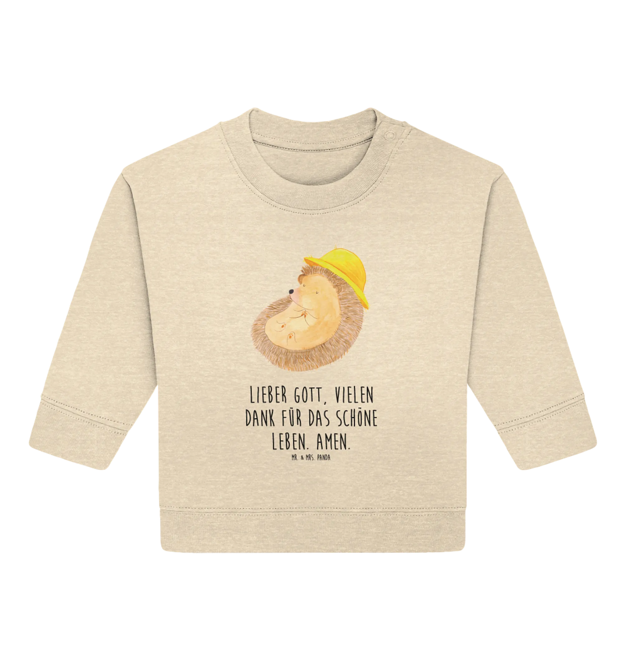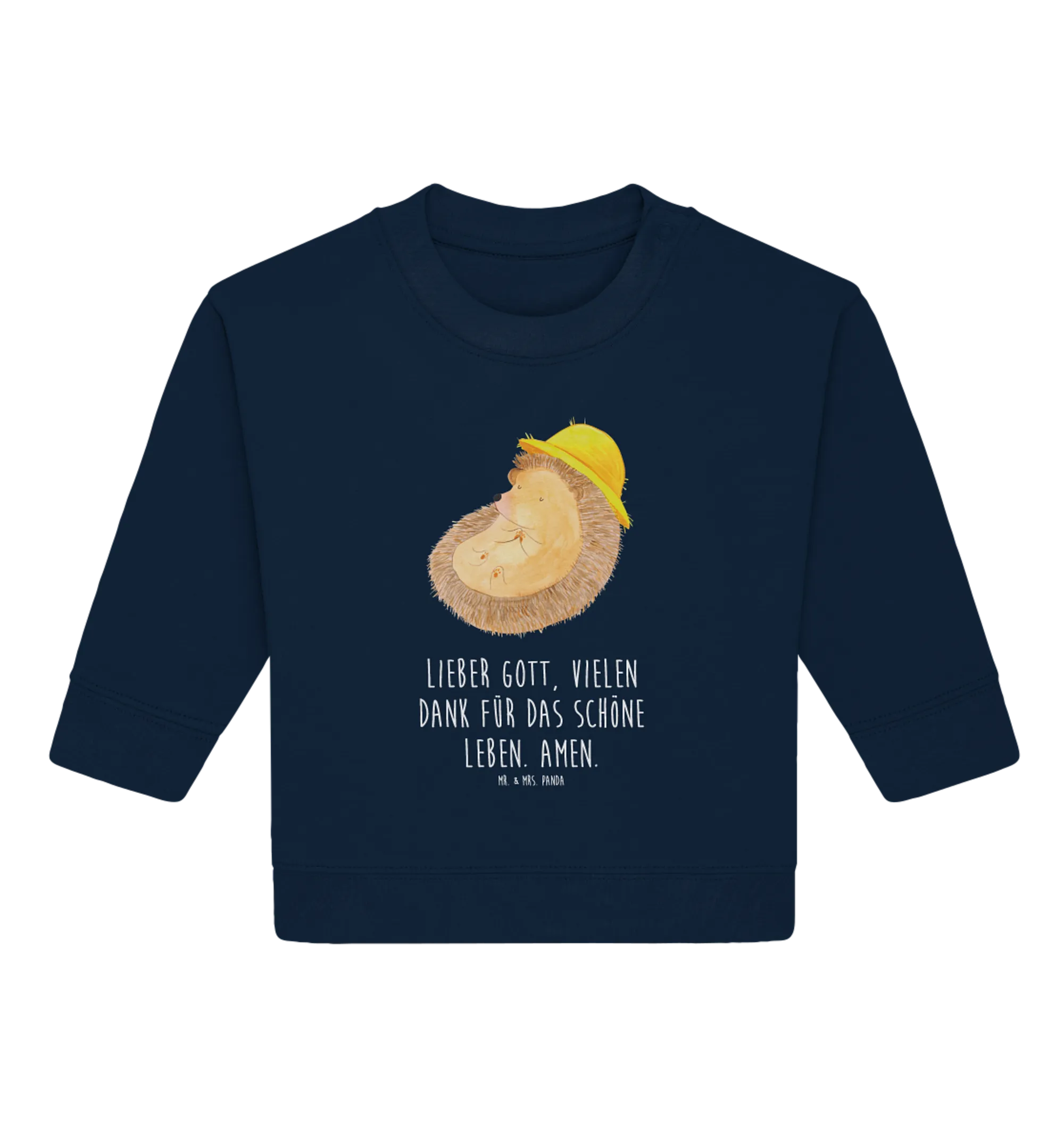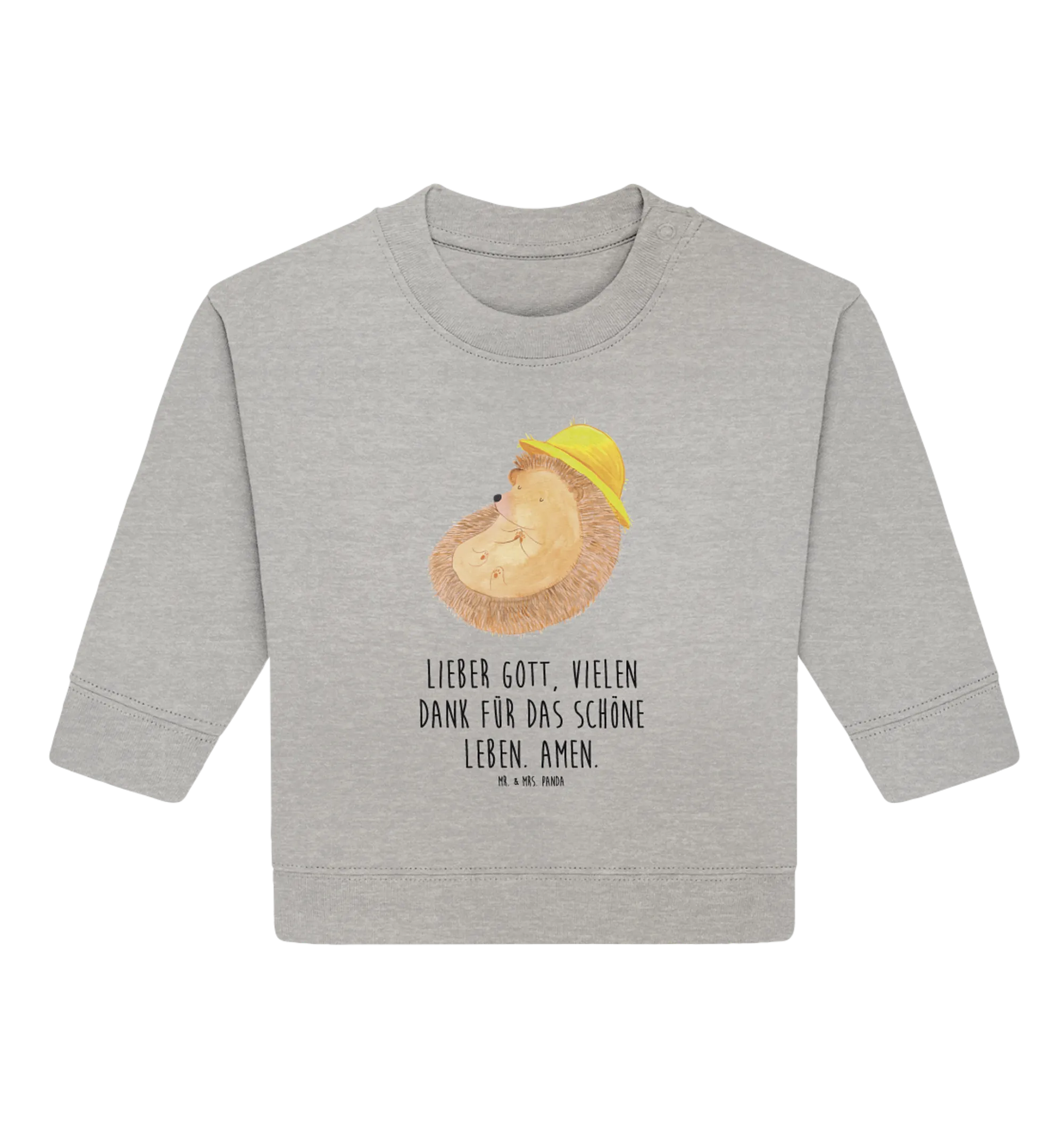 Der Organic Baby Pullover "Igel betet" aus der zauberhaften Small World Kollektion von Mr. & Mrs. Panda ist das perfekte Geschenk für kleine Entdecker und deren Eltern! Mit einem liebevoll gestalteten Motiv eines kleinen Igels, der seine Pfoten zum Gebet faltet, bringt dieser Pullover nicht nur eine gute Portion Freude in den Alltag, sondern vermittelt auch eine wertvolle Botschaft von Dankbarkeit und Besinnung. Der Slogan "Lieber Gott, vielen Dank für das schöne Leben. Amen." rundet das Design ab und erinnert jeden, der es sieht, an die kleinen Wunder des Lebens.