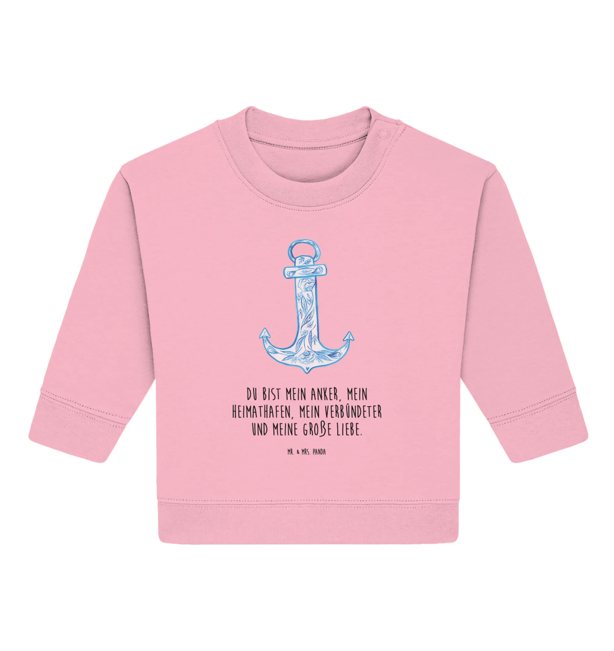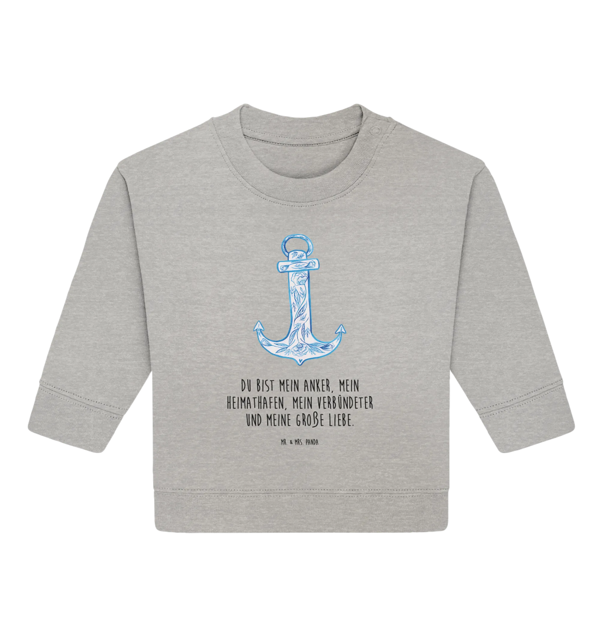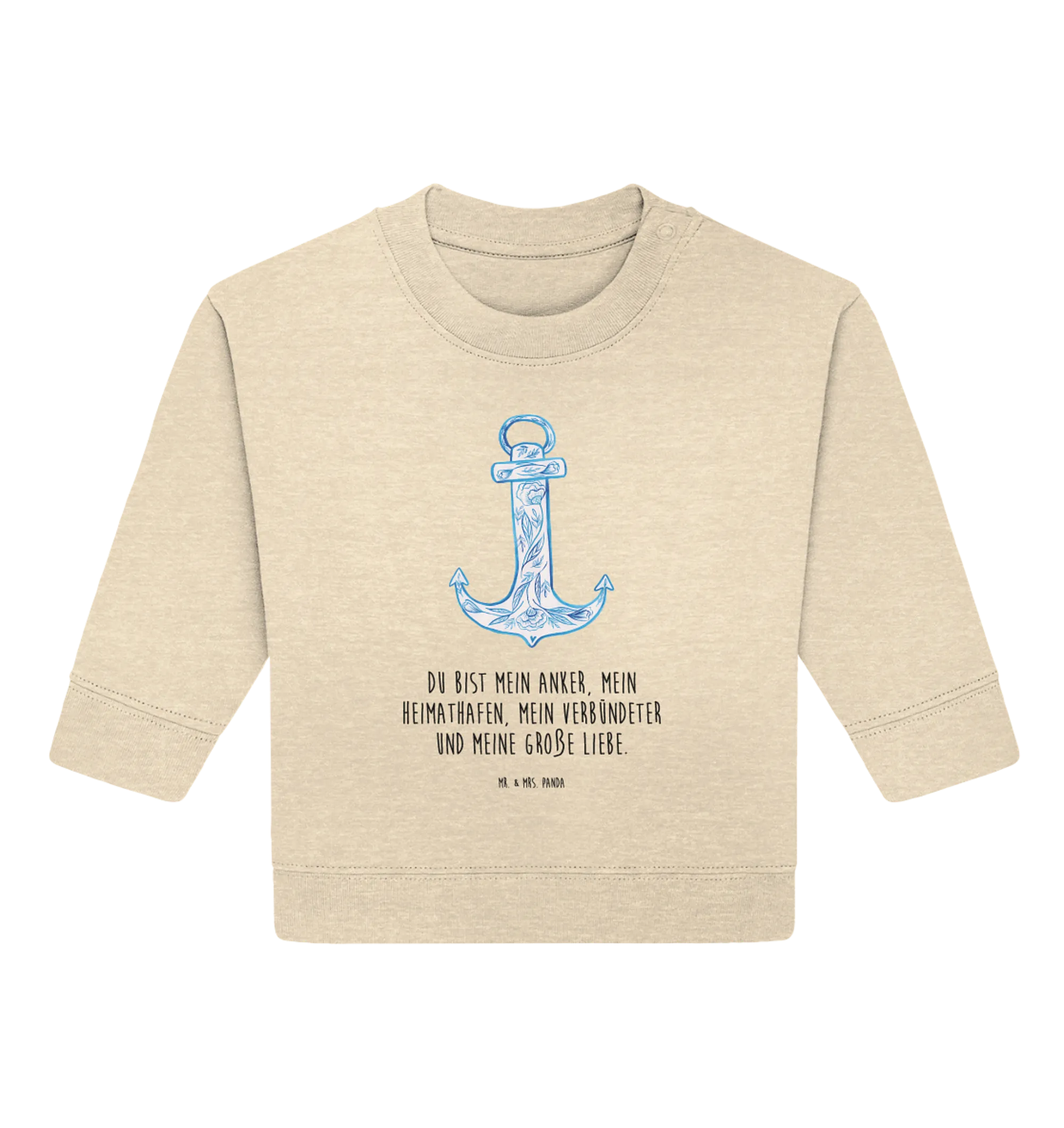 Du suchst das perfekte Geschenk für ein kleines Erdenbürger? Der Organic Baby Pullover Anker Blau aus der beliebten Small World Kollektion von Mr. & Mrs. Panda ist genau das richtige! Dieser liebevoll gestaltete Pullover mit dem bezaubernden Anker-Motiv bringt nicht nur gute Laune, sondern auch eine Botschaft der Verbundenheit und Liebe mit sich. Der süße Spruch "Du bist mein Anker, mein Heimathafen, mein Verbündeter und meine große Liebe." ist als zeitloses Motto eine wunderbare Begleitung für dein Baby.
