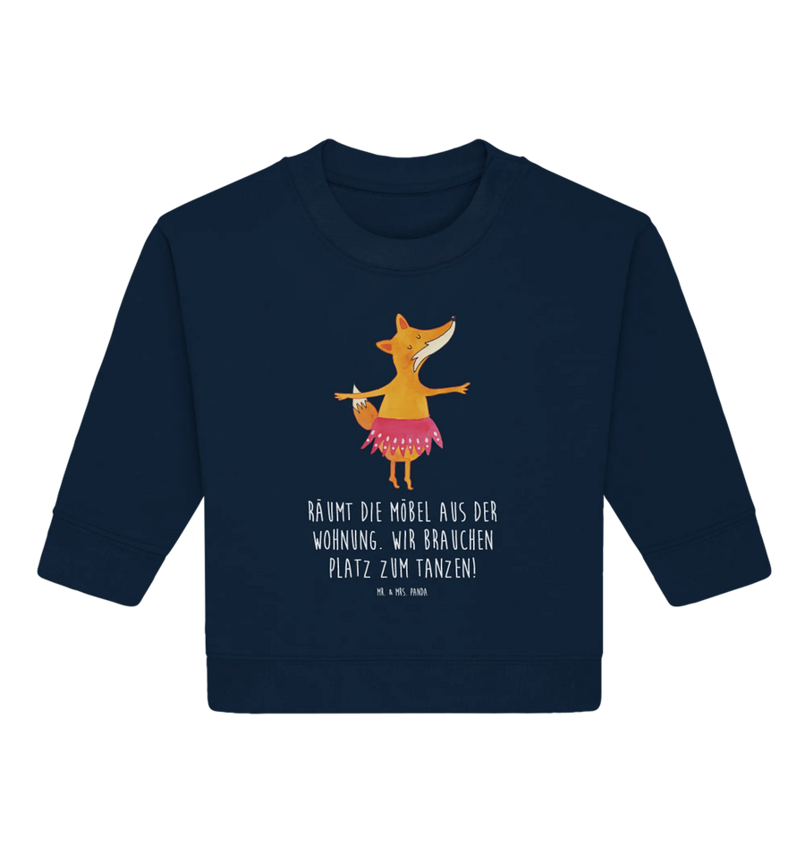 Das bezaubernde Motiv des Fuchs Ballerina mit dem witzigen Slogan 'Räumt die Möbel aus der Wohnung. Wir brauchen Platz zum Tanzen!' lädt dazu ein, fröhlich durch das Kinderzimmer zu tanzen und sorgt für viele Lächeln. Wenn du auf der Suche nach einem besonderen Geschenk für einen Geburtstag, eine Einladung zur Feier oder einfach nur fürs eigene Baby bist, dann ist dieser Pullover die perfekte Wahl.