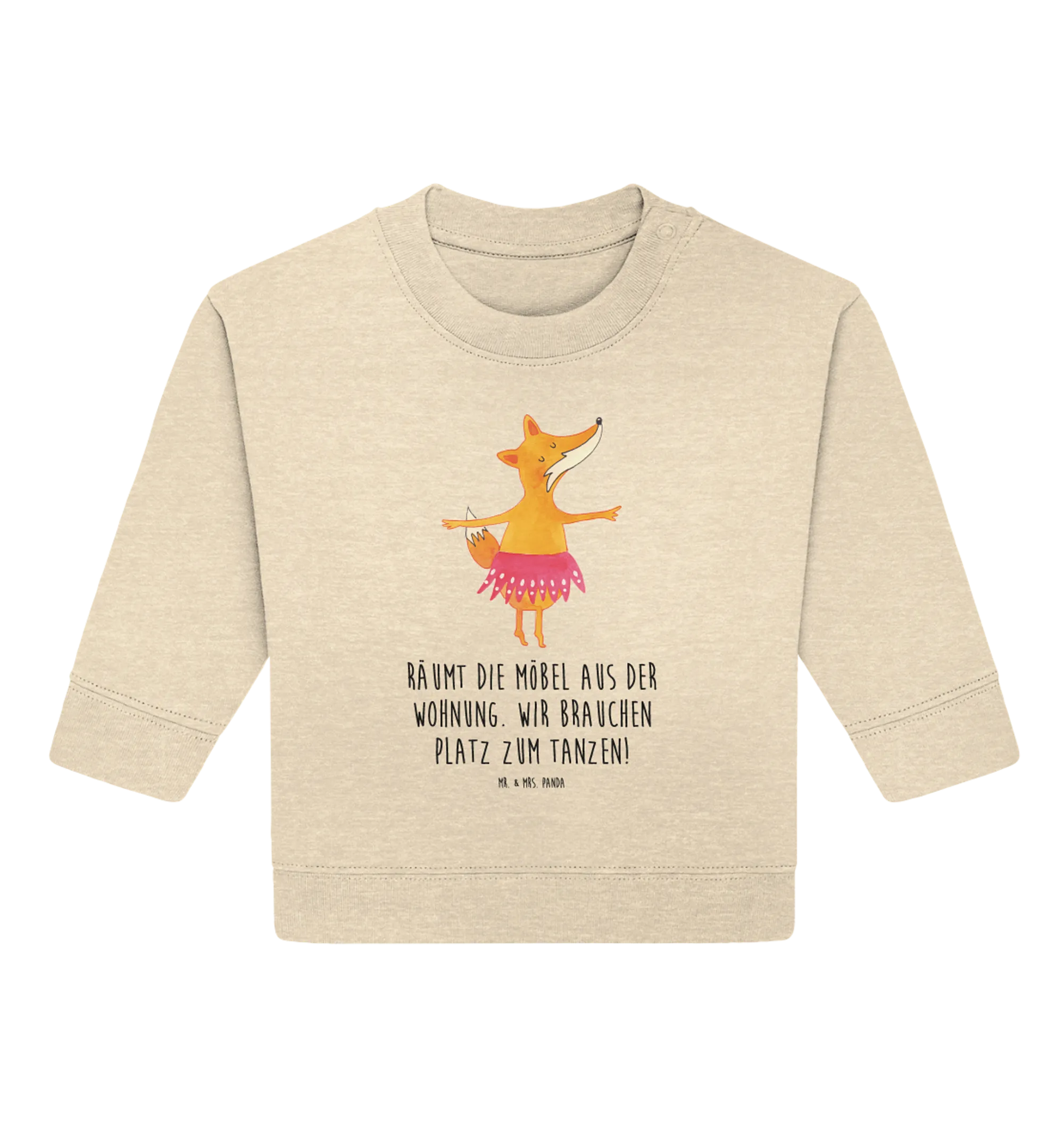 Der Organic Baby Pullover mit dem süßen Fuchs-Motiv und dem niedlichen Spruch "Räumt die Möbel aus der Wohnung. Wir brauchen Platz zum Tanzen!" ist einfach perfekt für kleine Tanzmäuse und kann zu vielen Anlässen verschenkt werden. Ob zum Geburtstag, zur Party oder einfach so als Geschenk für die kleinen Lieblinge in deinem Leben – dieser Pullover sorgt für ein Lächeln auf jedem Gesicht.