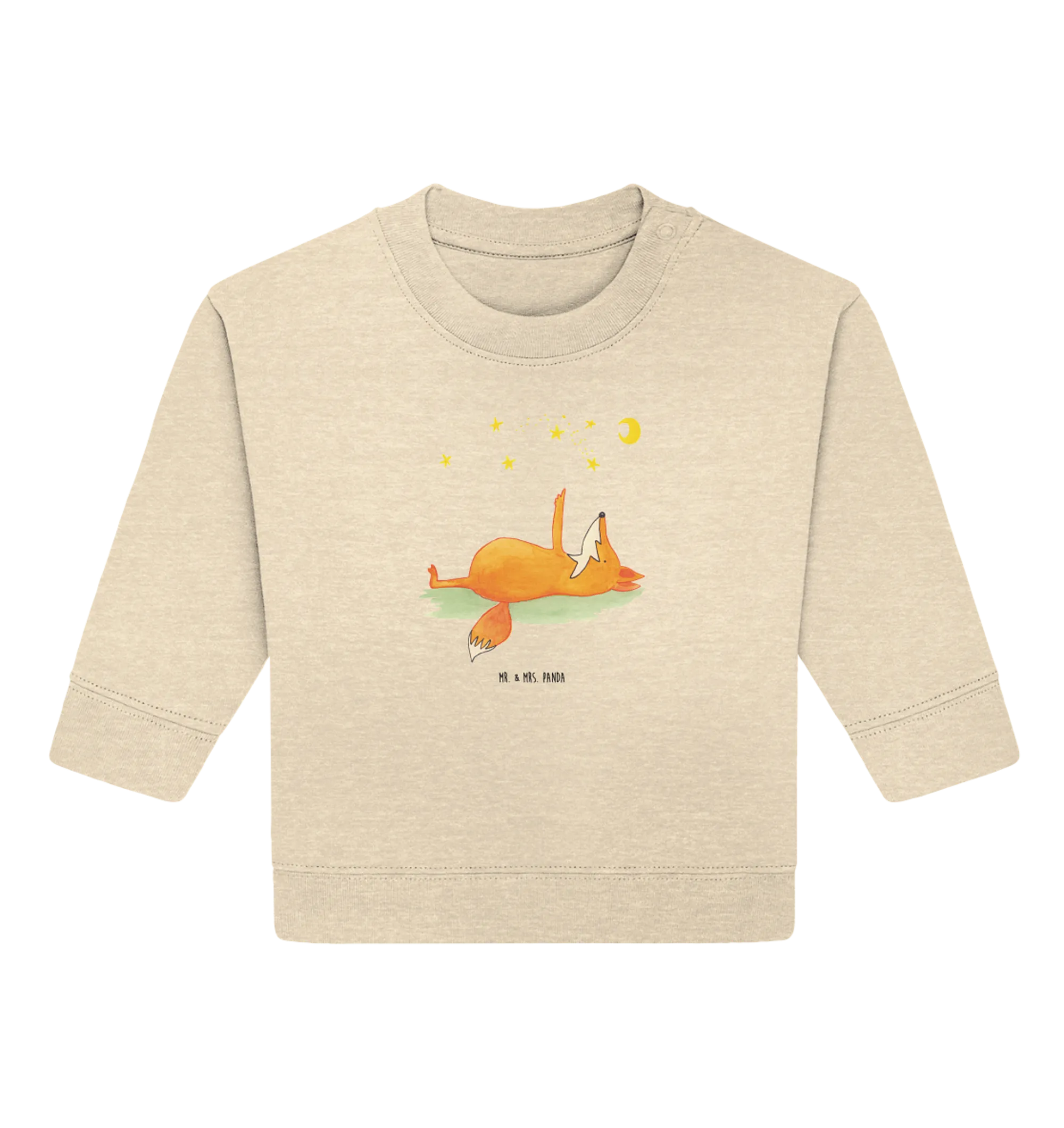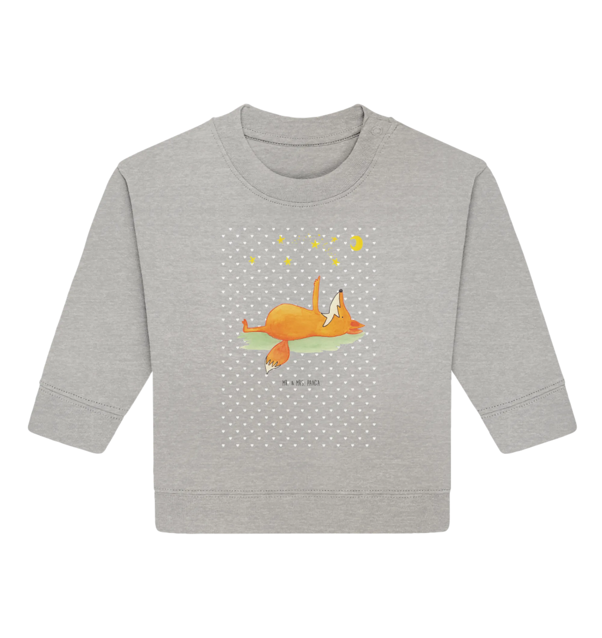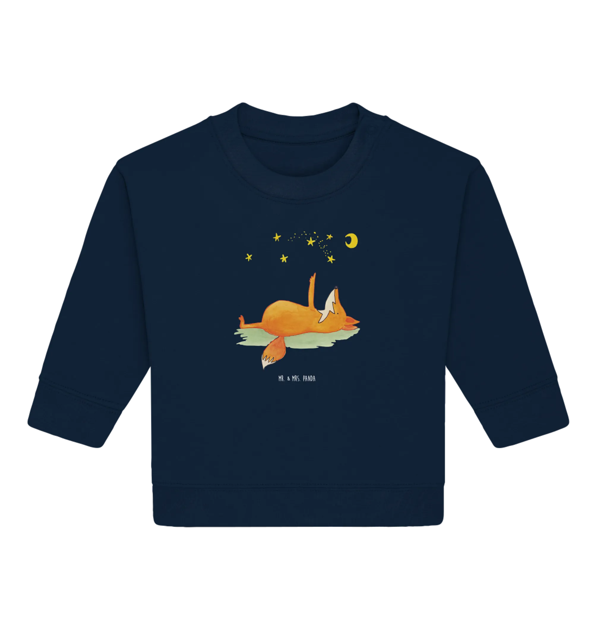 Der Organic Baby Pullover mit dem süßen Motiv "Fuchs Sterne" ist das perfekte Geschenk für die kleinen Sternenfänger! Unser zauberhafter Fuchs, der entspannt auf dem Rücken liegt und seinen Blick in die Sterne richtet, zaubert nicht nur einem Lächeln ins Gesicht, sondern lässt auch Träume wahr werden.