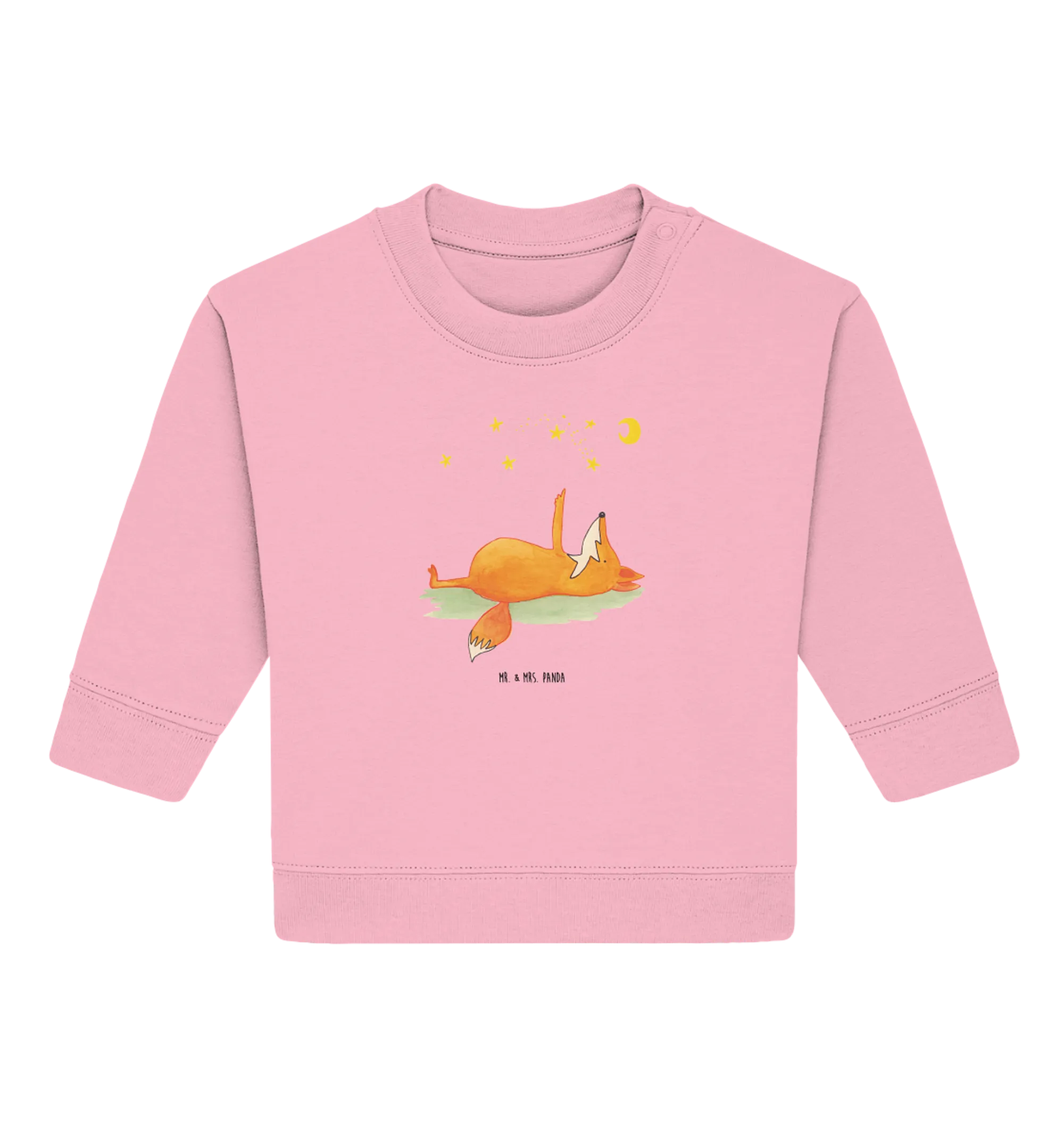Der Organic Baby Pullover mit dem einzigartigen Motiv "Fuchs Sterne" von Mr. & Mrs. Panda ist das perfekte Geschenk für kleine Träumer und Sternengucker! 🌟 Mit seinem süßen Fuchs, der auf dem Rücken liegt und in den Sternenhimmel schaut, bringt dieser Pullover eine liebevolle Botschaft des Positiven mit sich.