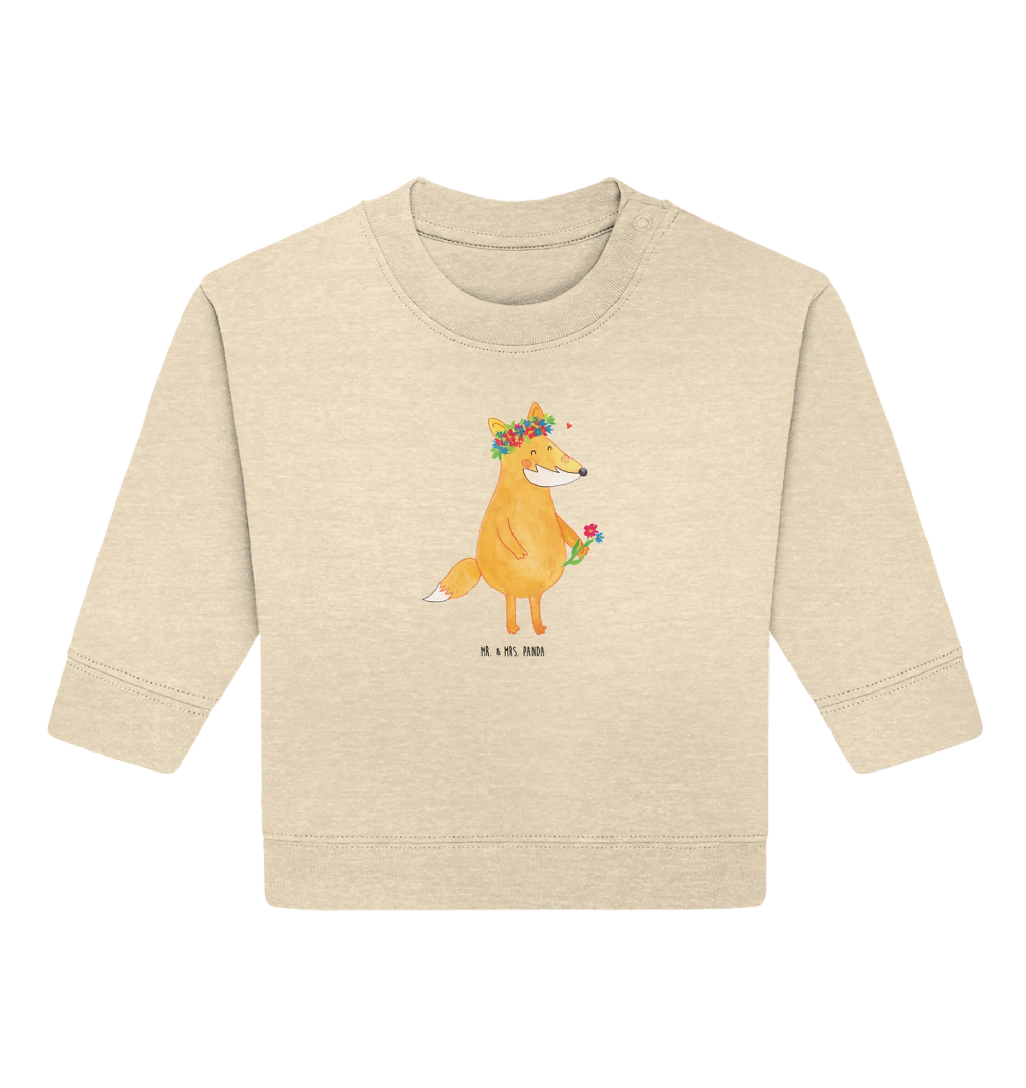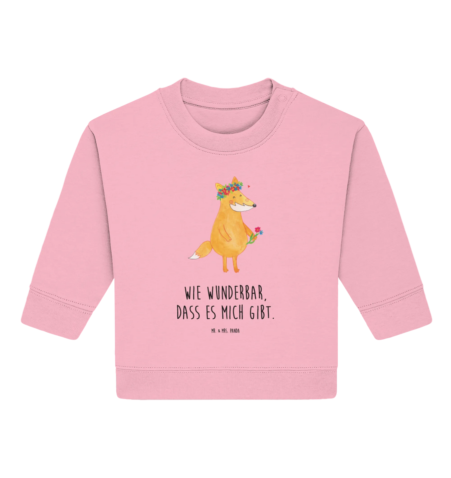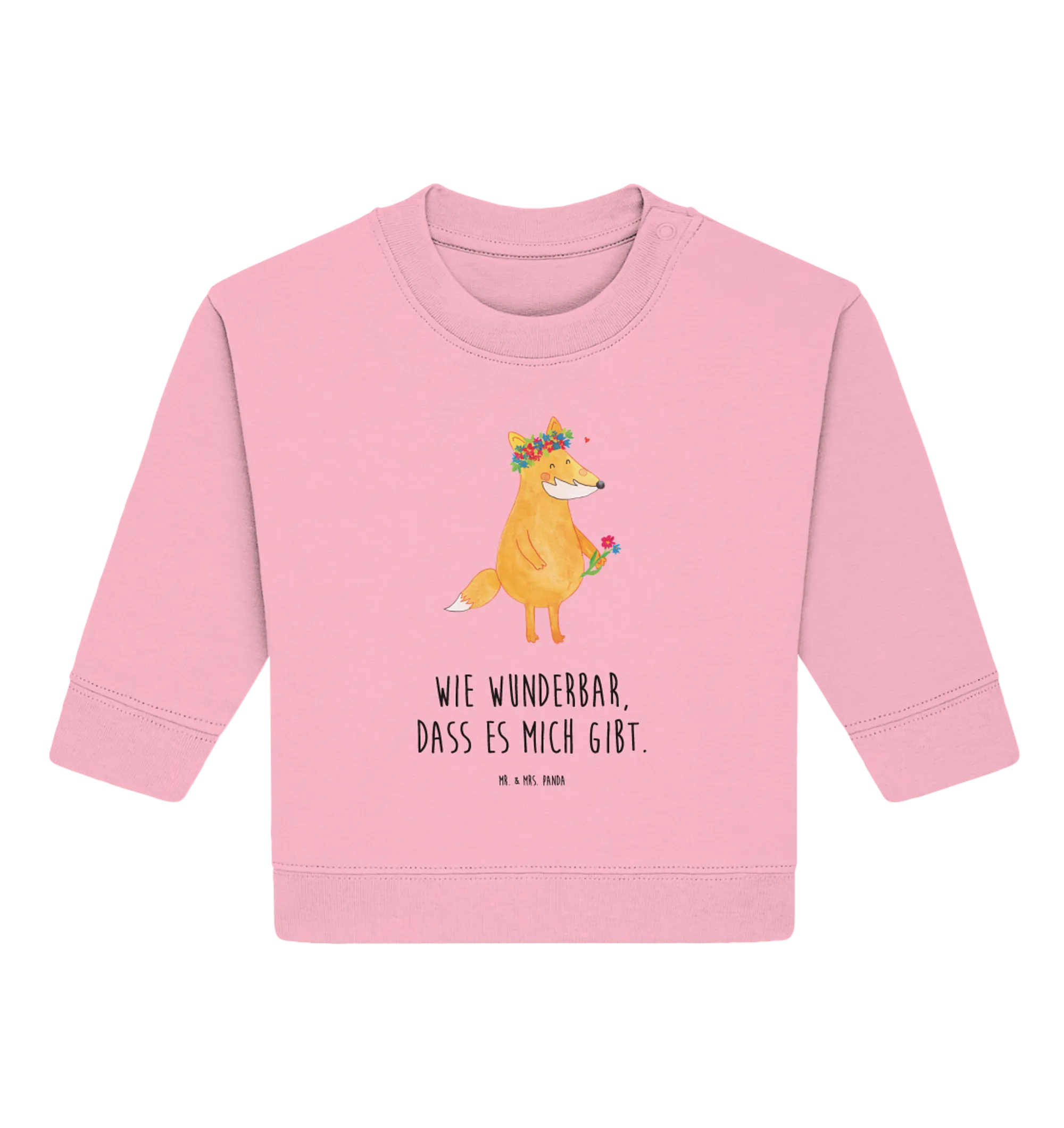 Organiczny sweter dla niemowląt lis Kwiaty - 6. - 12. miesiąc - z napisem - Różowy bawełniany