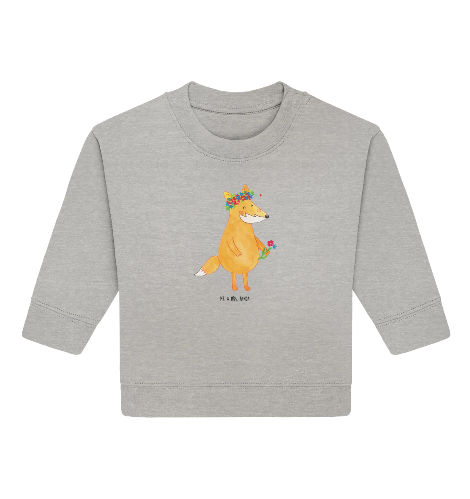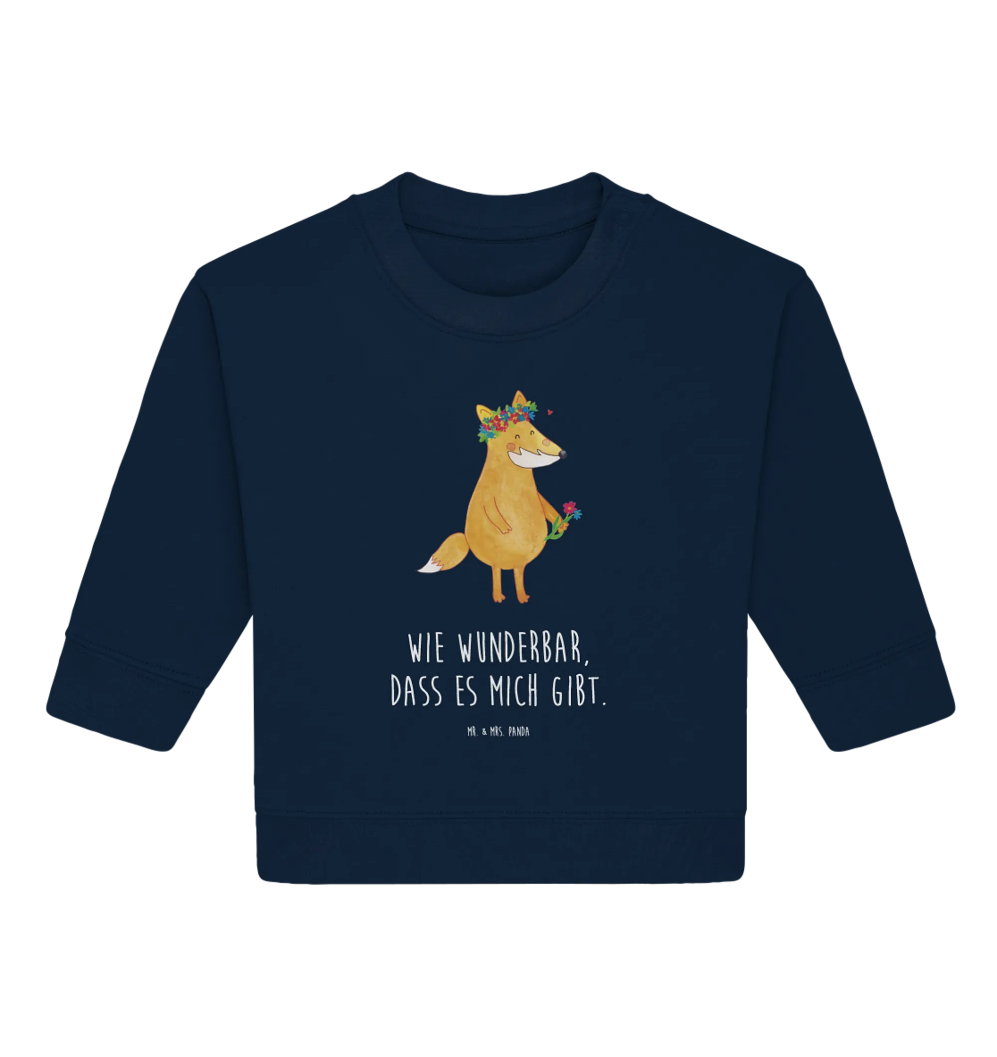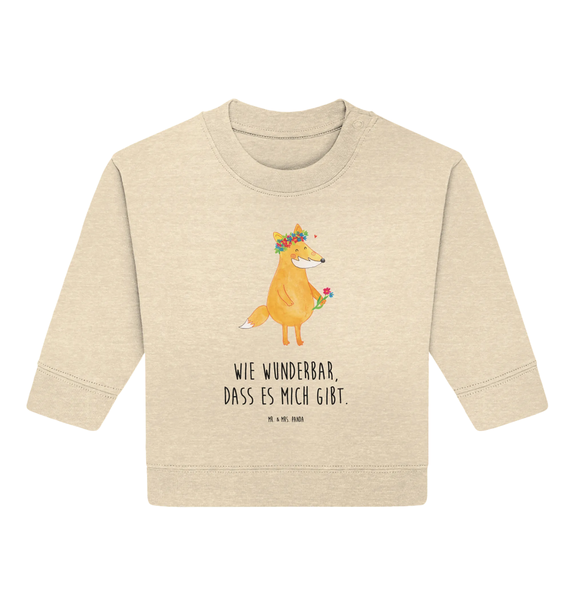 Organiczny sweter dla niemowląt lis Kwiaty - 6. - 12. miesiąc - z napisem - Różowy bawełniany