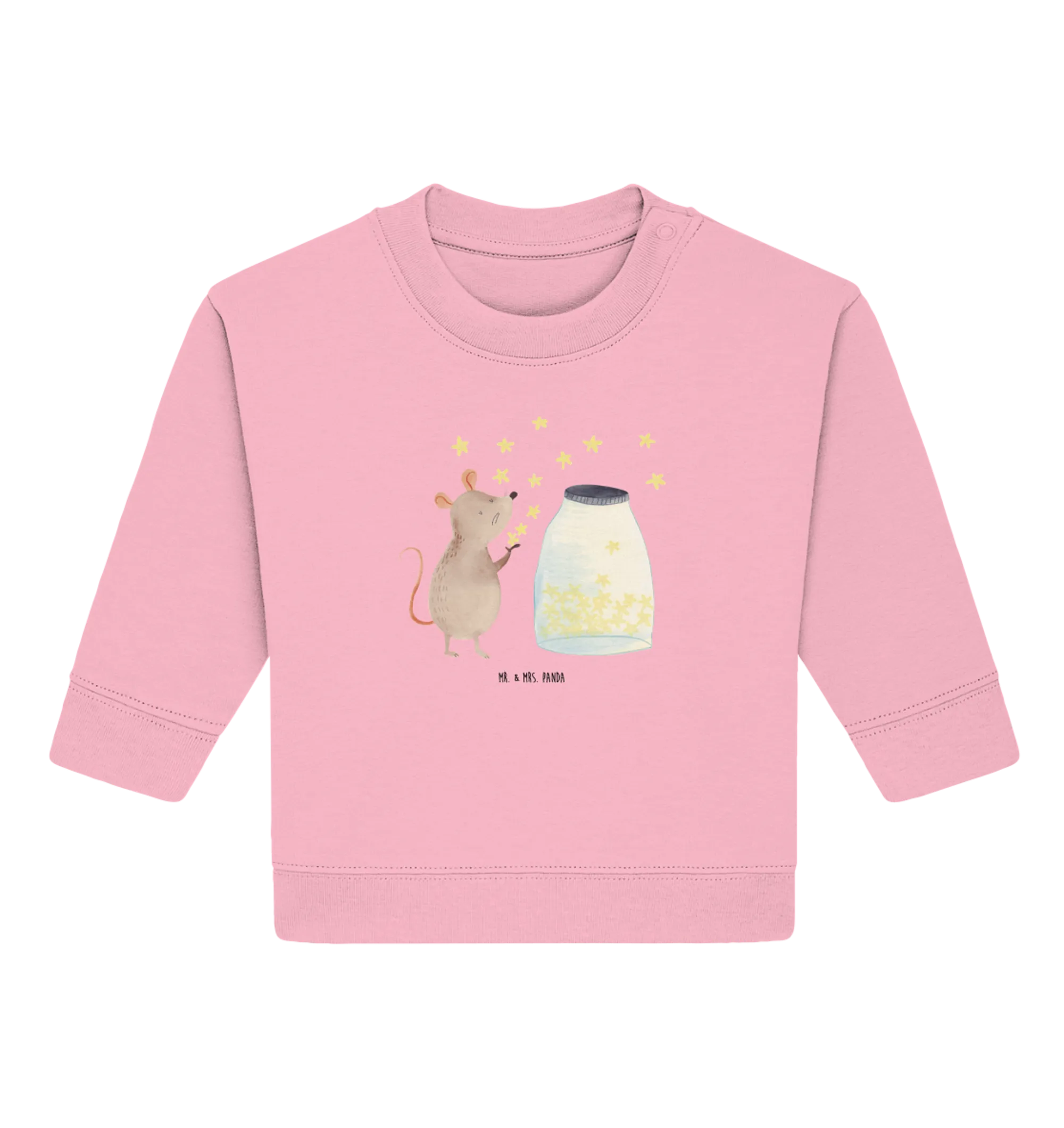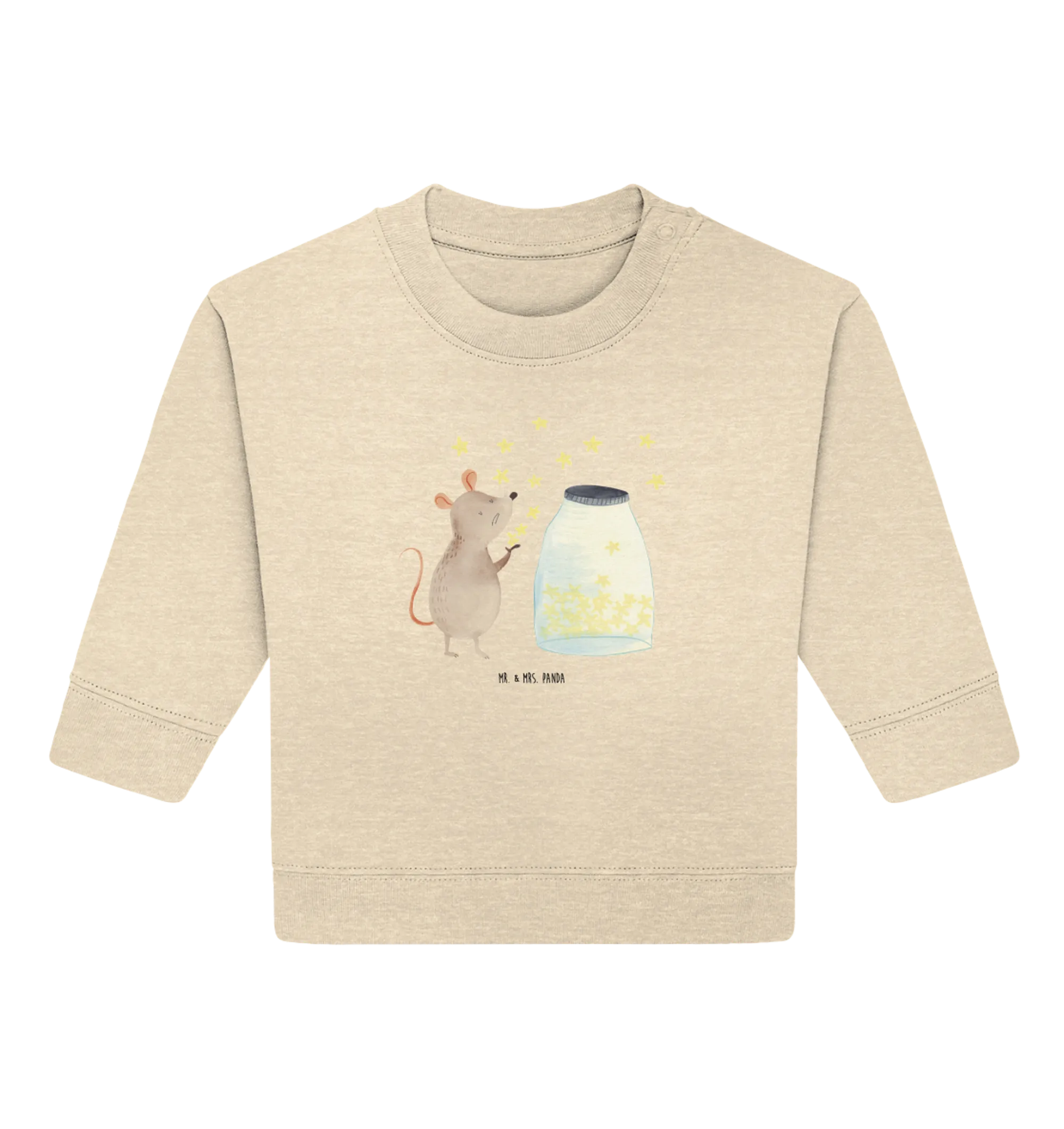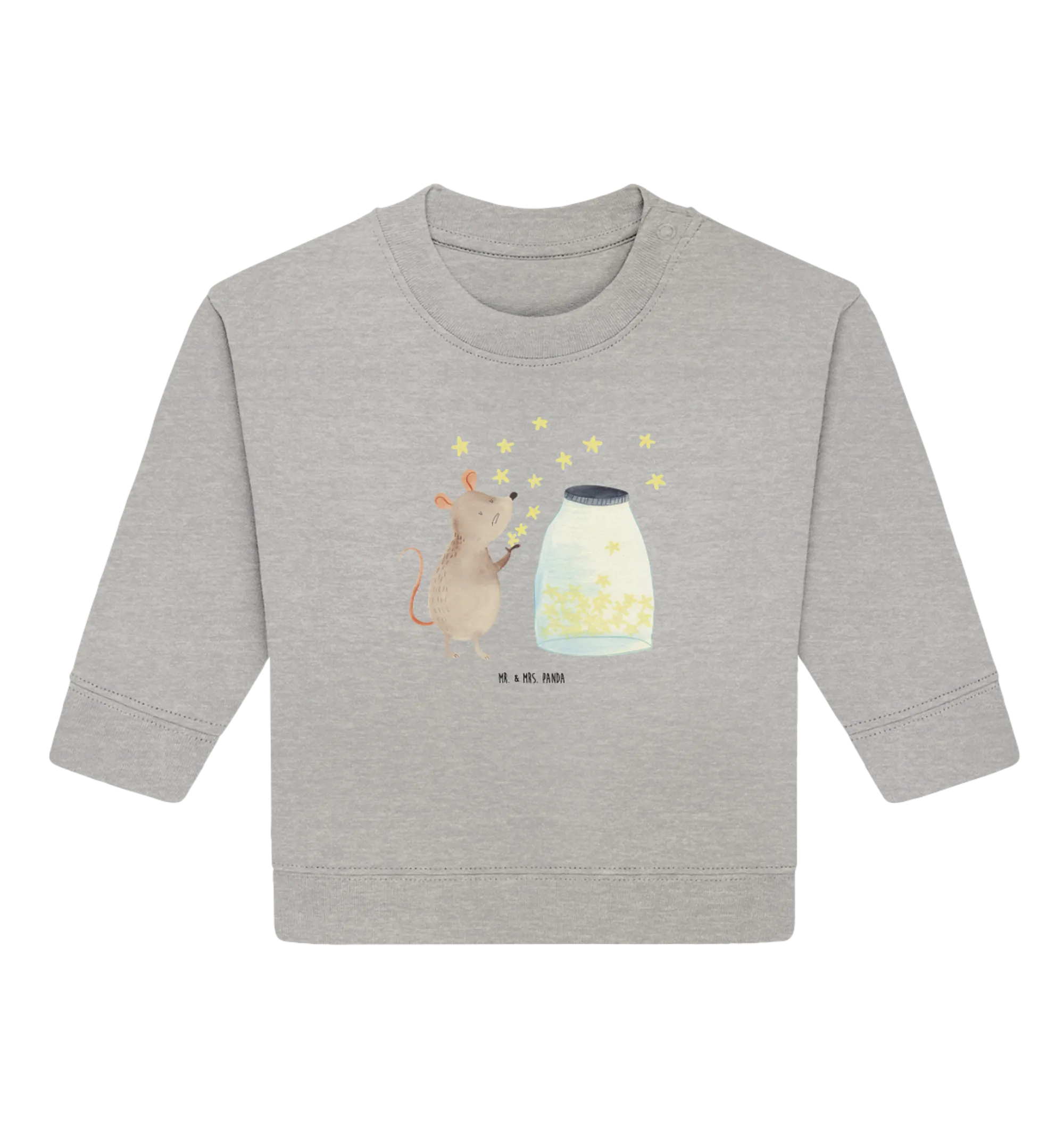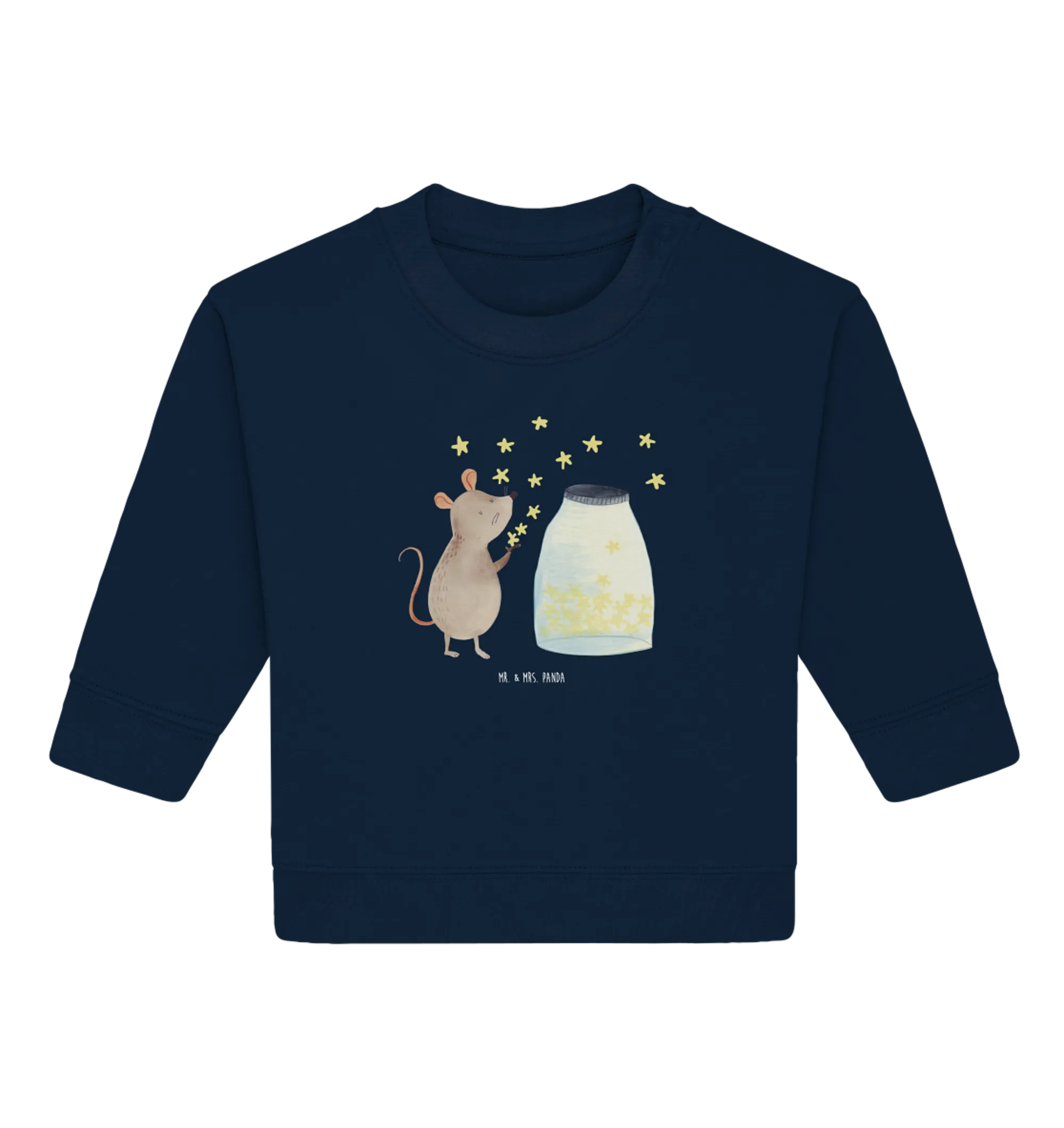 Der Organic Baby Pullover mit dem zauberhaften Motiv Maus Sterne aus der besonderen Small World Kollektion von Mr. & Mrs. Panda ist das perfekte Geschenk für kleine Sonnenstrahlen und ihre frischgebackenen Eltern. Dieses süße Sweatshirt, welches aus hochwertiger Öko-Baumwolle gefertigt ist, sorgt nicht nur für guten Stil, sondern auch für ein angenehmes Tragegefühl. Die niedliche Maus sitzt vor einem Glas voller funkelnder Sterne und träumt von Abenteuern, die Euer kleines Kind in der Zukunft erleben wird.