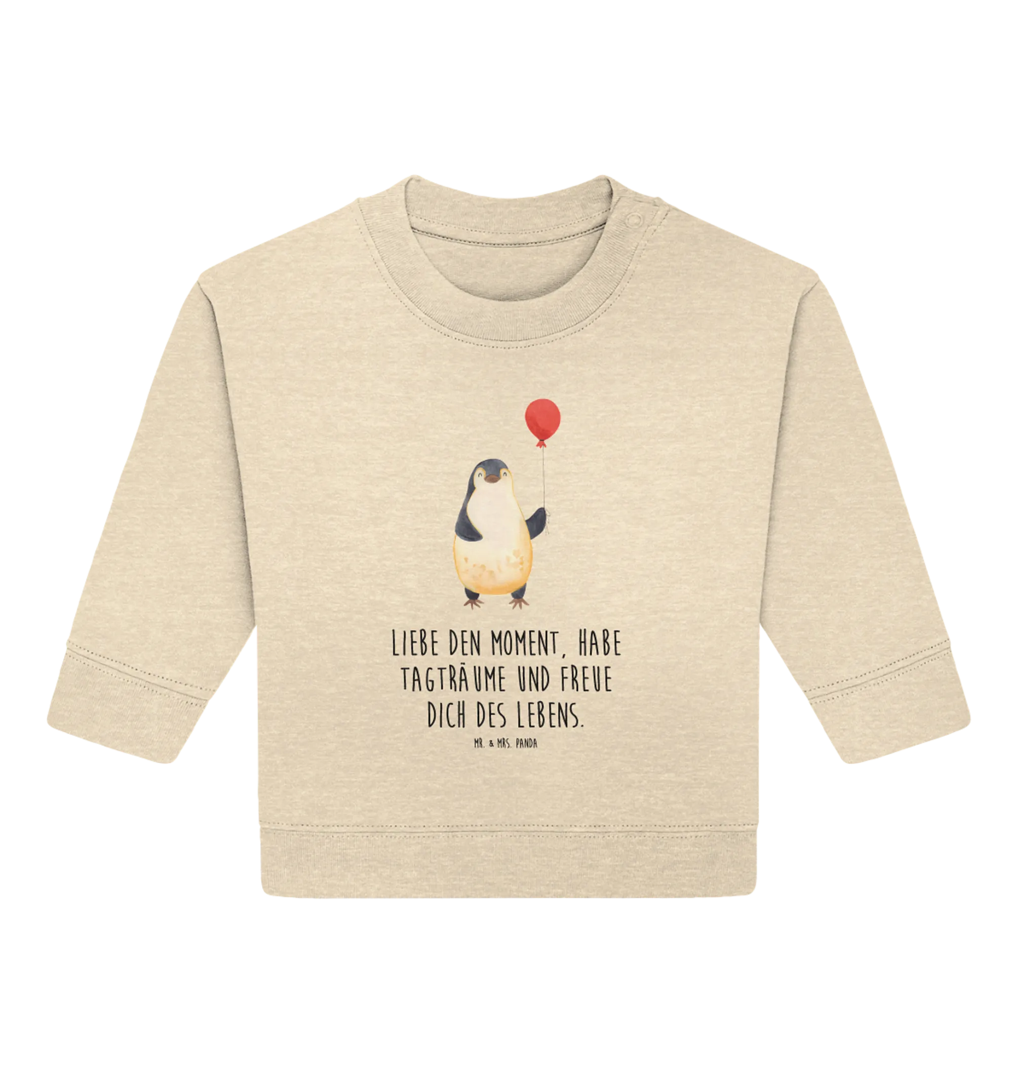 Der Organic Baby Pullover mit dem süßen Pinguin Luftballon aus der Pinguin-Kollektion von Mr. & Mrs. Panda ist das perfekte Geschenk für frischgebackene Eltern und ihre kleinen Lieblingsmenschen!