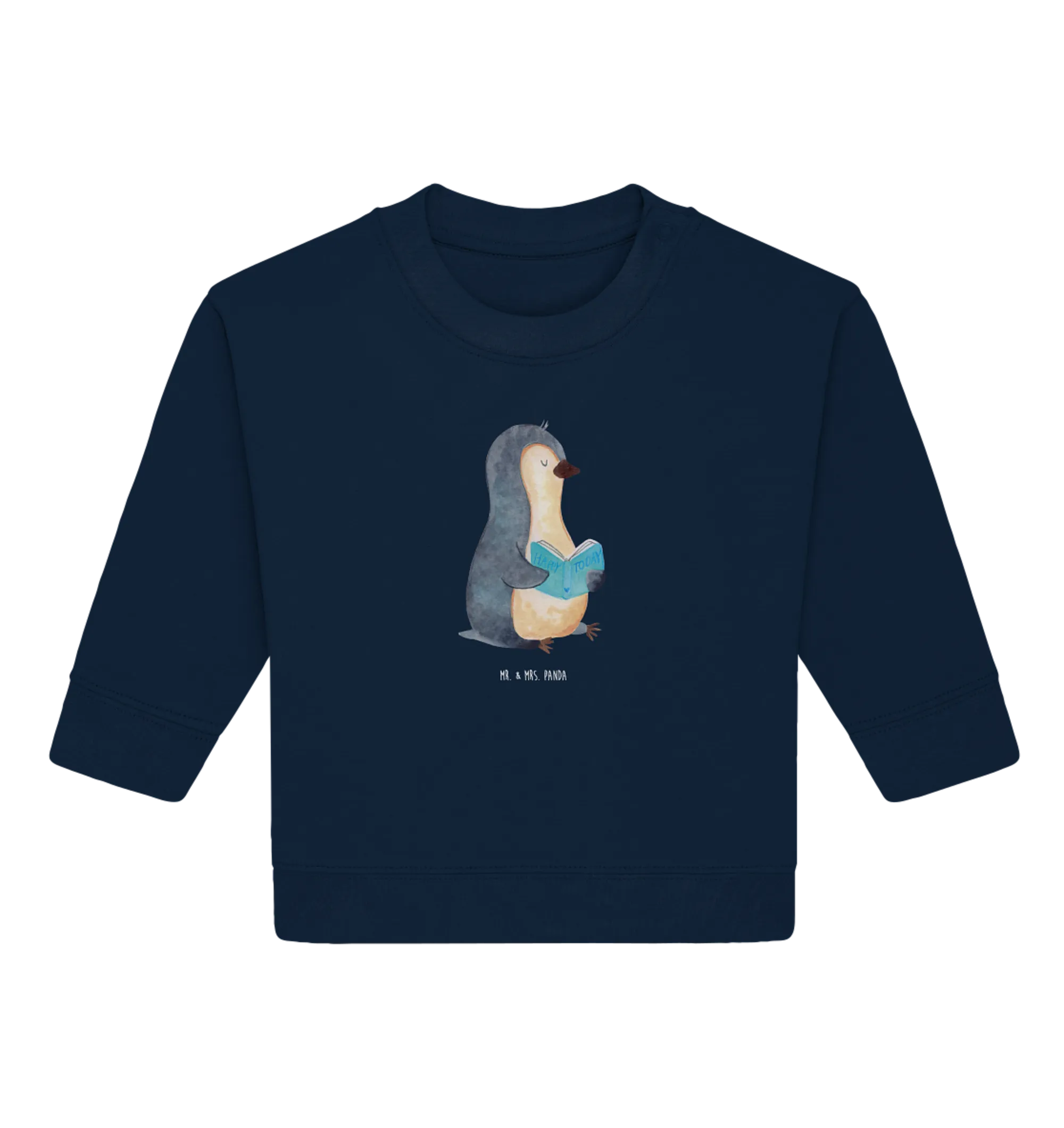 Entdecke den wunderbaren Organic Baby Pullover mit dem tollen Pinguin Buch Motiv aus der Pinguin-Kollektion von Mr. & Mrs. Panda! Dieser Pullover ist nicht nur stylisch, sondern auch äußerst bequem, was ihn zum perfekten Begleiter für die Kleinsten macht.