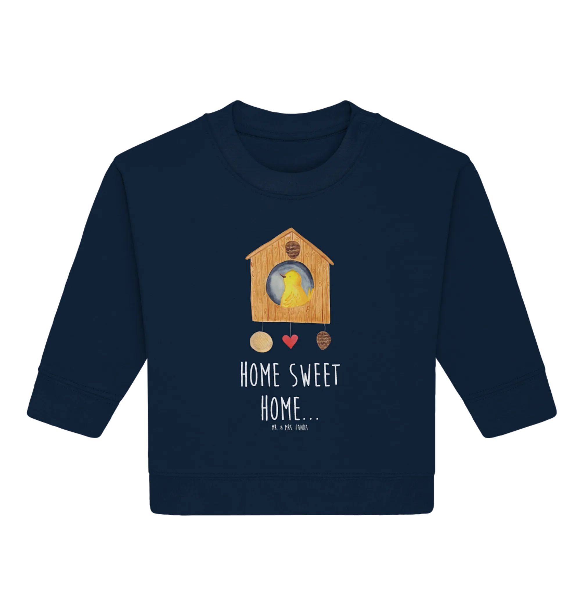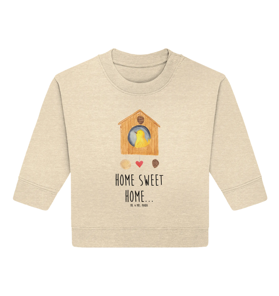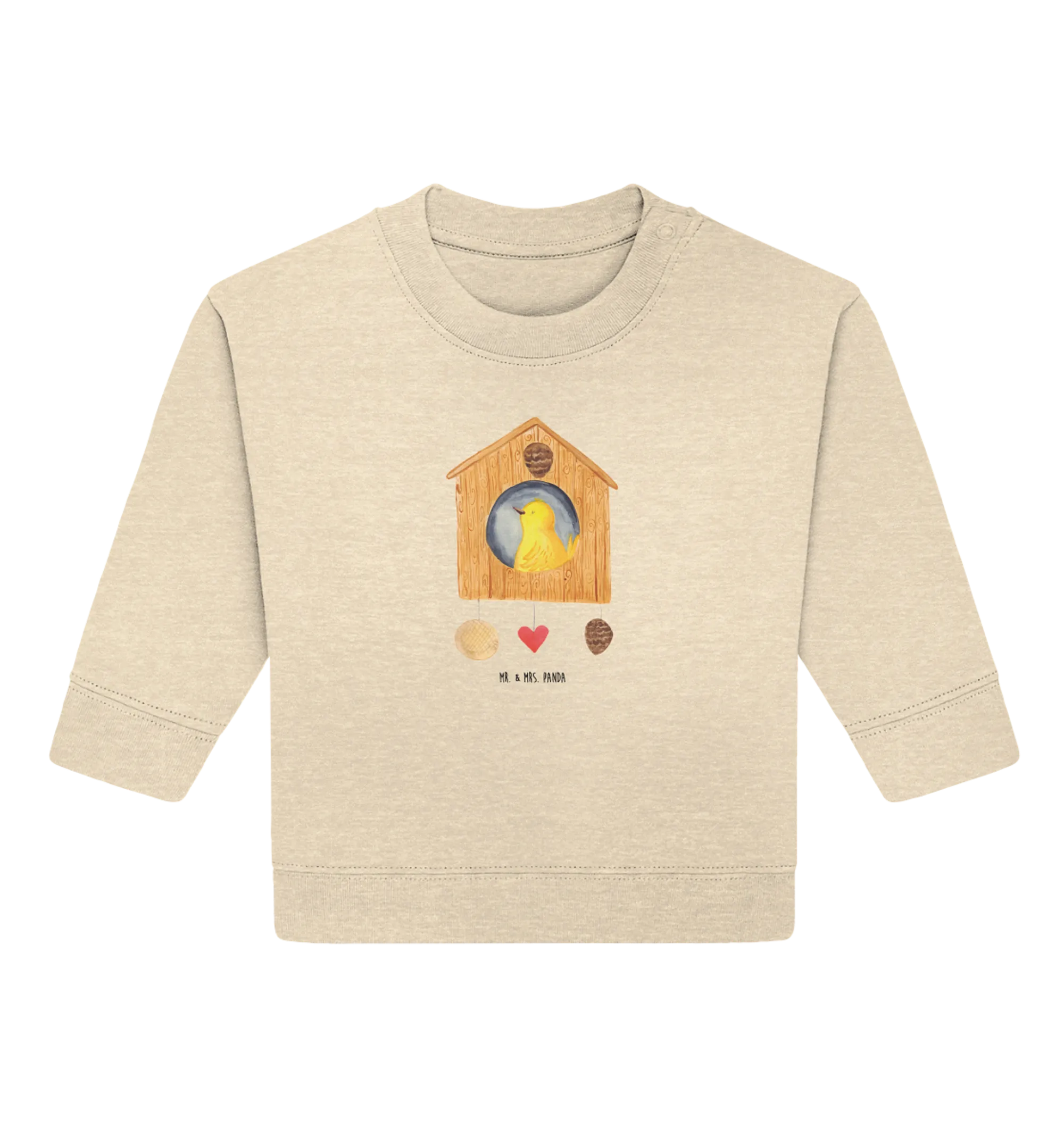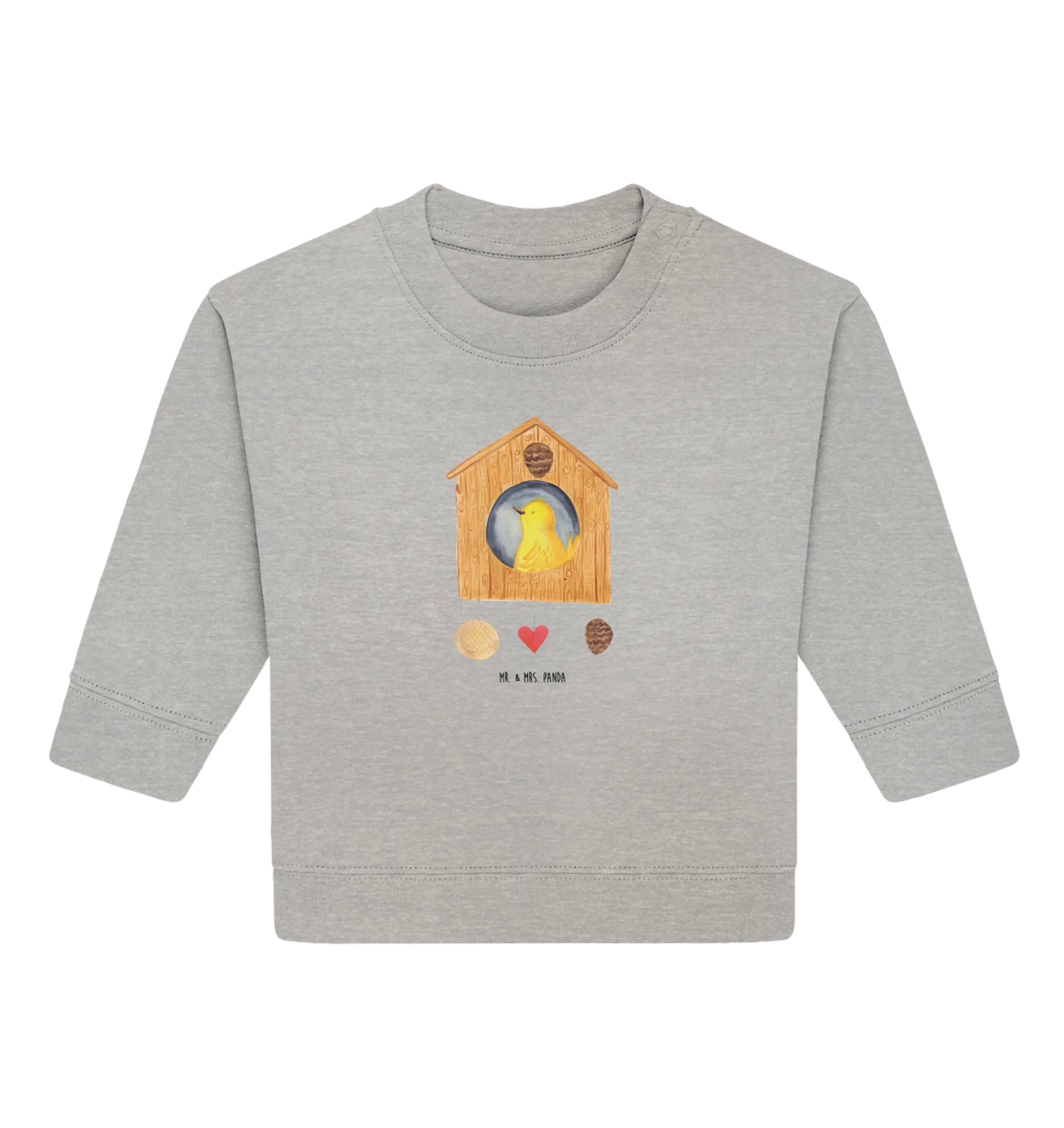 Entdecke den einmaligen Organic Baby Pullover mit dem süßen Vogelhaus-Motiv "Home sweet Home" von Mr. & Mrs. Panda!
