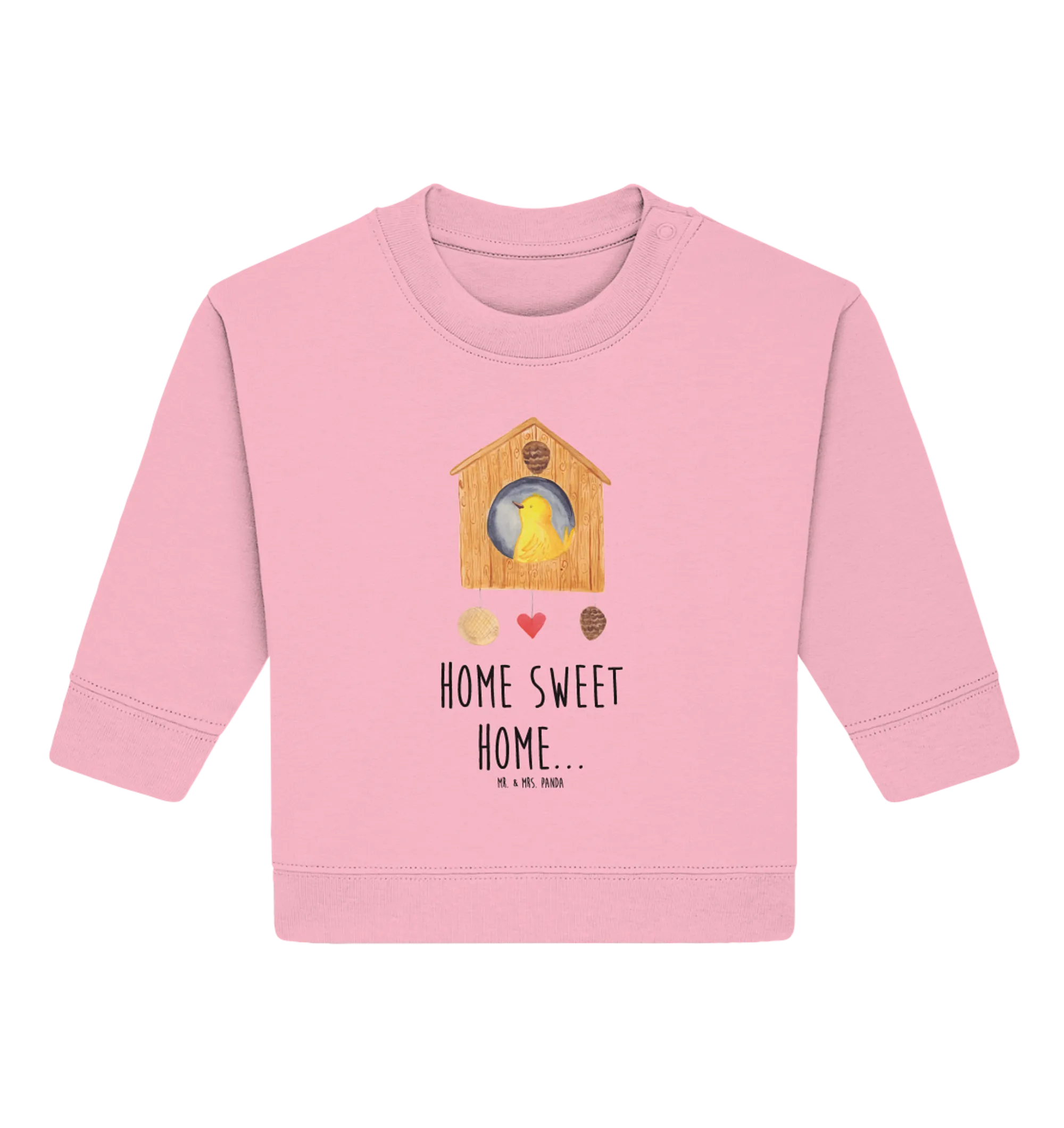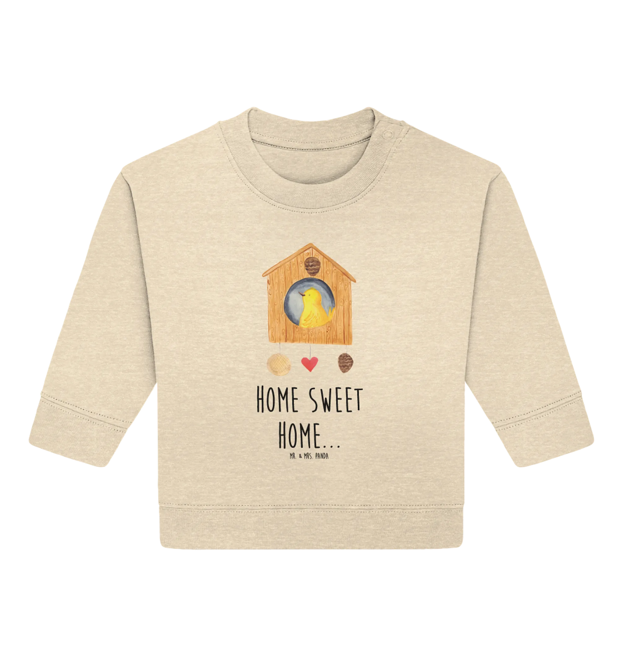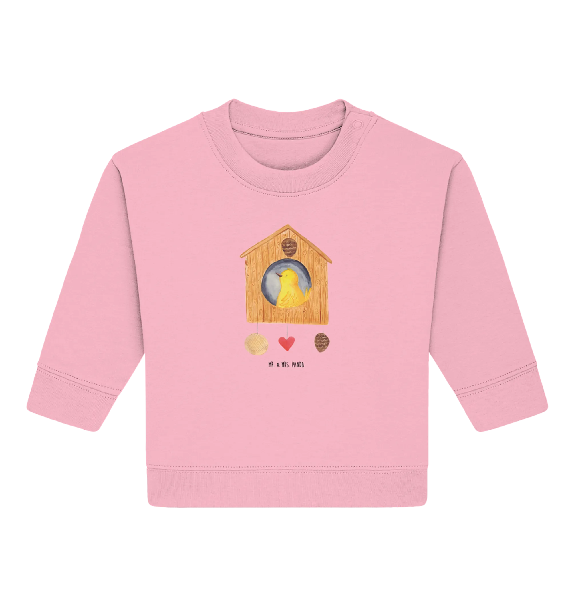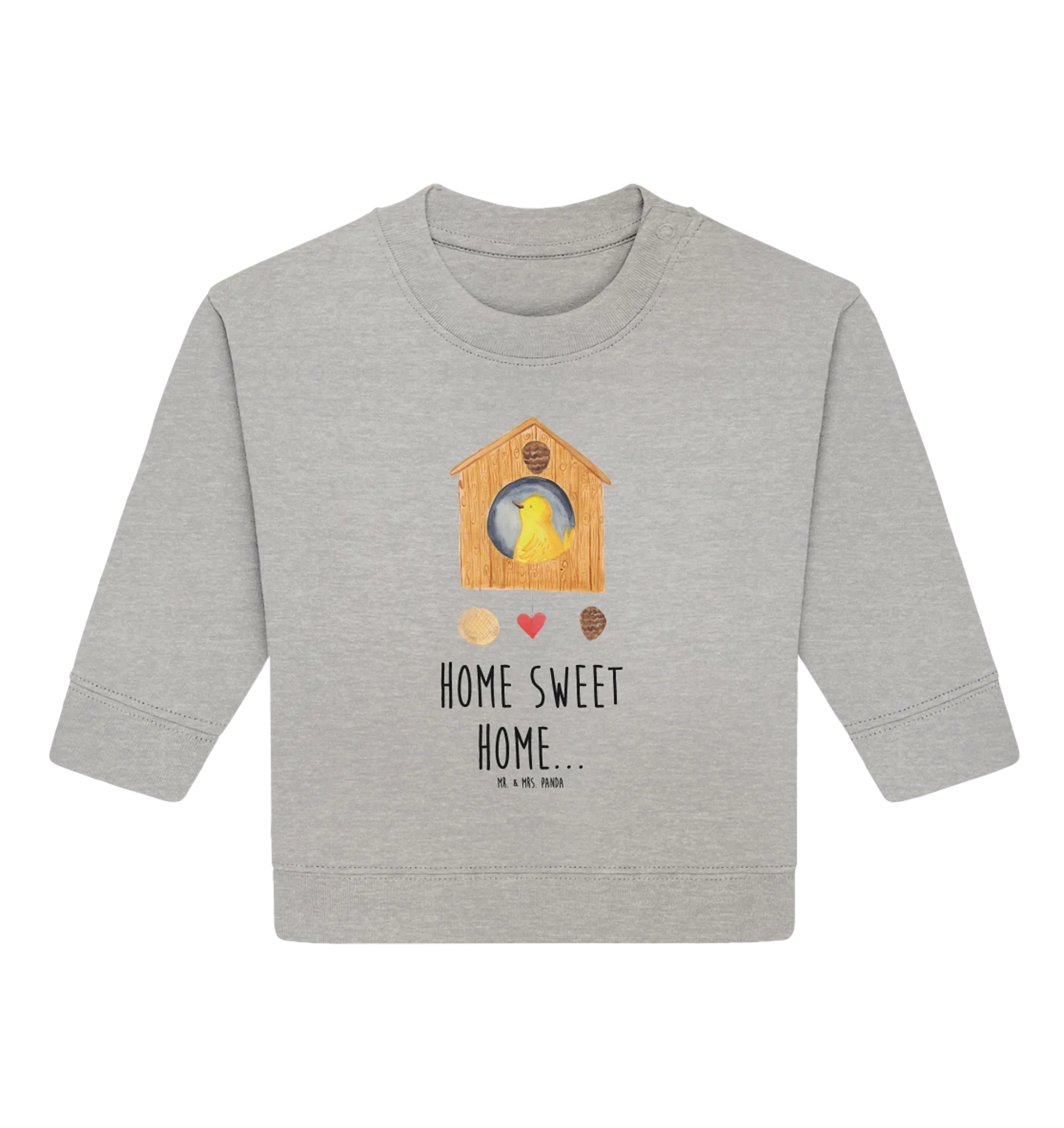 Entdecke den einmaligen Organic Baby Pullover mit dem süßen Vogelhaus-Motiv "Home sweet Home" von Mr. & Mrs. Panda!
