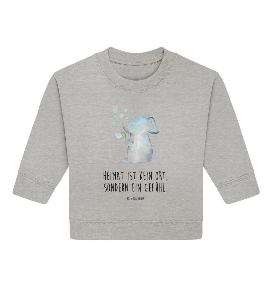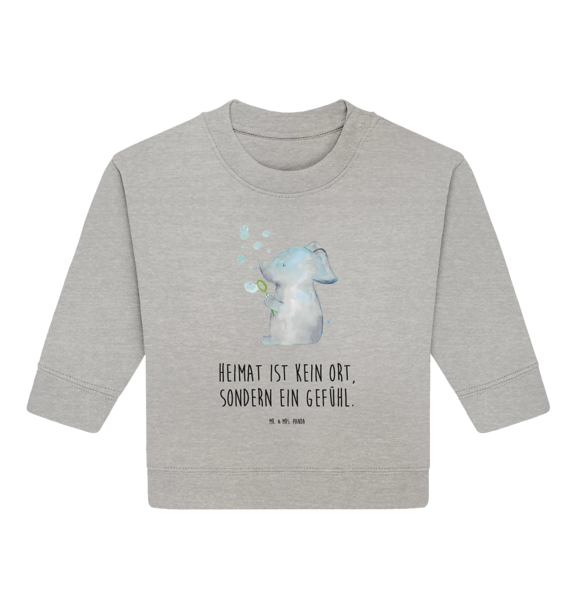 Organiczny sweter dla niemowląt słoń bańki mydlane - 6. - 12. Monat - z napisem - Heather Grey