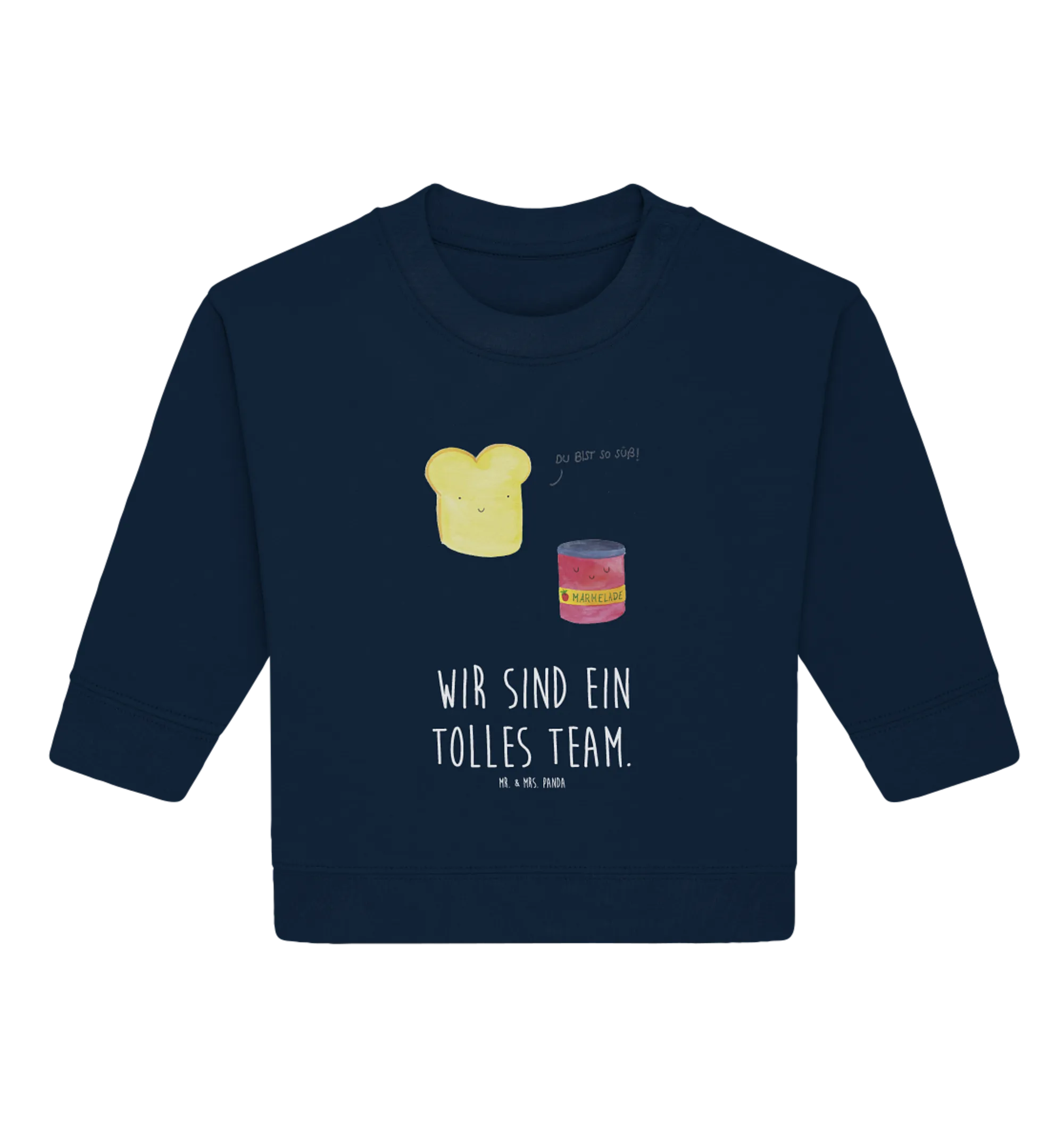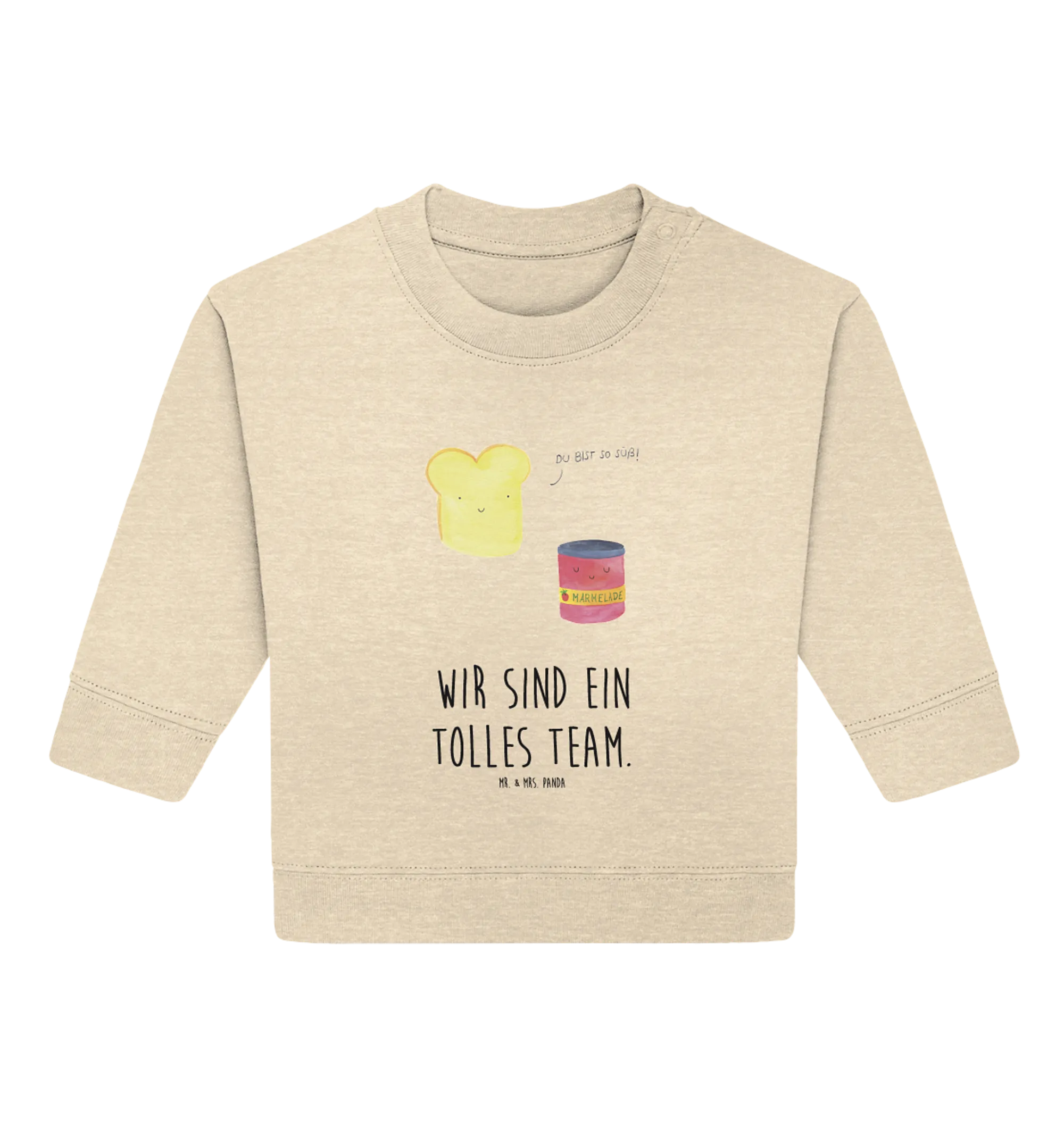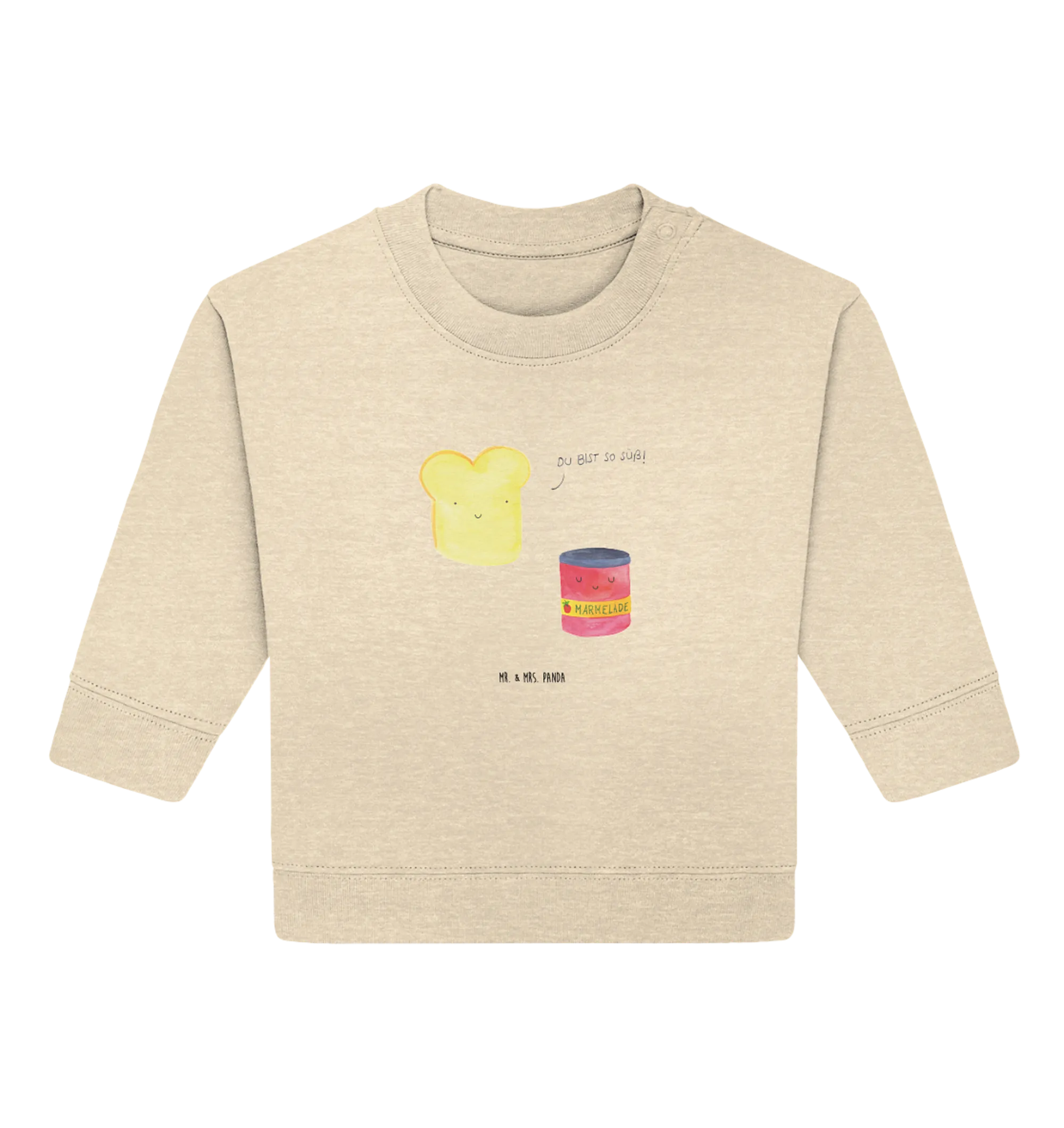 \nOb für ein süßes Fotoshooting, als besonderes Outfit für ein Familienfest oder einfach zum Kuscheln – der Baby Pullover mit Toast & Marmelade ist für jeden Anlass geeignet! Und das Beste daran? Du kannst sicher sein, dass du mit einem Produkt von Mr. & Mrs. Panda ein Geschenk für die Ewigkeit wählst. Hier wird Lächeln großgeschrieben! Verleihe mit diesem Pullover jedem Frühstück einen Hauch von Gemütlichkeit und Kindheitserinnerungen.