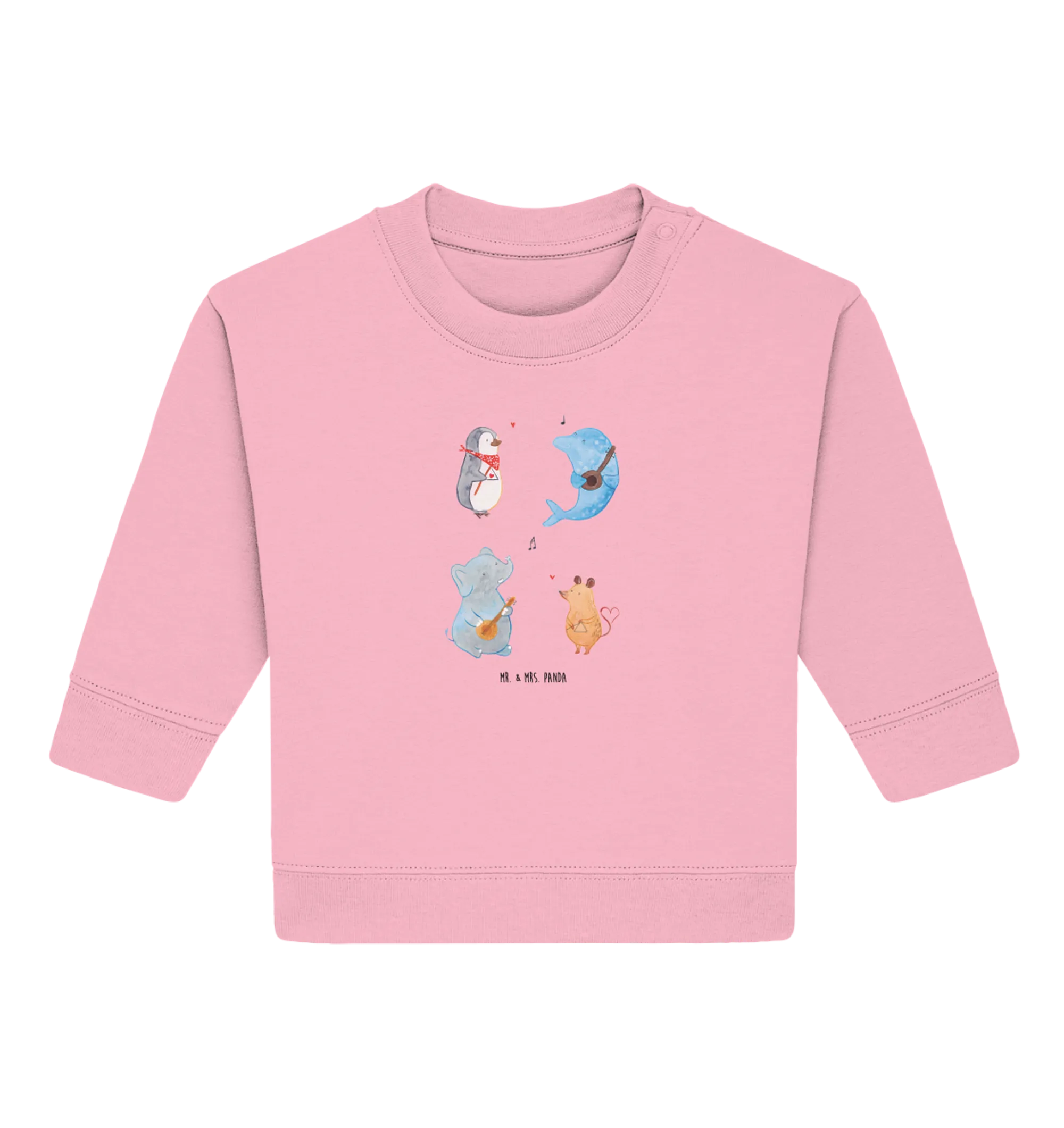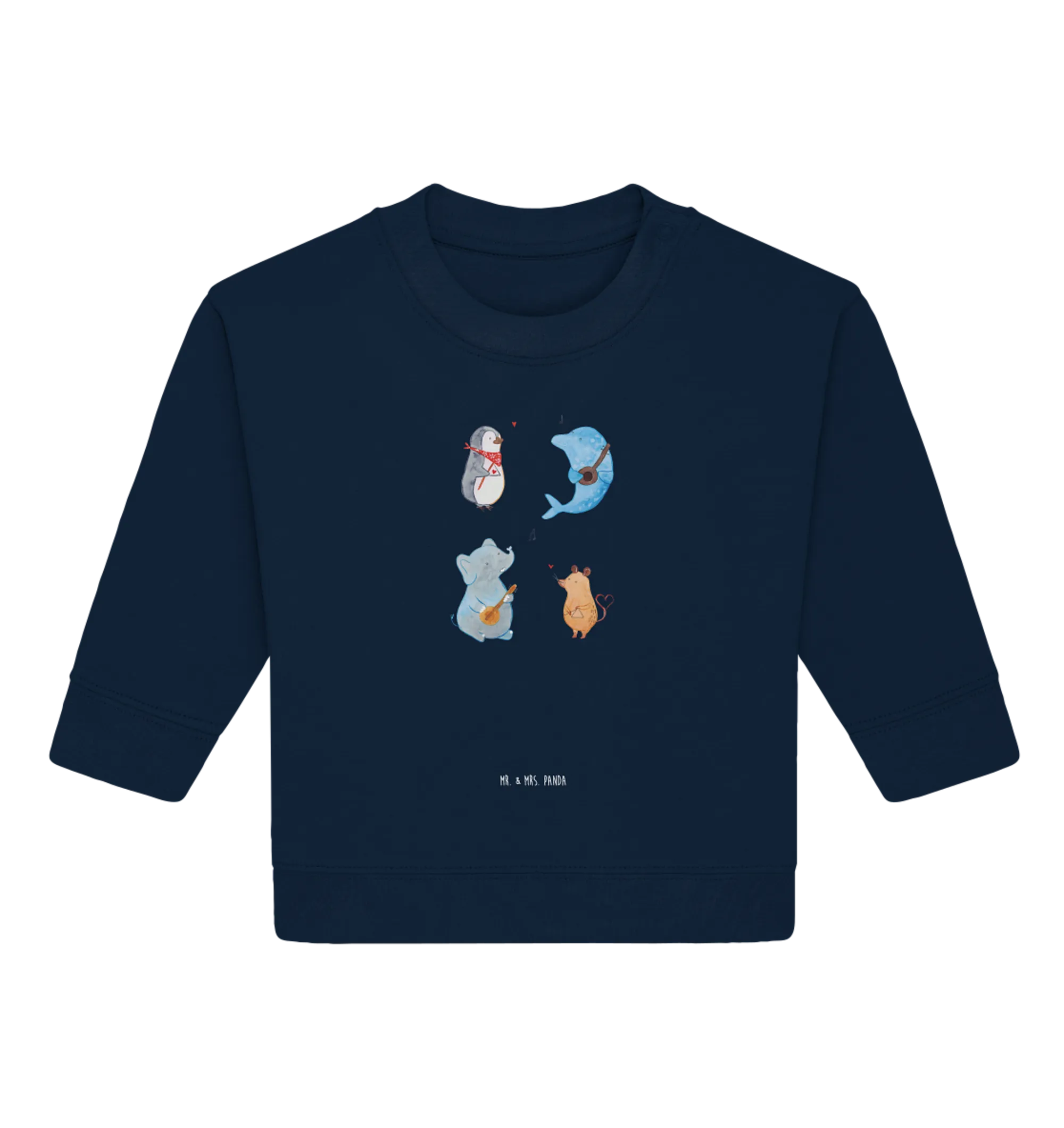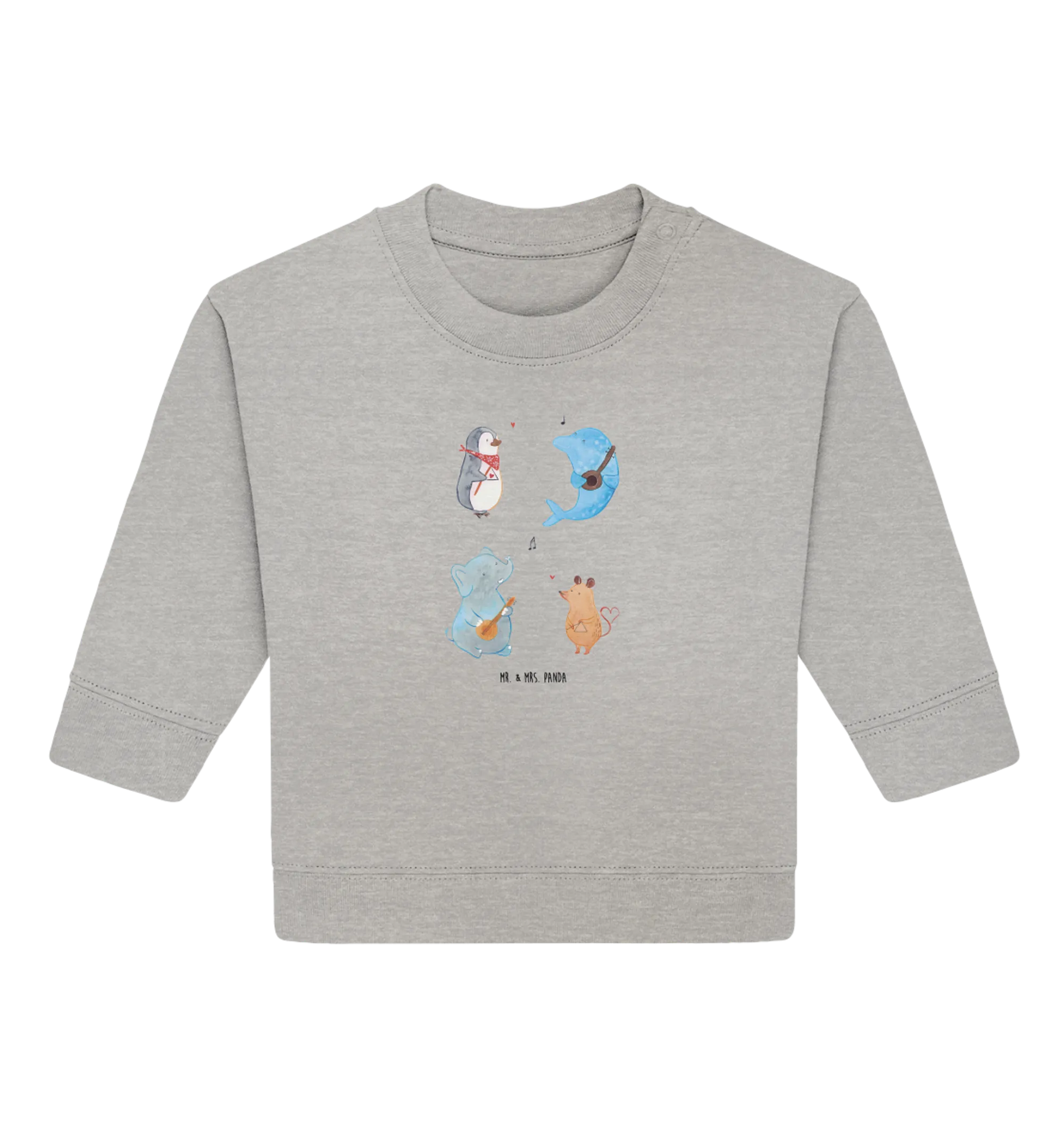 Der Organic Baby Pullover mit dem Big Band-Motiv von Mr. & Mrs. Panda ist das perfekte Geschenk für alle kleinen Musikliebhaber! Mit einer bunten Truppe aus einem Pinguin, einer Maus, einem Delfin und einem Elefanten begeistert dieses niedliche Design in jeder Situation. Ob zum Geburtstag, zur Taufe oder einfach als kleine Überraschung zwischendurch - dieser Pullover bringt nicht nur das Herz zum Lächeln, sondern auch die Welt der Kinder zum Klingen. Die besonders liebevolle Aquarellzeichnung verkörpert die Freude und Unbeschwertheit der Kindheit und lässt jedes Baby im Mittelpunkt des Geschehens stehen.