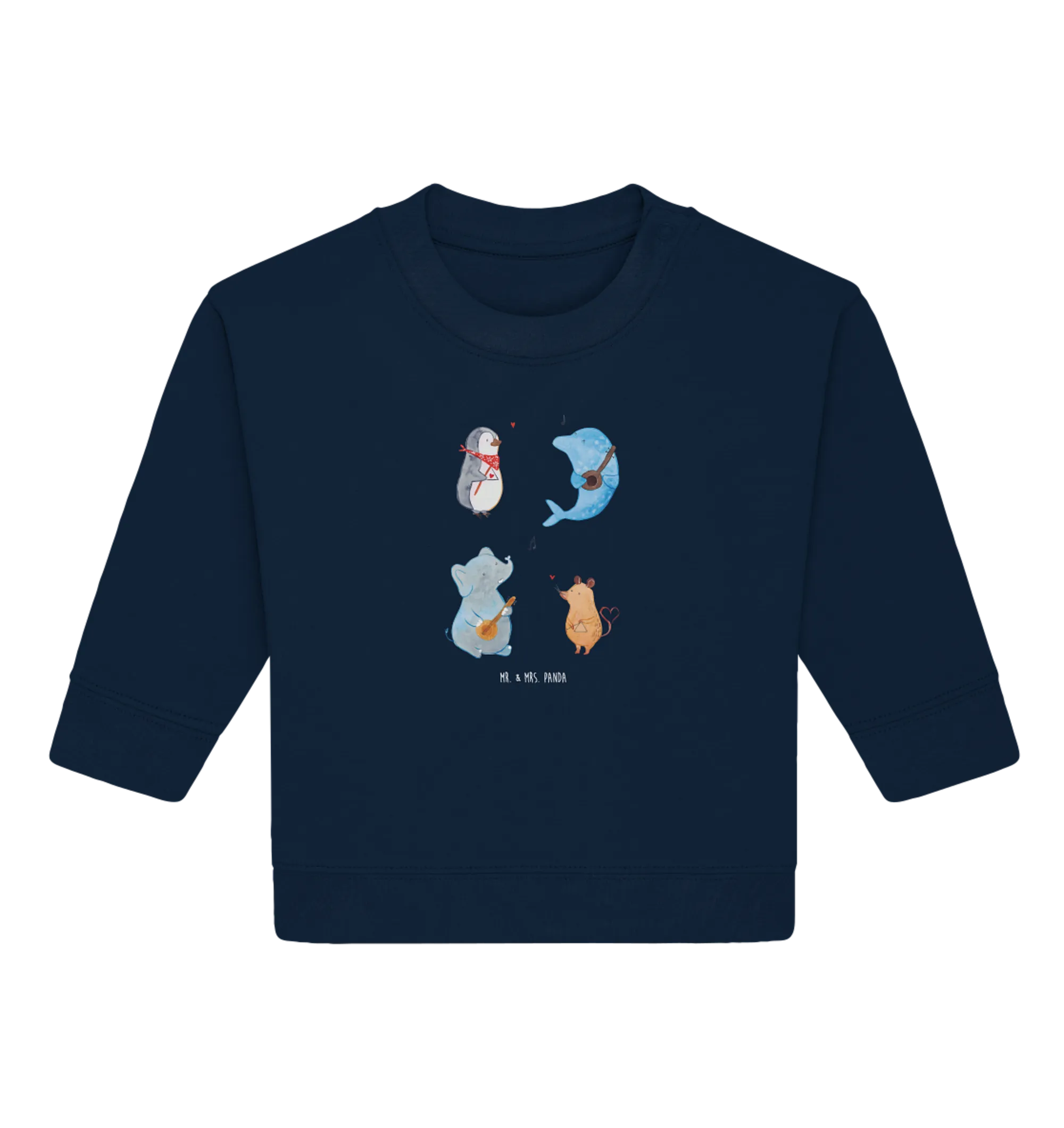 Der Organic Baby Pullover "Big Band" aus der zauberhaften Small World Kollektion von Mr. & Mrs. Panda ist das perfekte Geschenk für kleine Musikliebhaber und frischgebackene Eltern! Dieser entzückende Pullover bringt nicht nur gute Laune ins Kinderzimmer, sondern erinnert mit seinem fröhlichen Tiermotiv an eine legendäre Big Band bestehend aus einem Pinguin, einer Maus, einem Delfin und einem Elefanten. Diese lustige Truppe sorgt für viel Freude und Inspiration und lässt die Kinderherzen höher schlagen. Ob für den nächsten Kindergeburtstag, ein Fest oder einfach als liebevolle Überraschung – mit diesem Baby Pullover machst du definitiv alles richtig!