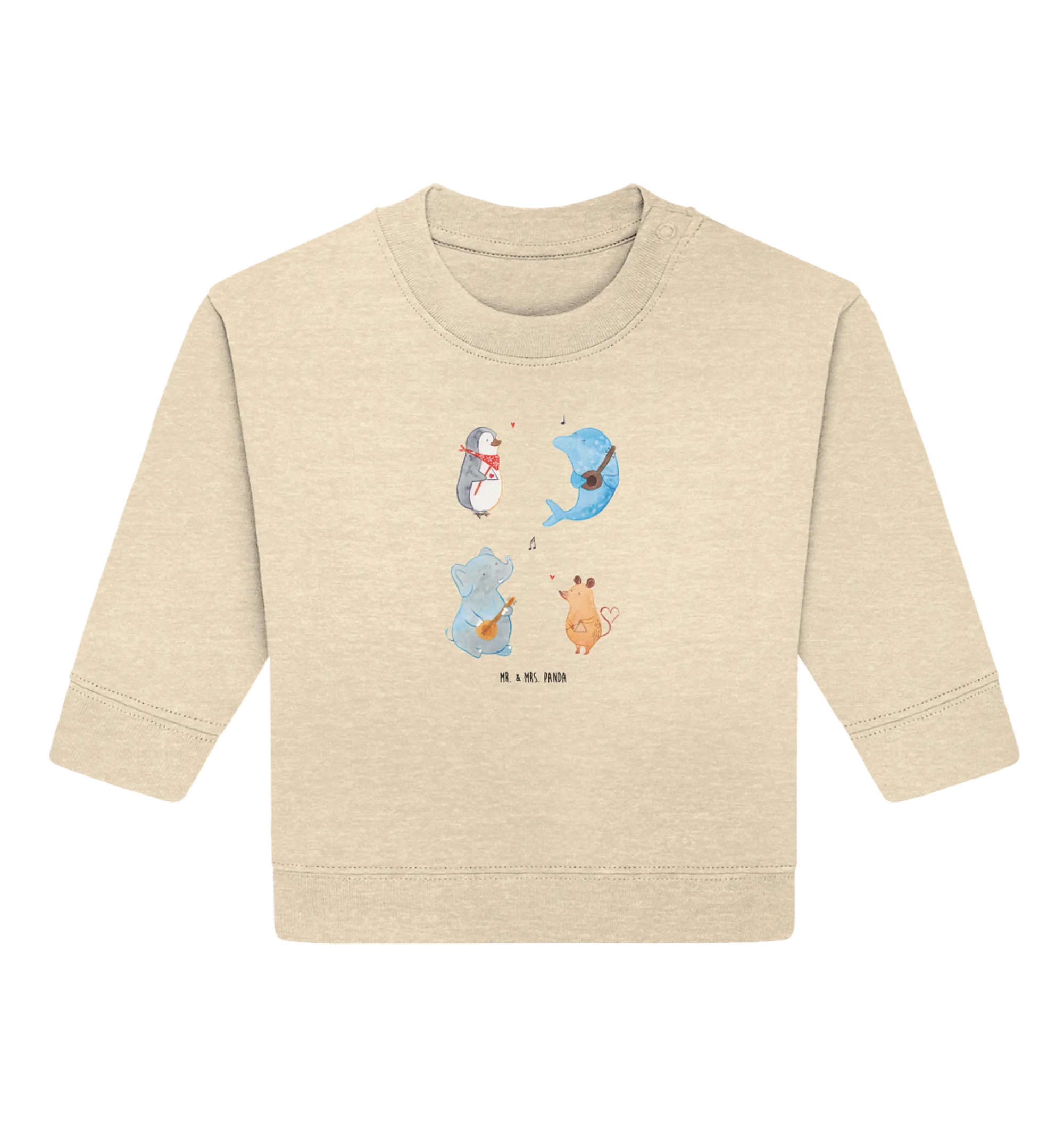 Der Organic Baby Pullover mit dem fröhlichen Big Band Motiv von Mr. & Mrs. Panda ist das perfekte Geschenk für kleine Musikliebhaber und deren Eltern!