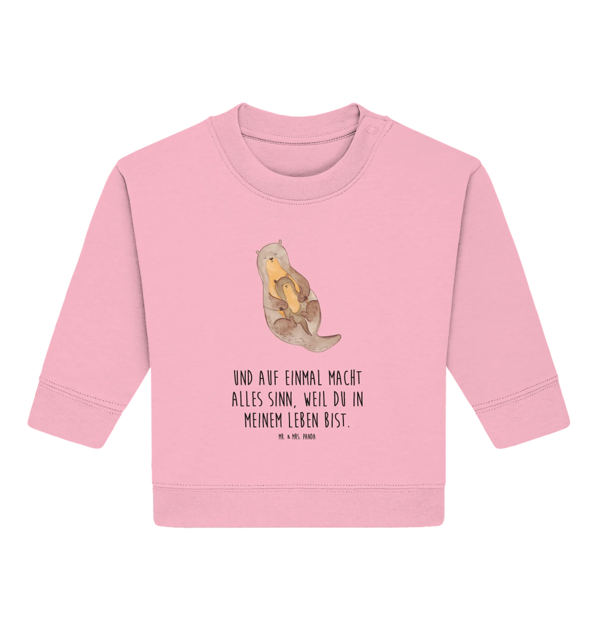 Schließe die Augen und stelle dir vor, wie es ist, wenn du mit deinem Kind auf dem Bauch gemütlich kuschelst. Der süße Otter mit Kind von Mr. & Mrs. Panda besiegelt dieses Glücksgefühl in einem niedlichen Motiv. Der kleine Otter schmiegt sich liebevoll und sicher an seinem Elternteil. Dieses bezaubernde Design ist nicht nur ein echter Hingucker, sondern hat auch eine tiefere Bedeutung: "Und auf einmal macht alles Sinn, weil du in meinem Leben bist." Dieses Wortspiel auf dem Babypullover bringt zum Ausdruck, wie wertvoll die Bindung zwischen dir und deinem kleinen Liebling ist.