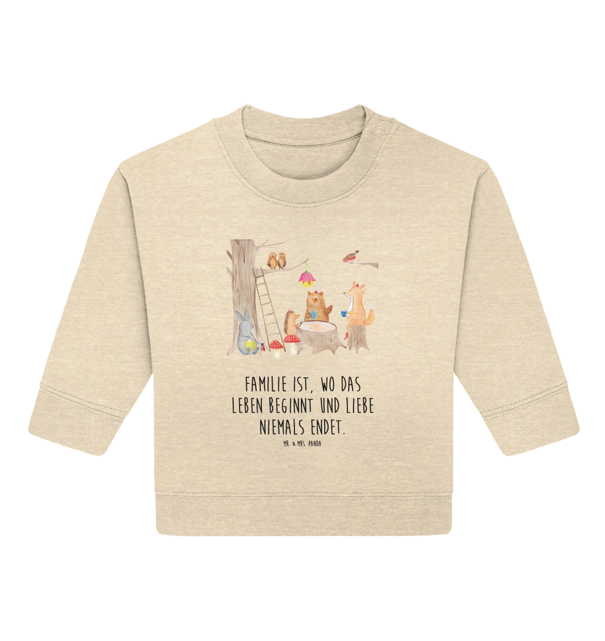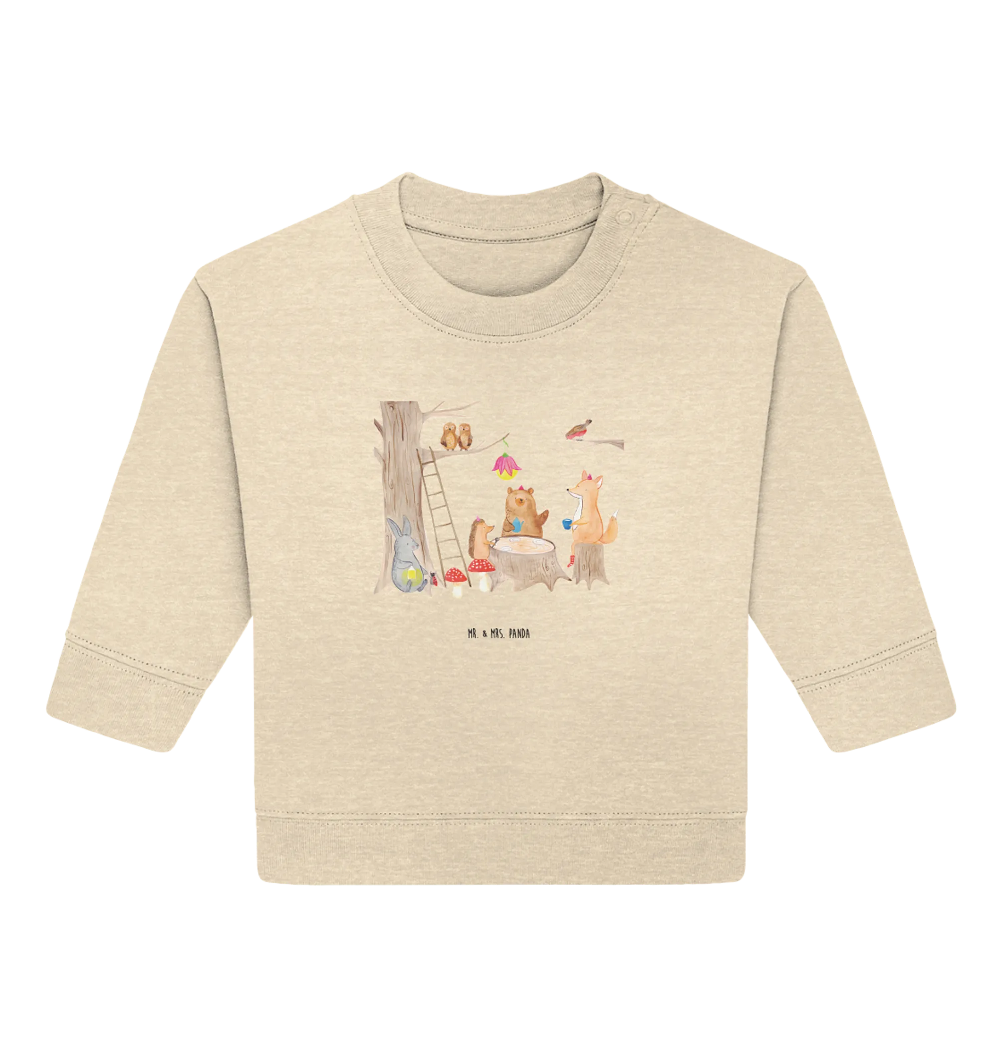 Das süße Waldtiere Picknick Motiv zieht alle Blicke auf sich und wird jeden Betrachter verzaubern. Also schnapp dir den Organic Baby Pullover und erlebe unvergessliche Abenteuer im Grünen mit deinem kleinen Entdecker!