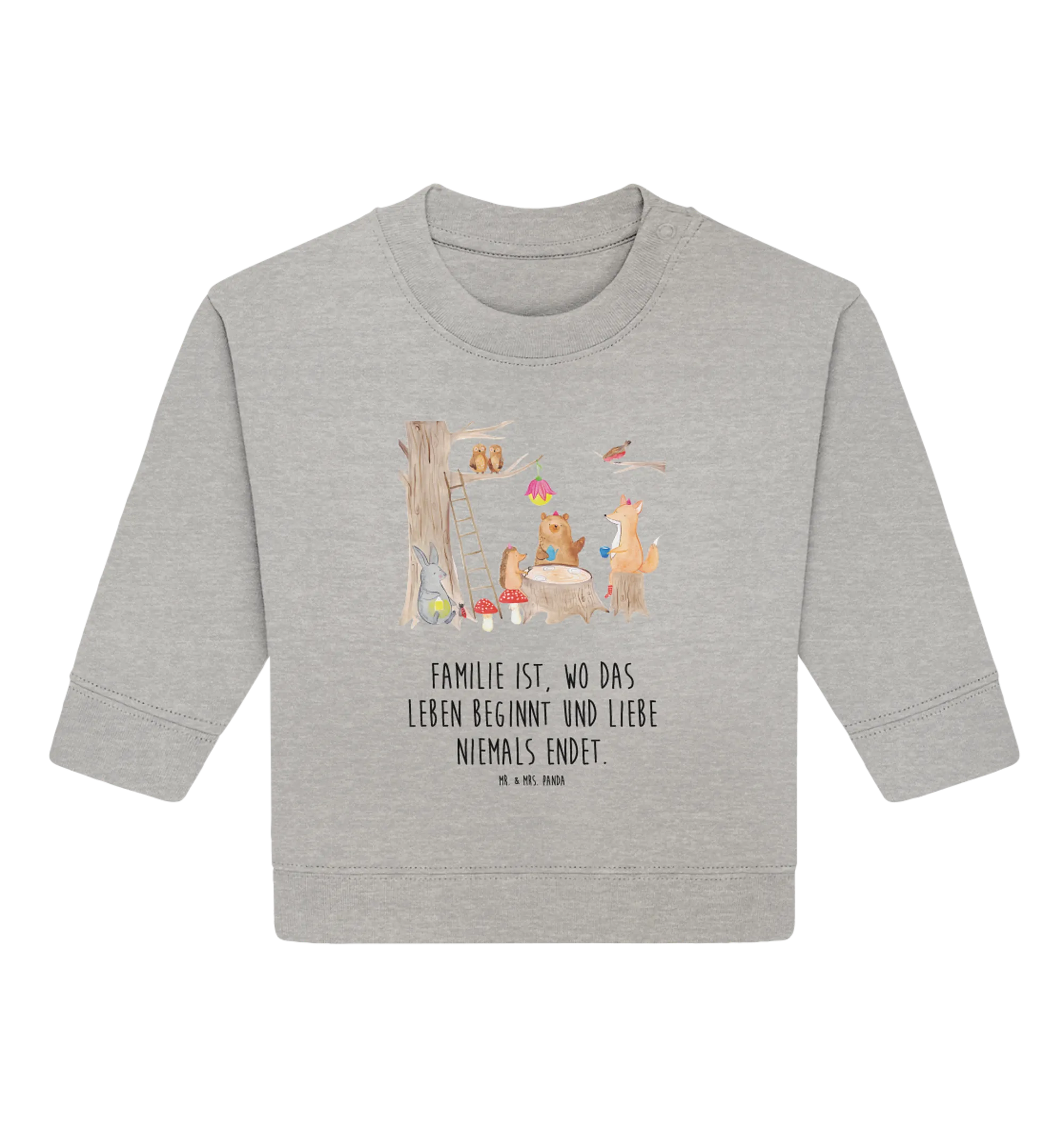 Der Organic Baby Pullover mit dem zauberhaften Motiv "Waldtiere Picknick" aus der beliebten Small World Kollektion von Mr. & Mrs. Panda ist das perfekte Geschenk für kleine Abenteurer und ihre liebevollen Familien!