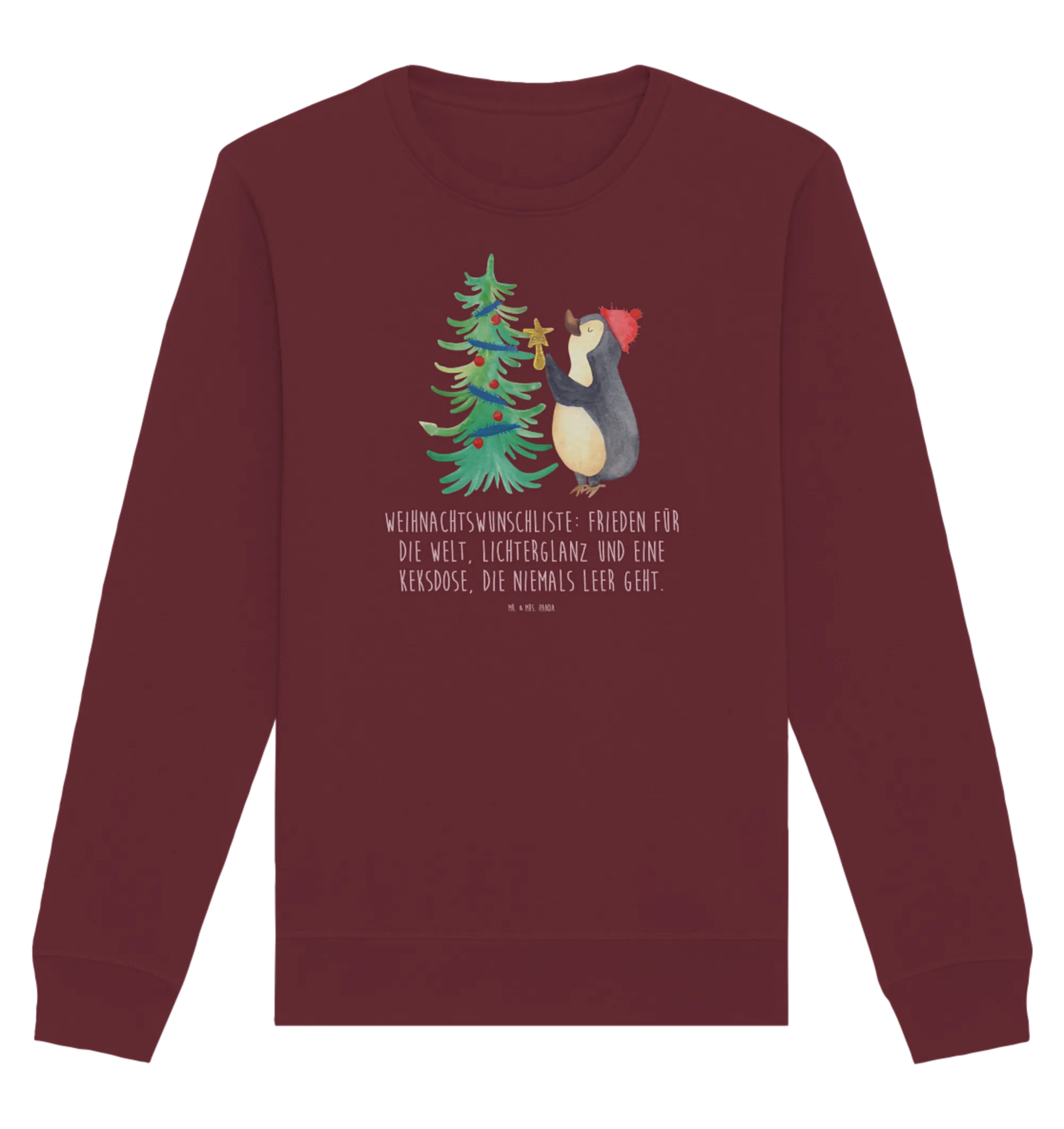 Schmeiß dich in den Pullover und genieße die Zeit mit deinen Liebsten. Mit dem sanften burgunderfarbenen Hintergrund sieht er nicht nur elegant aus, sondern passt auch perfekt zur Weihnachtsdeko. Denk daran, wenn du jemanden glücklich machen möchtest – mit dem Pinguin Weihnachtsbaum Pullover von Mr. & Mrs. Panda liegst du genau richtig. Er wird nicht nur als Kleidungsstück getragen, sondern wird auch zu einer schönen Erinnerungsstück, das die besinnliche Zeit immer wieder aufleben lässt. Hol dir dieses schöne Teil und erlebe die magischen Momente, die die Weihnachtszeit mit sich bringt!