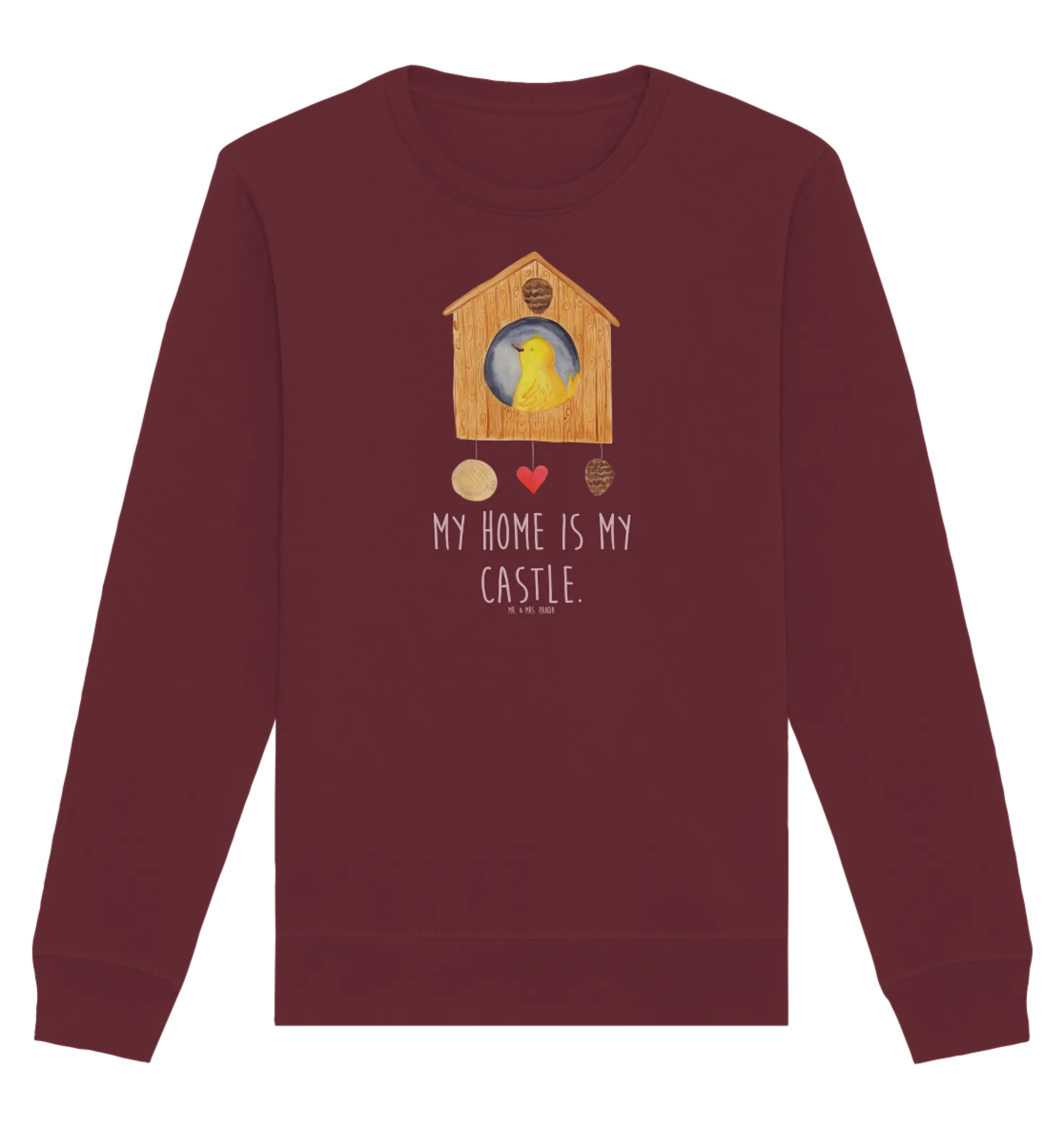 Organiczny Sweter ptak Dom - Rozmiar M - z napisem - Burgund