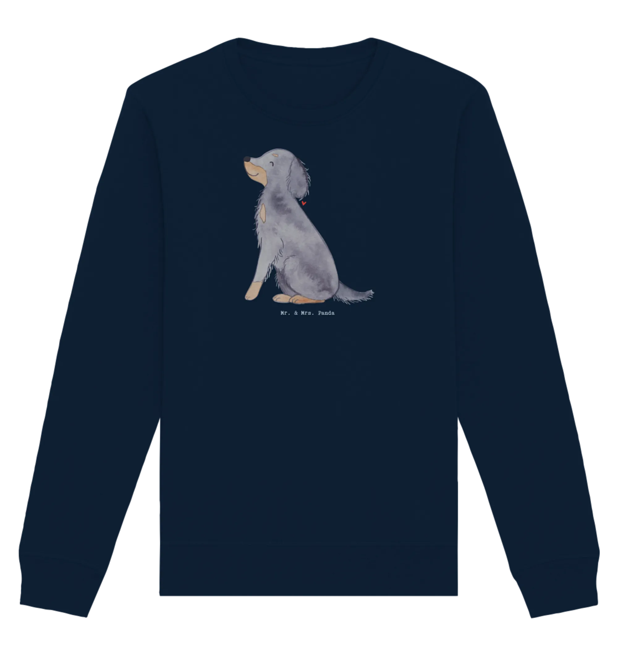 Organic Pullover „Gordon Setter Moment“ – ein Bio-Pullover von Mr. & Mrs. Panda, der Herz und Umwelt vereint. Das handgezeichnete Aquarellmotiv zeigt einen entspannten Gordon Setter mit geschlossenen Augen und einem zufriedenen Lächeln. Dieses liebevoll gestaltete Motiv vermittelt Ruhe, Dankbarkeit und die besondere Verbindung zwischen Mensch und Hund.