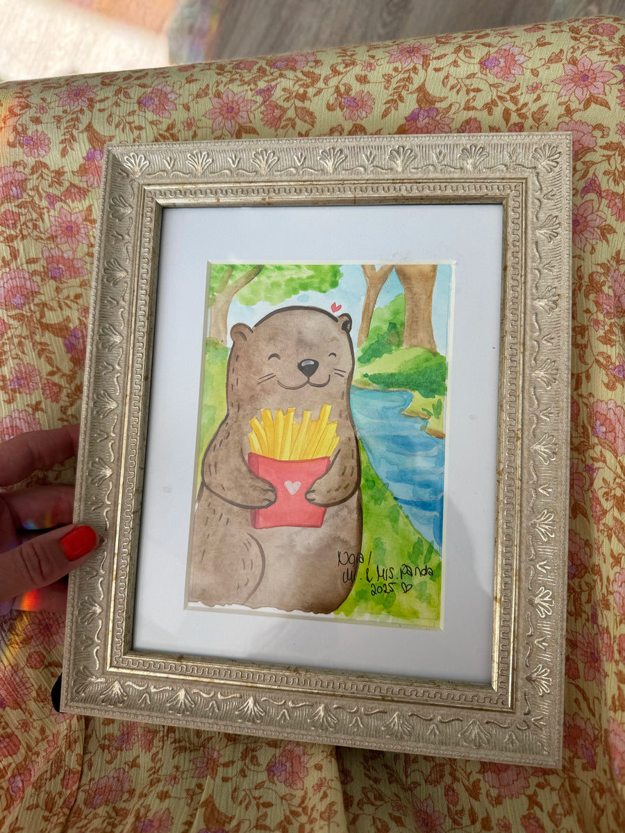 Oryginalny Akwarelowy rysunek "Pommes-Otter" w ramce
