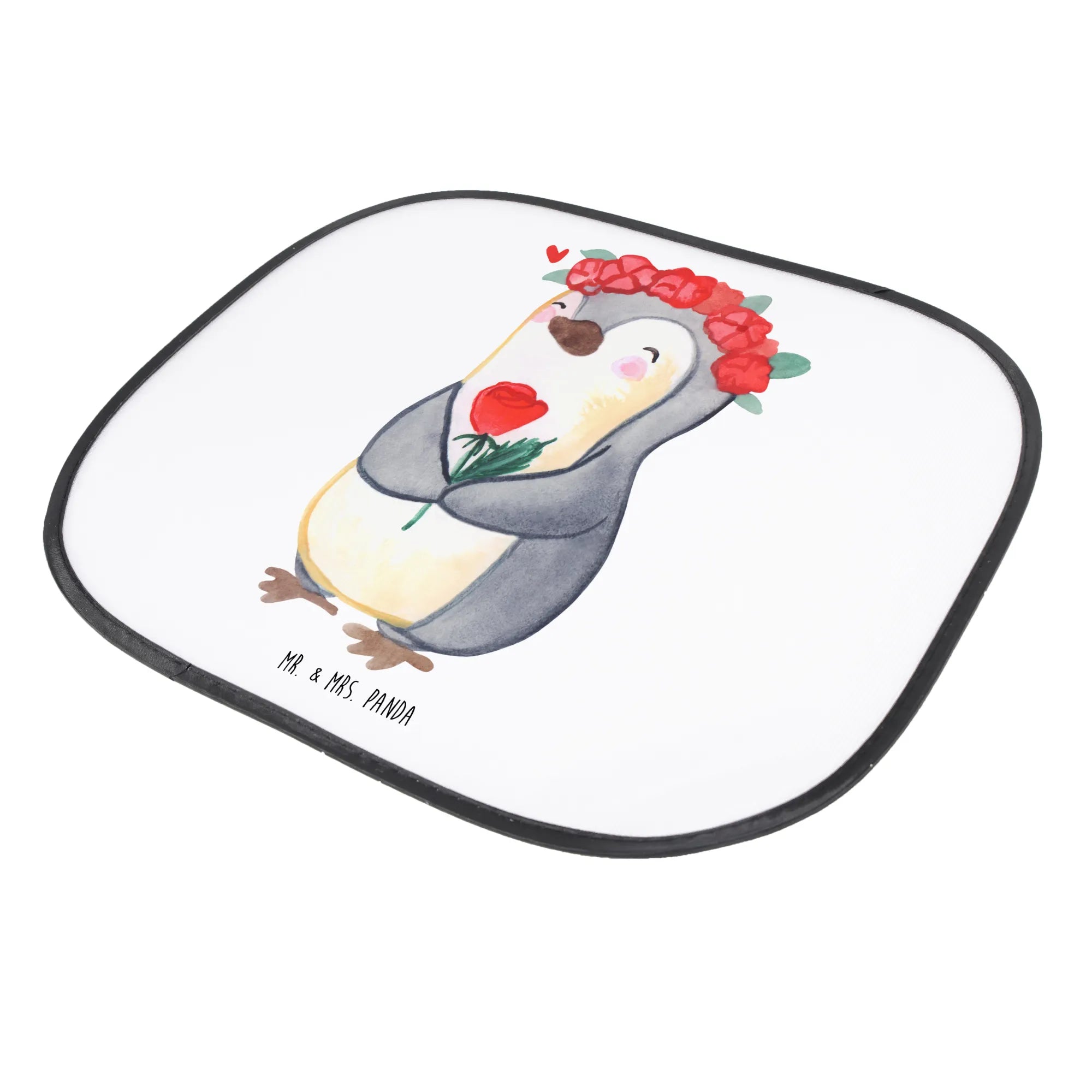 Suchst Du ein hübsches und zugleich praktisches Geschenk für eine Frau mit Sternzeichen Jungfrau? Unser Autosonnenschutz mit dem liebevollen Pinguin-Motiv aus der Sternzeichen-Kollektion ist genau das: funktional, verspielt und voller Herz. Die handgezeichnete Aquarell-Illustration zeigt einen verträumten Pinguin mit Blumenkranz und roter Rose – perfekt für Jungfrau-Fans, die Bodenständigkeit und Zärtlichkeit verbinden. 🌸