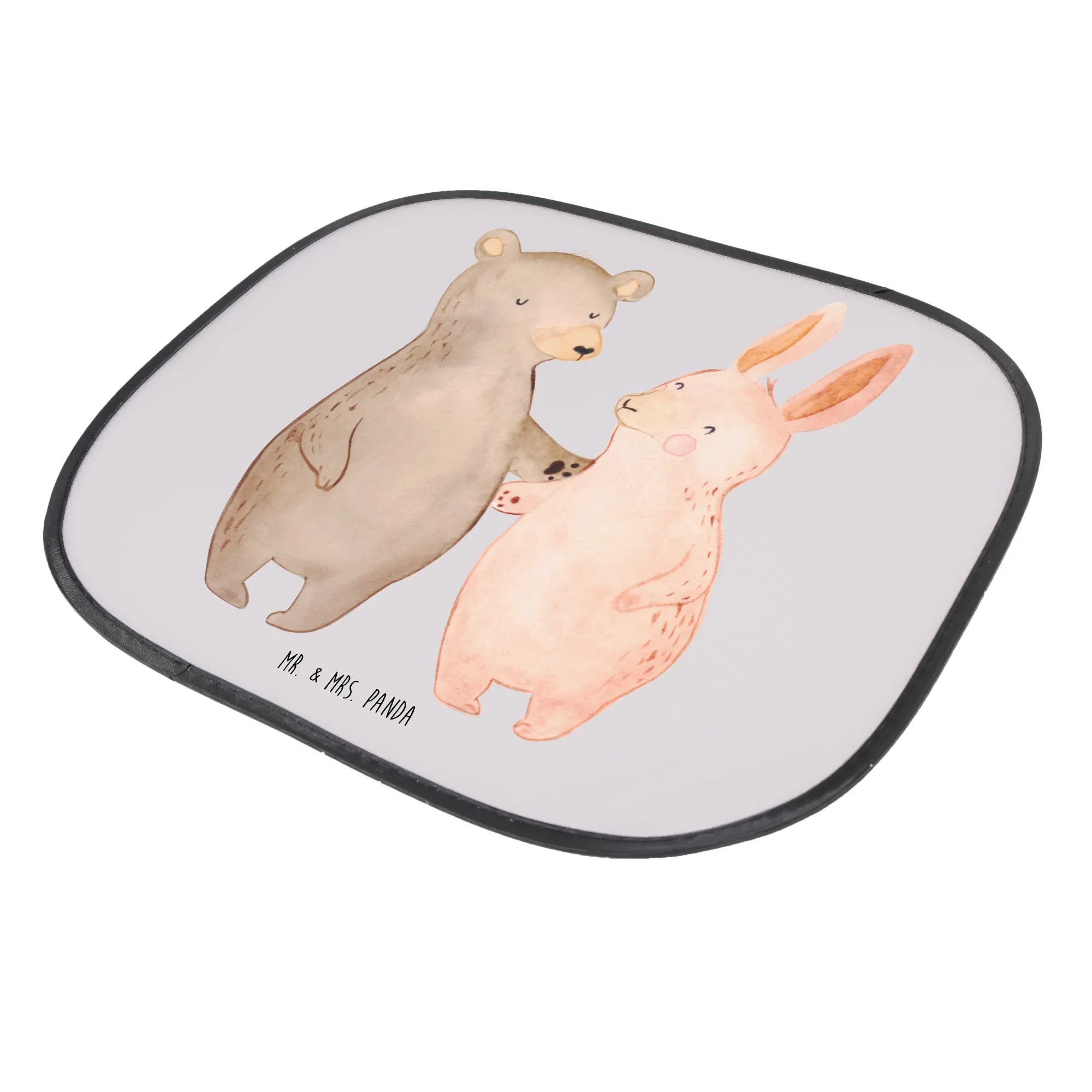 Osłona przeciwsłoneczna do samochodu Niedźwiedź i królik Przytulać - z napisem - Biały