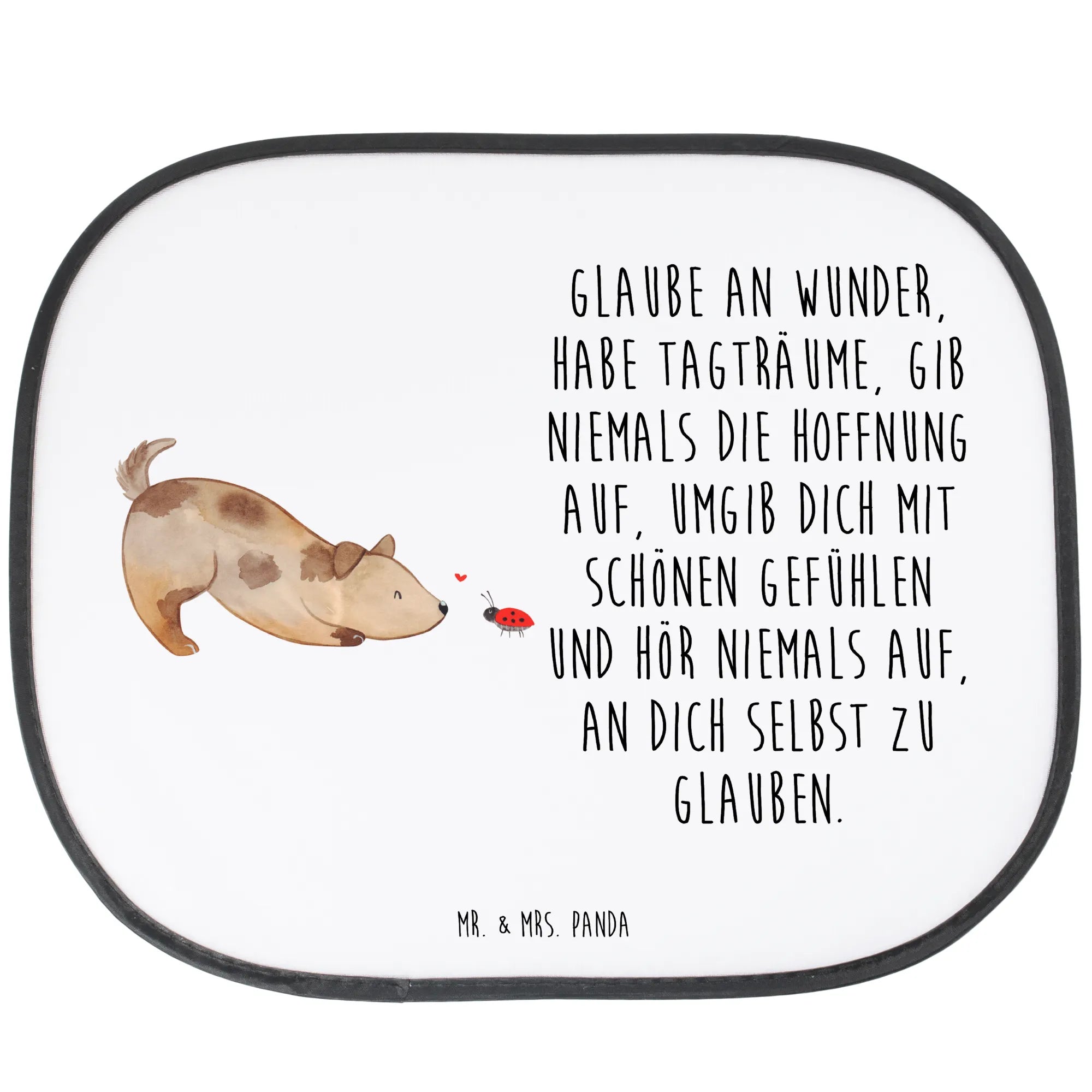 Osłona przeciwsłoneczna do samochodu pies biedronka - z napisem - biały