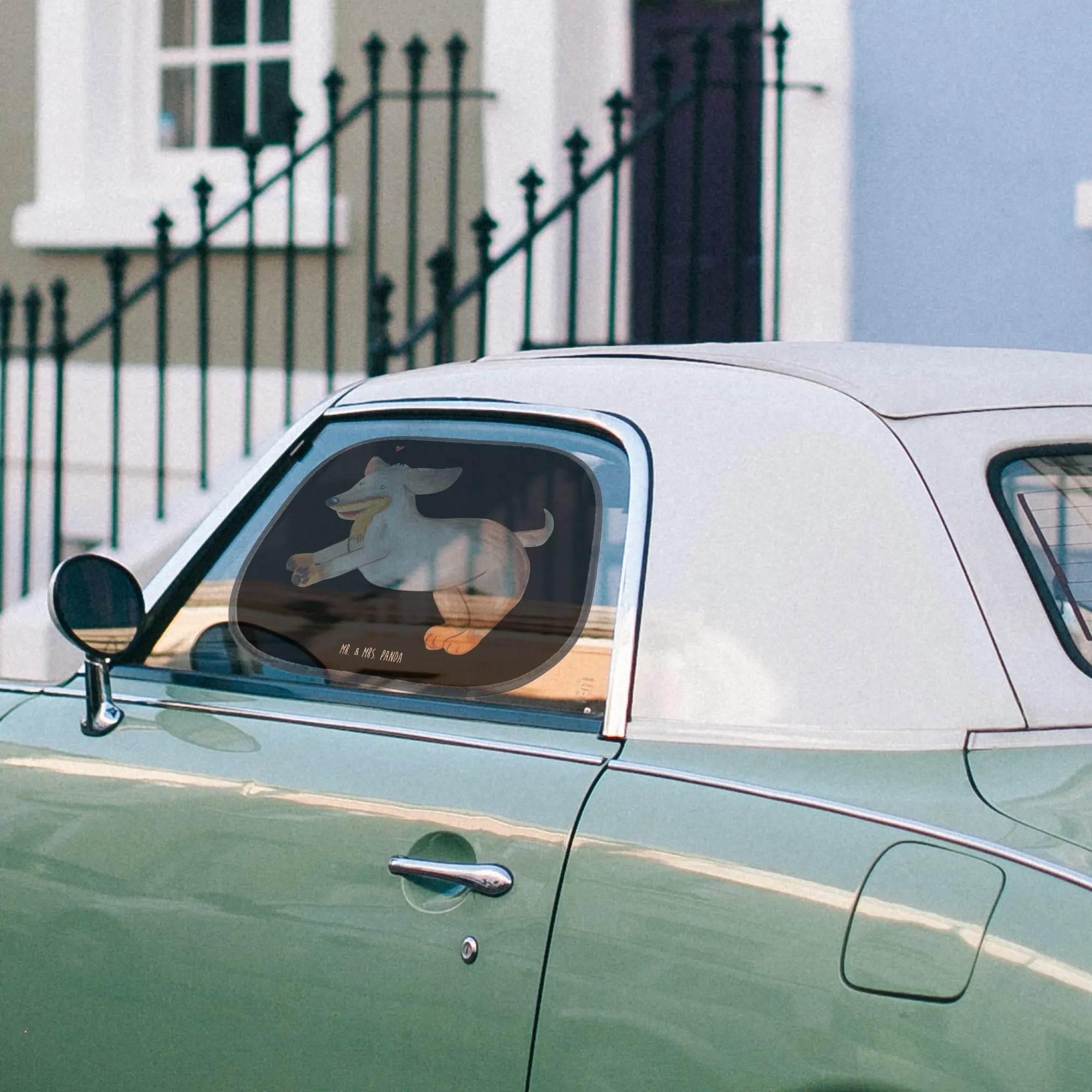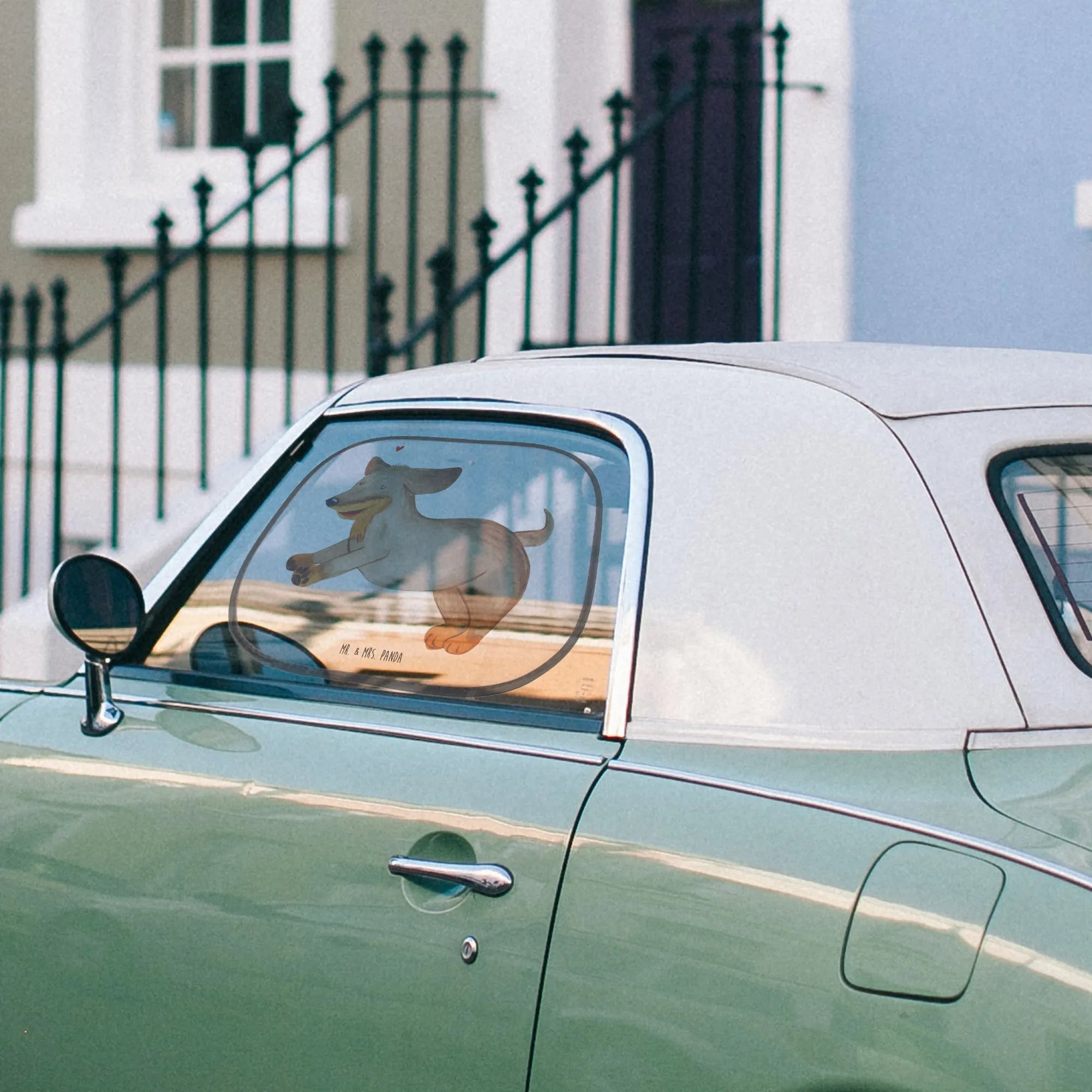 Osłona przeciwsłoneczna do samochodu pies Jamnik - z napisem - Biały
