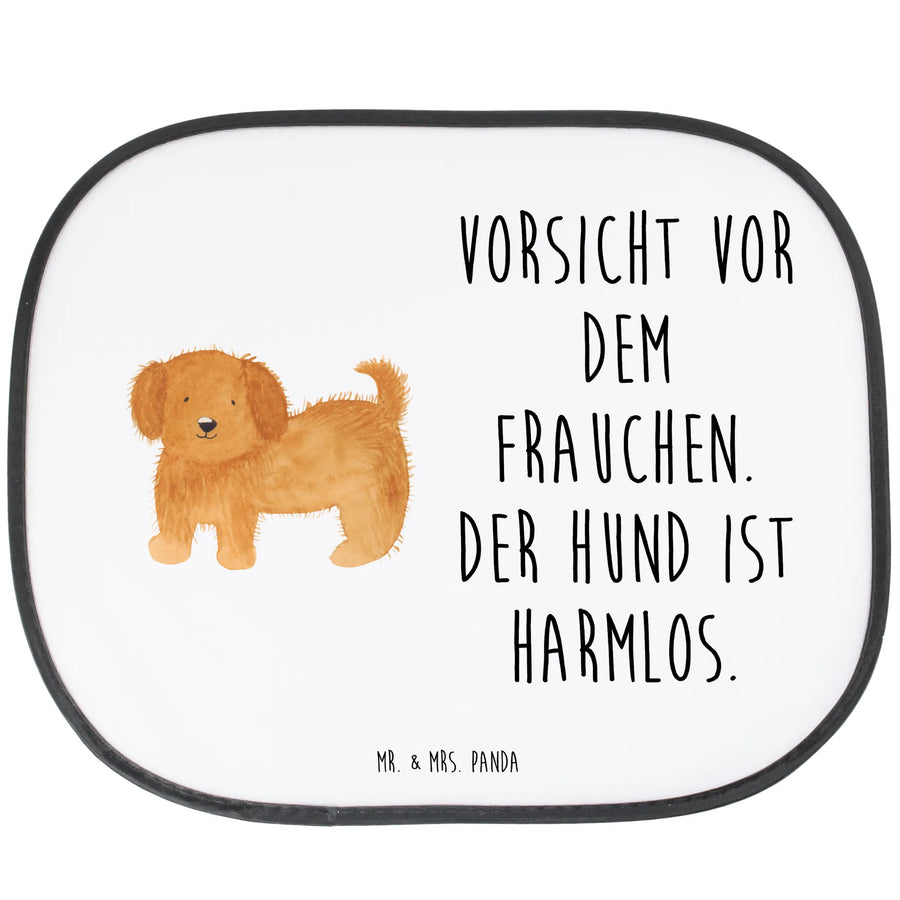 Osłona przeciwsłoneczna do samochodu pies puszysty - z napisem - biały