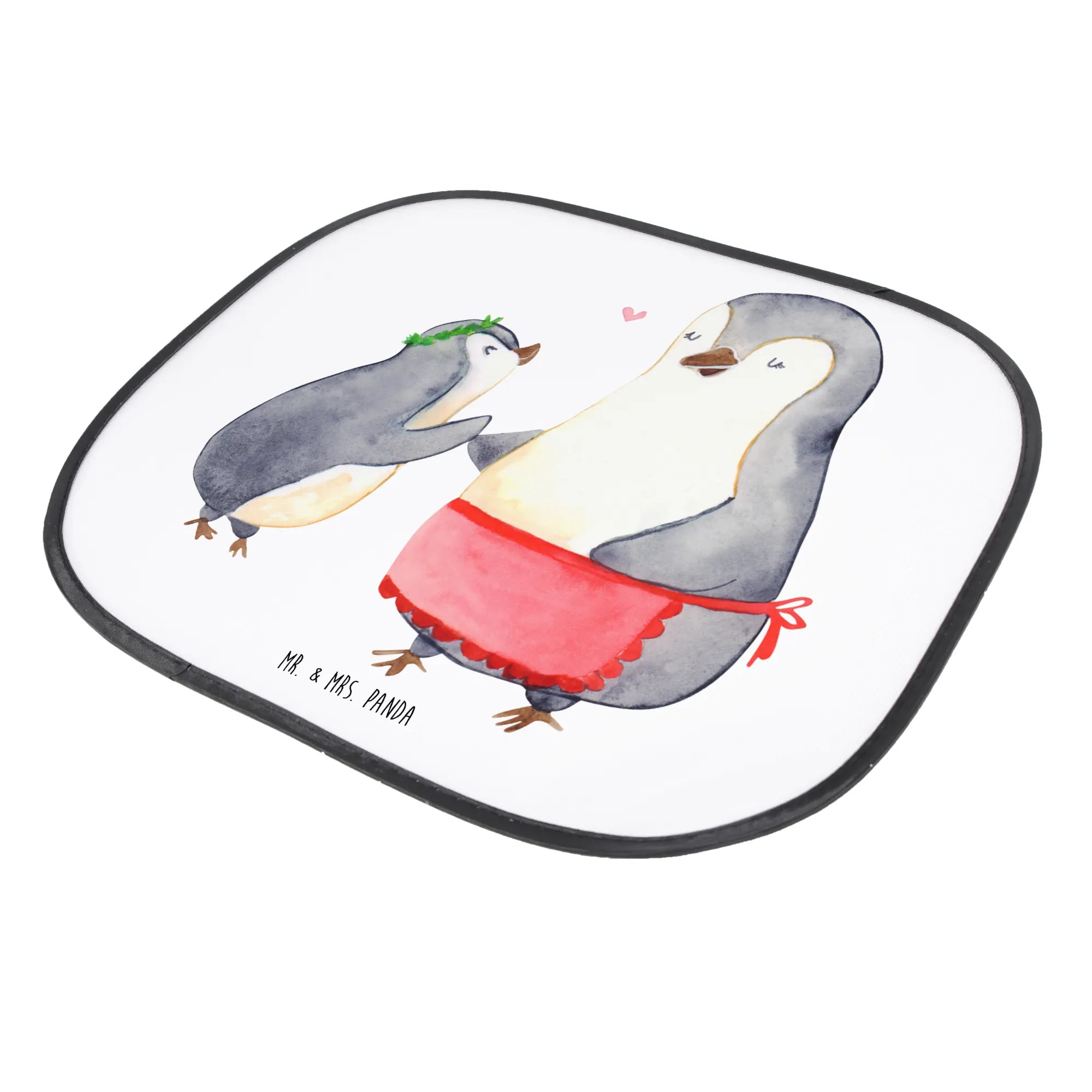 Osłona przeciwsłoneczna do samochodu Pingwin z dzieckiem - z napisem - Biały