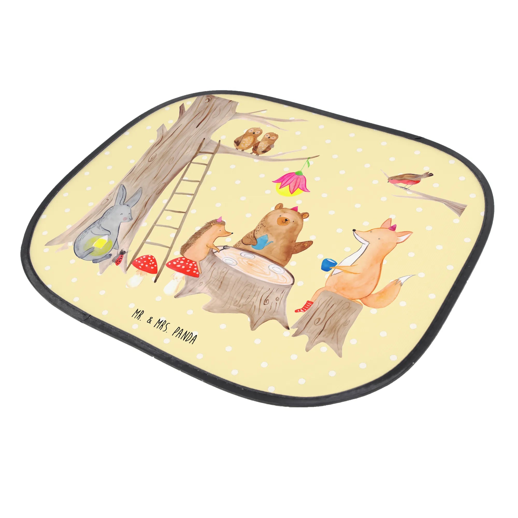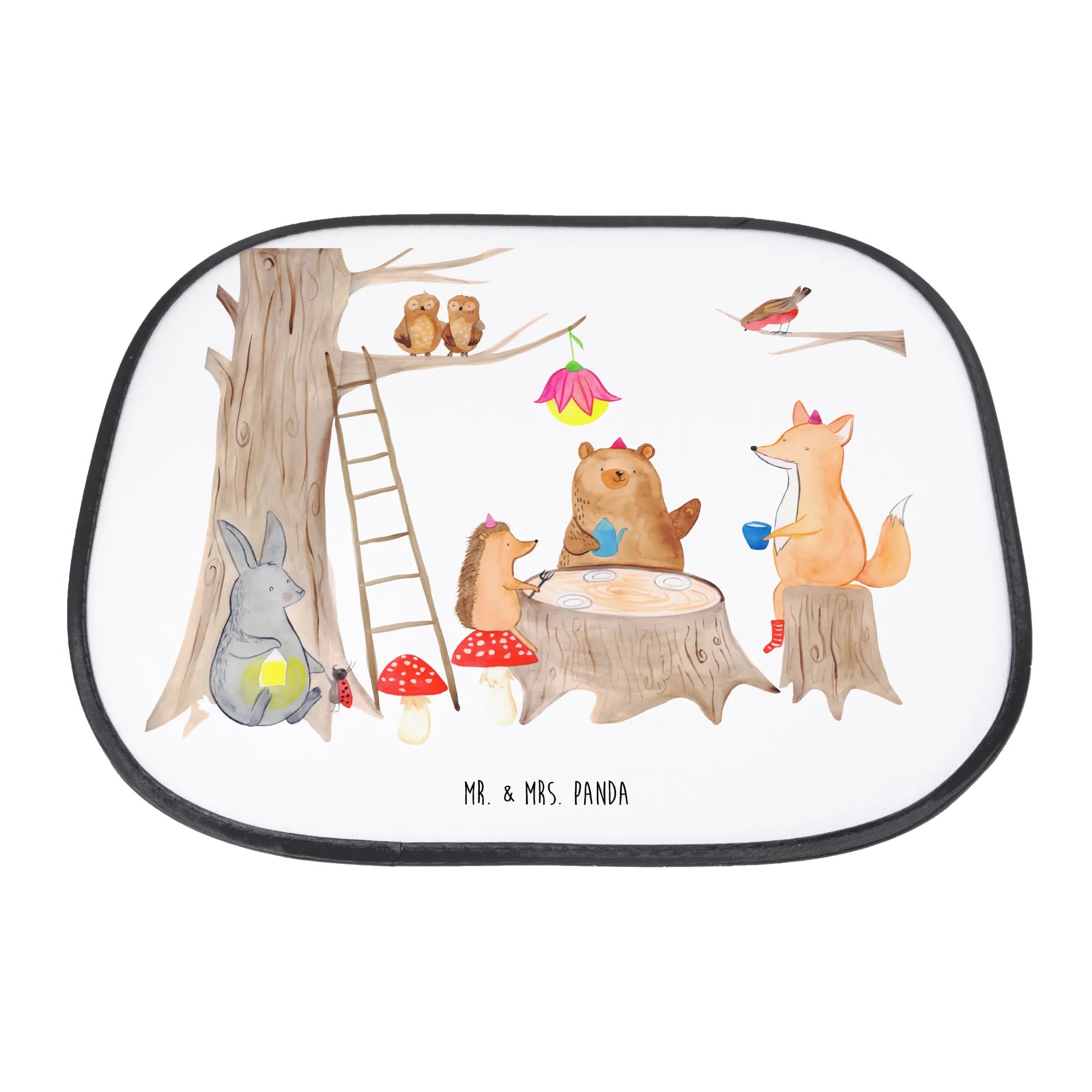 Osłona przeciwsłoneczna do samochodu zwierzęta leśne piknik - z napisem - Biały
