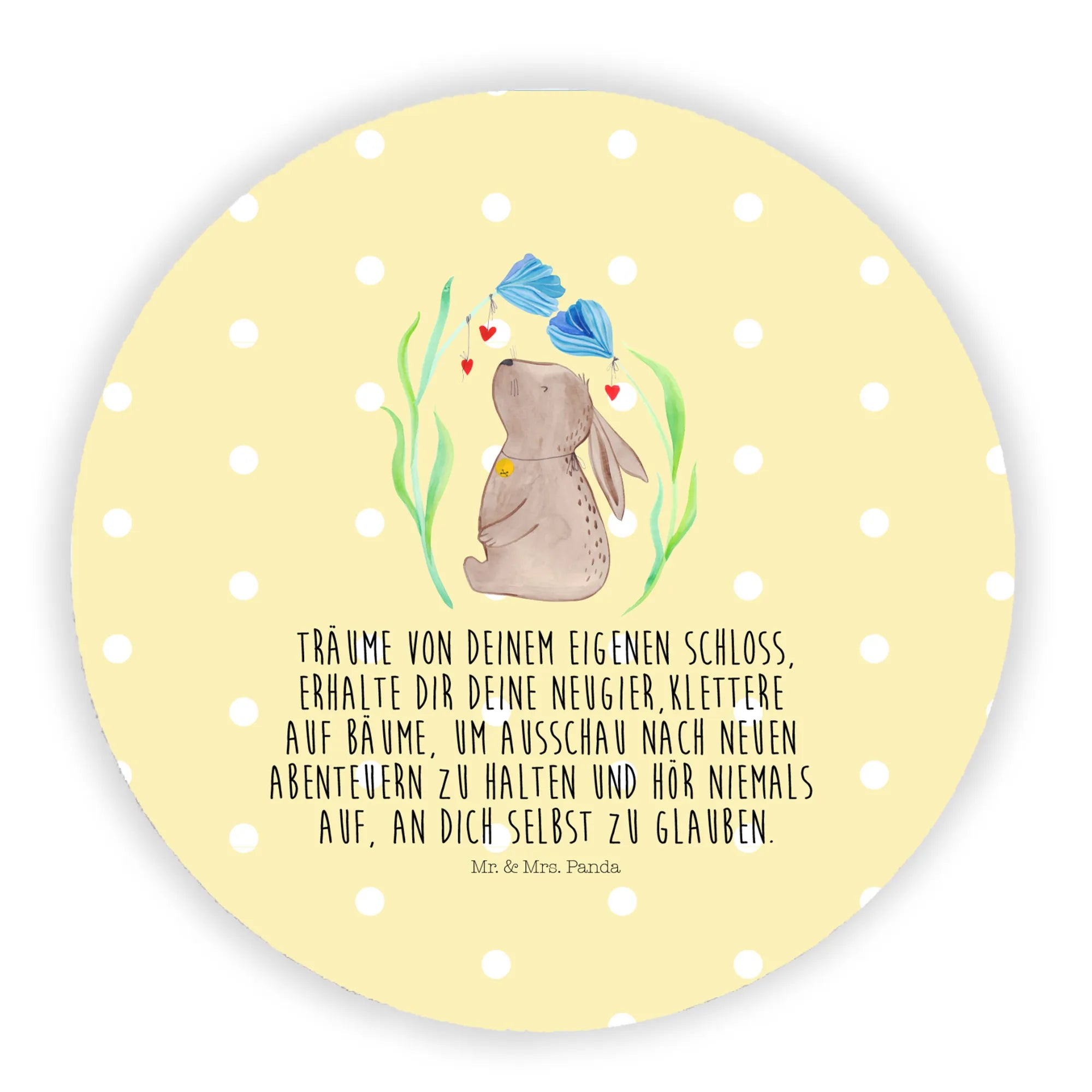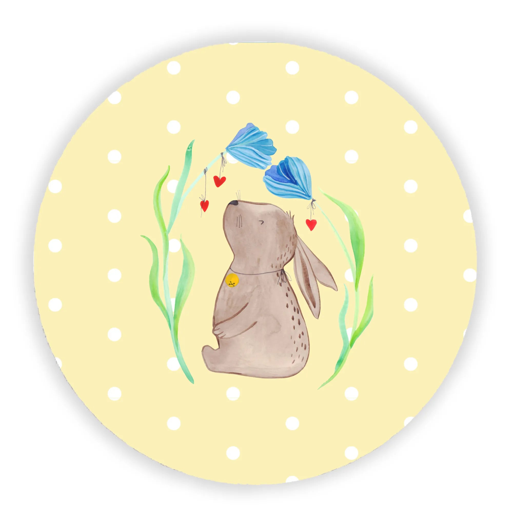Okrągły magnes królik kwiat - z napisem - Pastelowy żółty