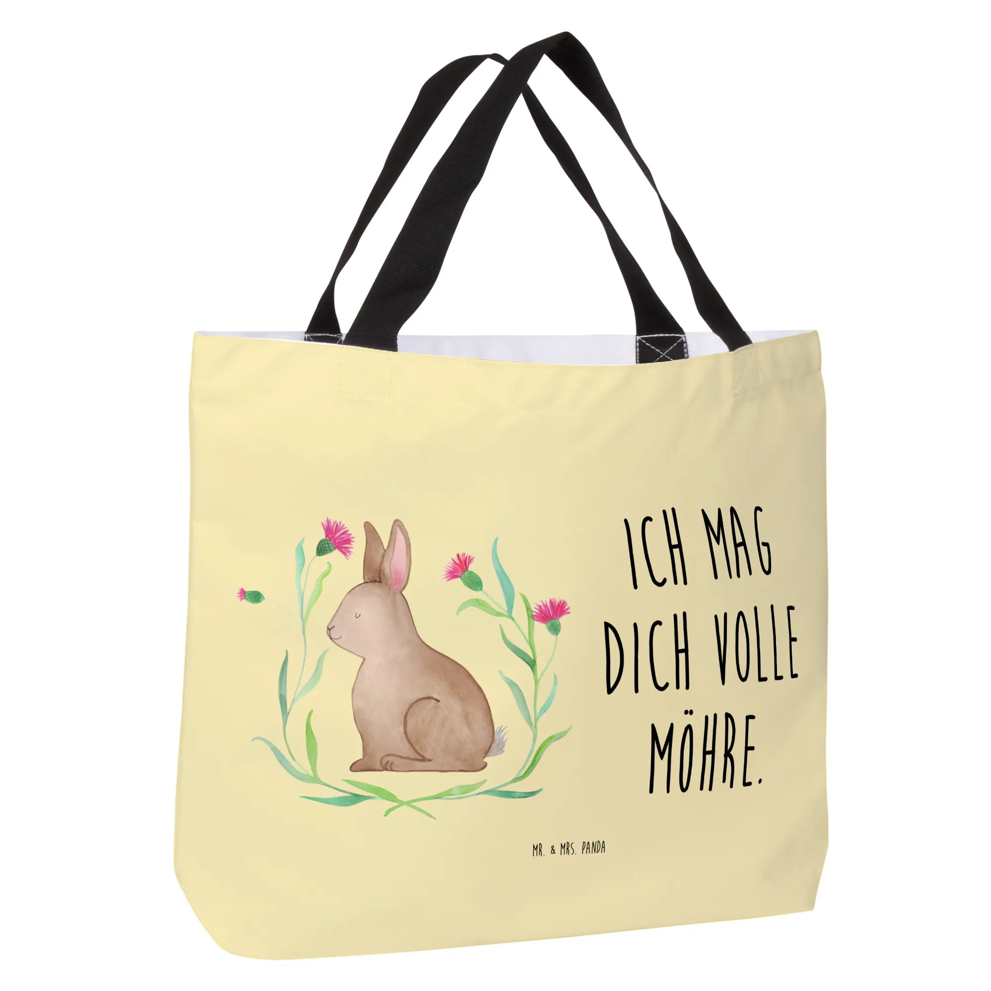 Shopper zając siedzenie - z napisem - Pastelowy żółty