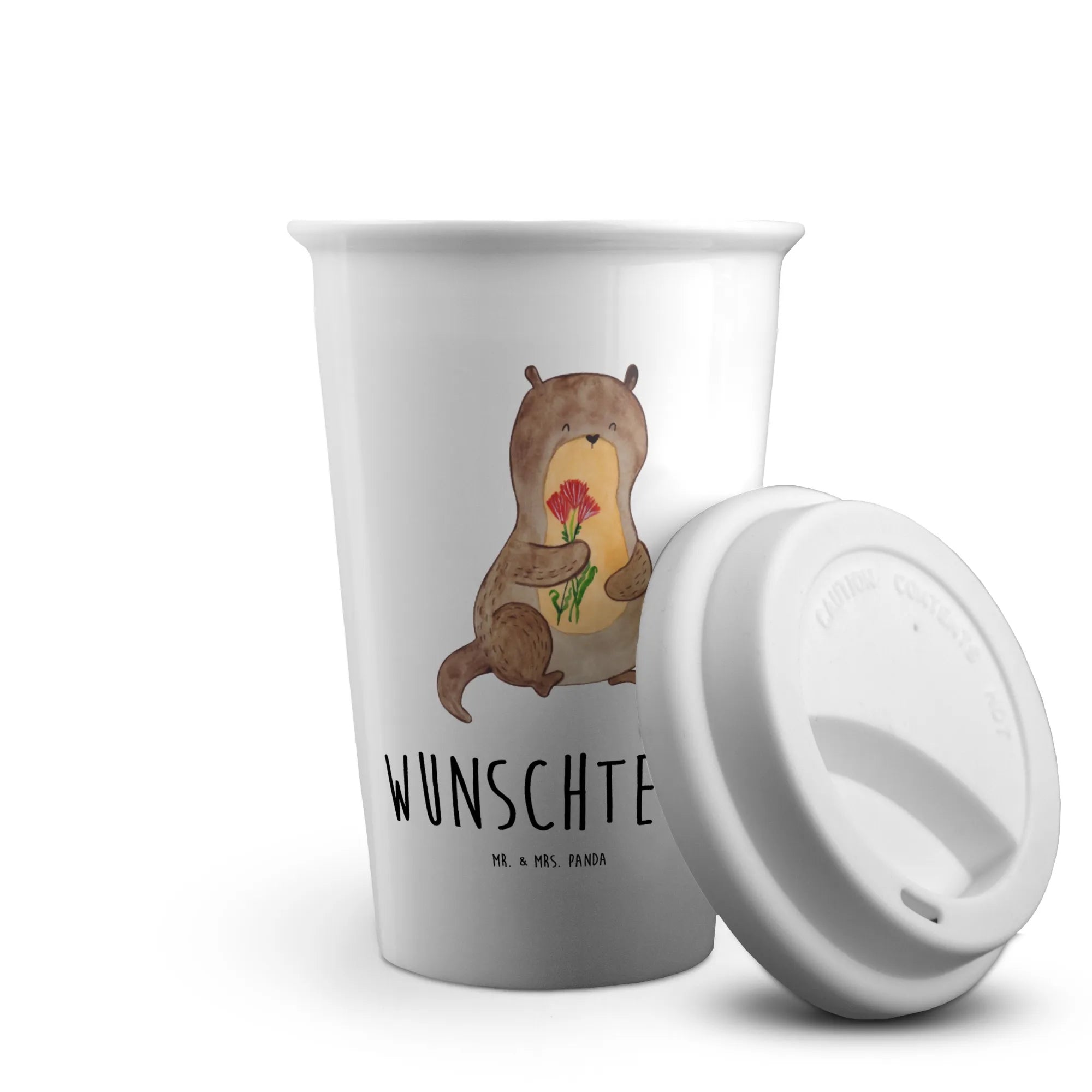 Personalisierter To Go Becher Otter Blumenstrauß – Mr. & Mrs. Panda