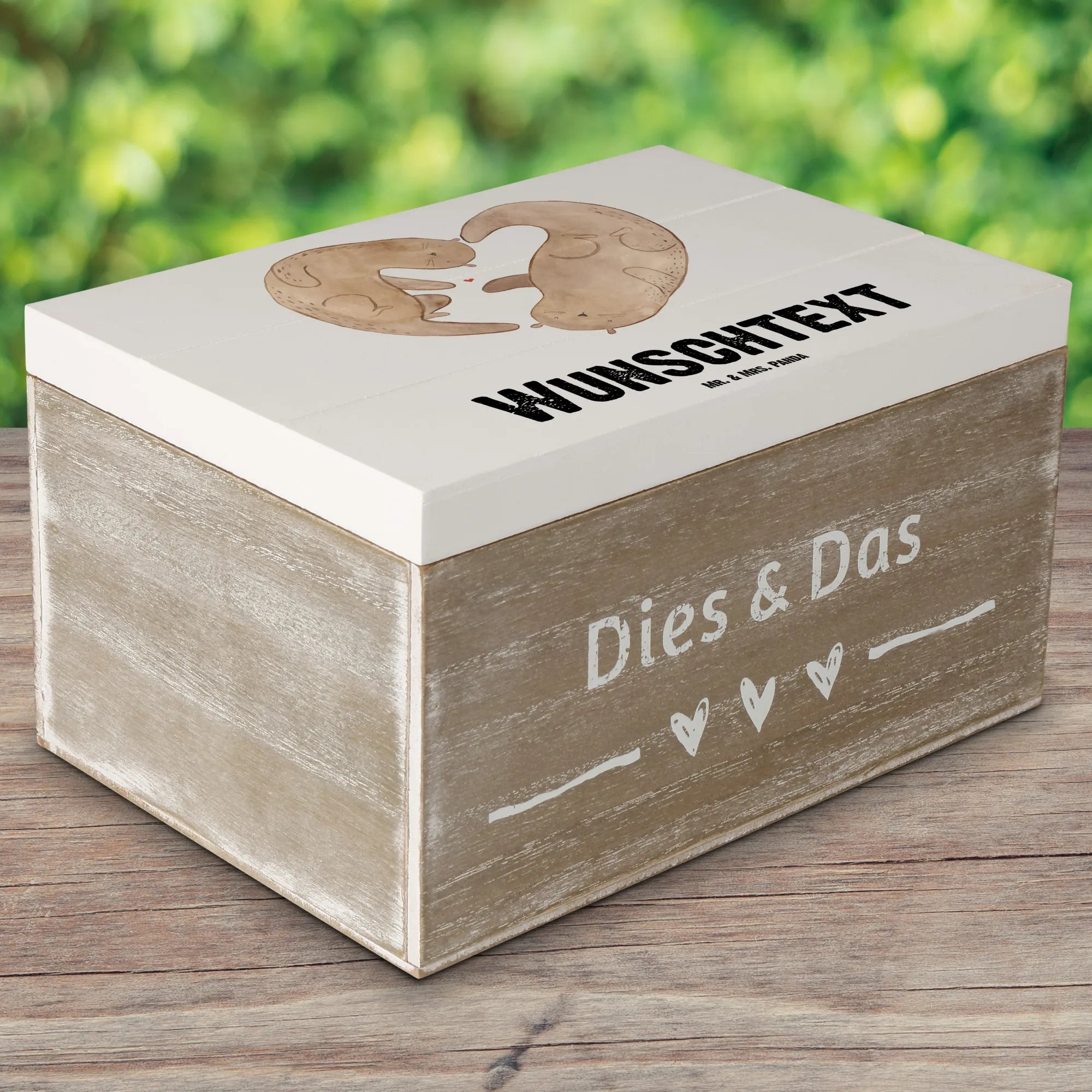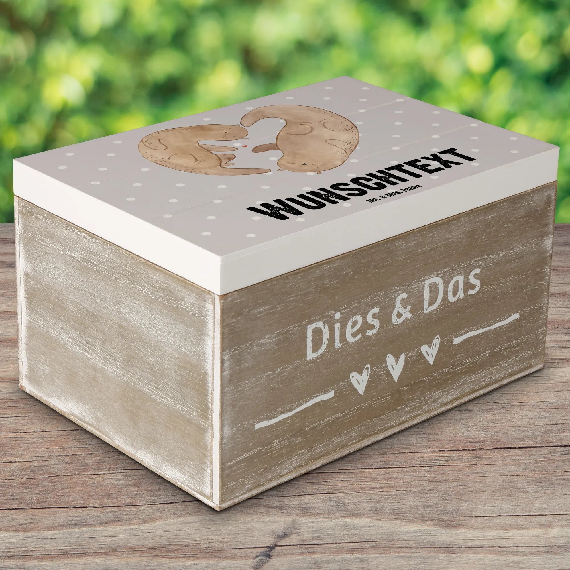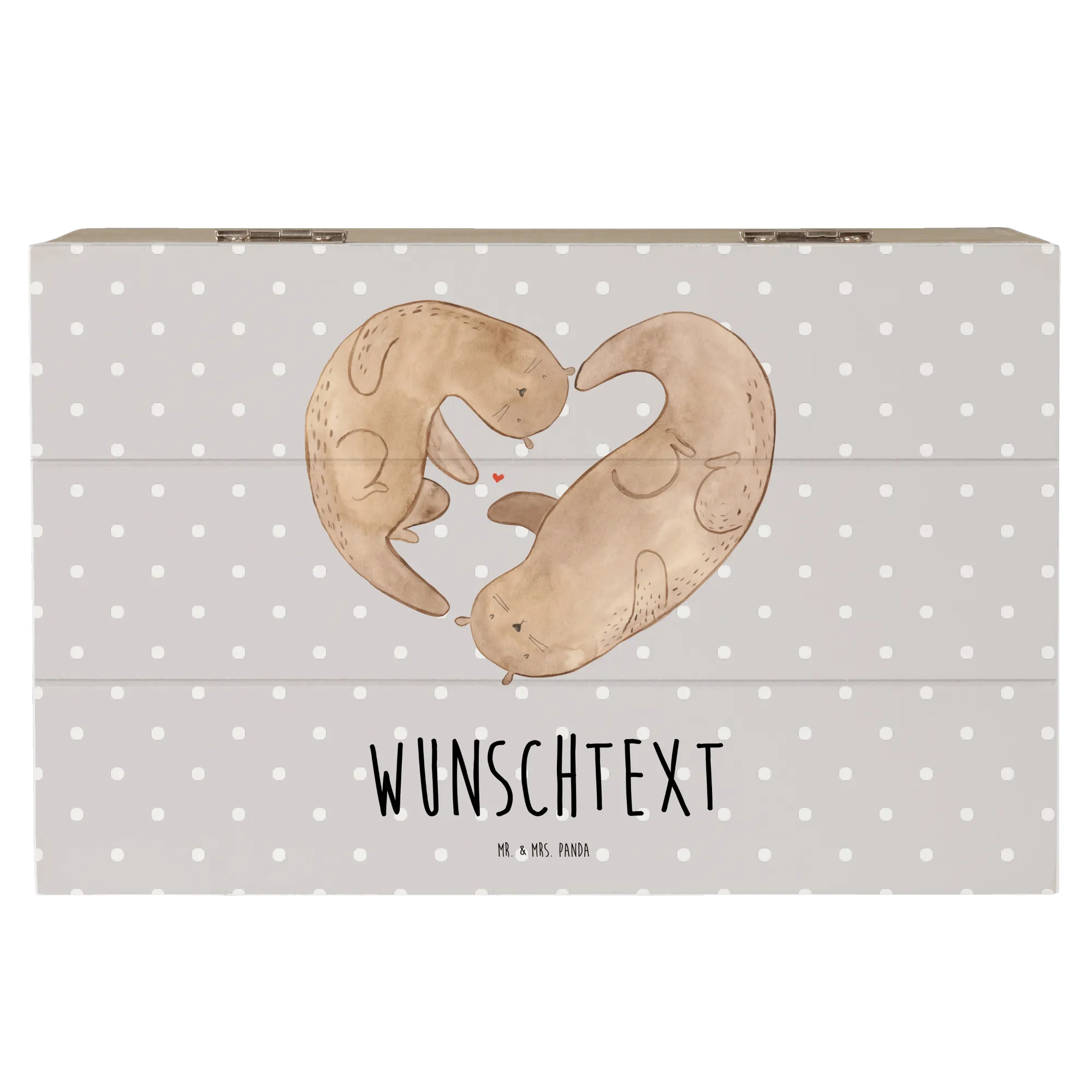 Personalizowane drewniane pudełko wydra serce - 22 x 15 cm - Szary Pastel