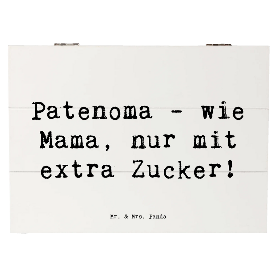 Entdecke die bezaubernde Holzkiste "Patenoma - wie Mama, nur mit extra Zucker!" von Mr. & Mrs. Panda, die perfekt geeignet ist, um die besondere Rolle der Patenoma in unserer Familie zu würdigen.