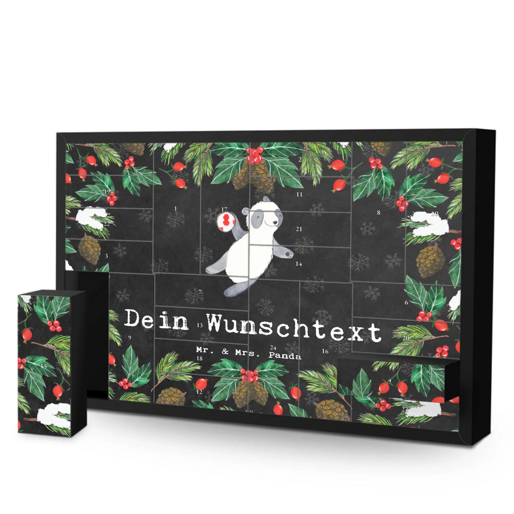 Suchst du das perfekte Geschenk für Handballbegeisterte? Dann ist der personalisierte, befüllbare Adventskalender von Mr. & Mrs. Panda genau das Richtige! Dieser wunderschöne Adventskalender bietet Platz für 24 kleine Überraschungen, die du selbst befüllen kannst. Ob Pralinen, kleine Handballartikel oder persönliche Botschaften – du entscheidest, was dein Lieblingssportler in der Adventszeit findet.