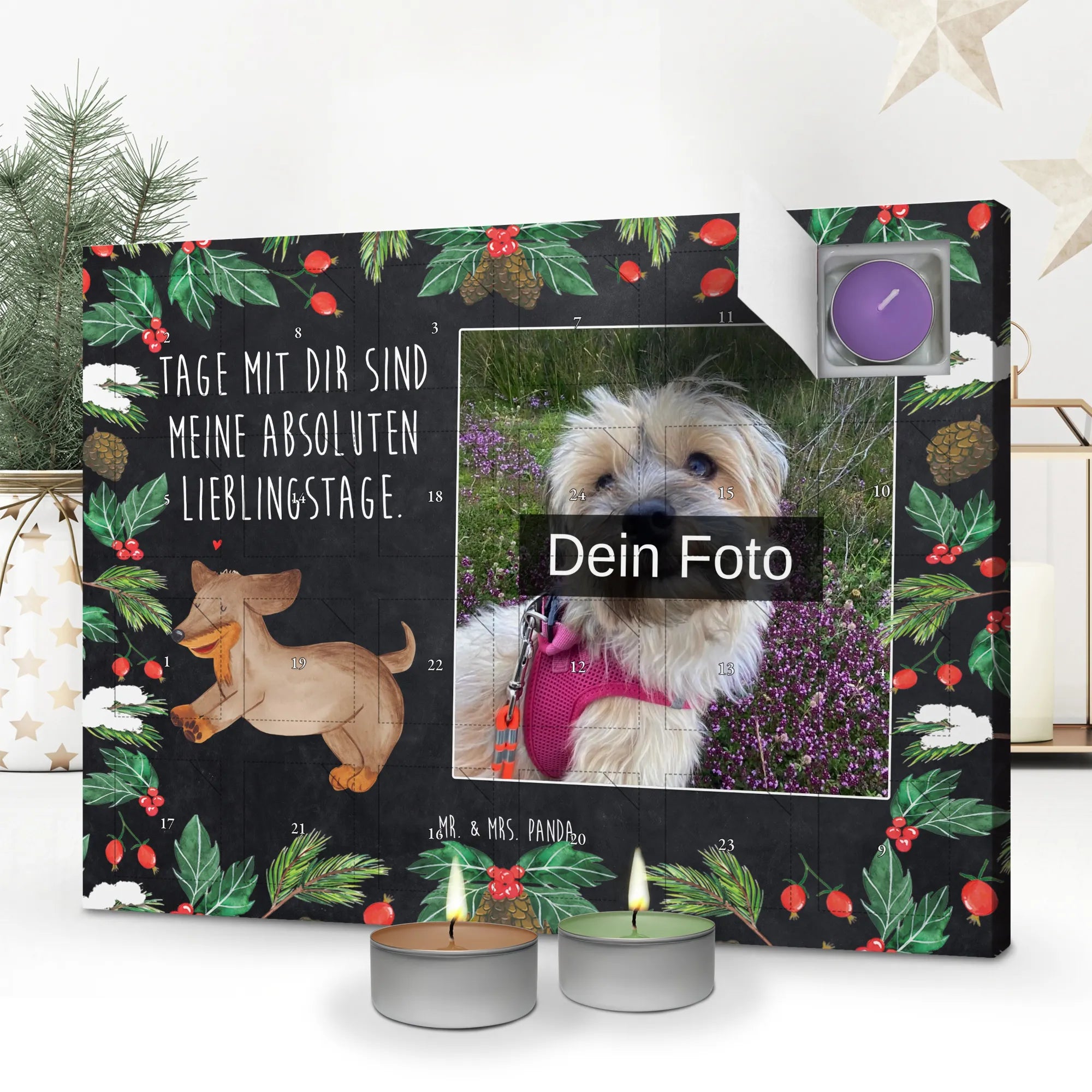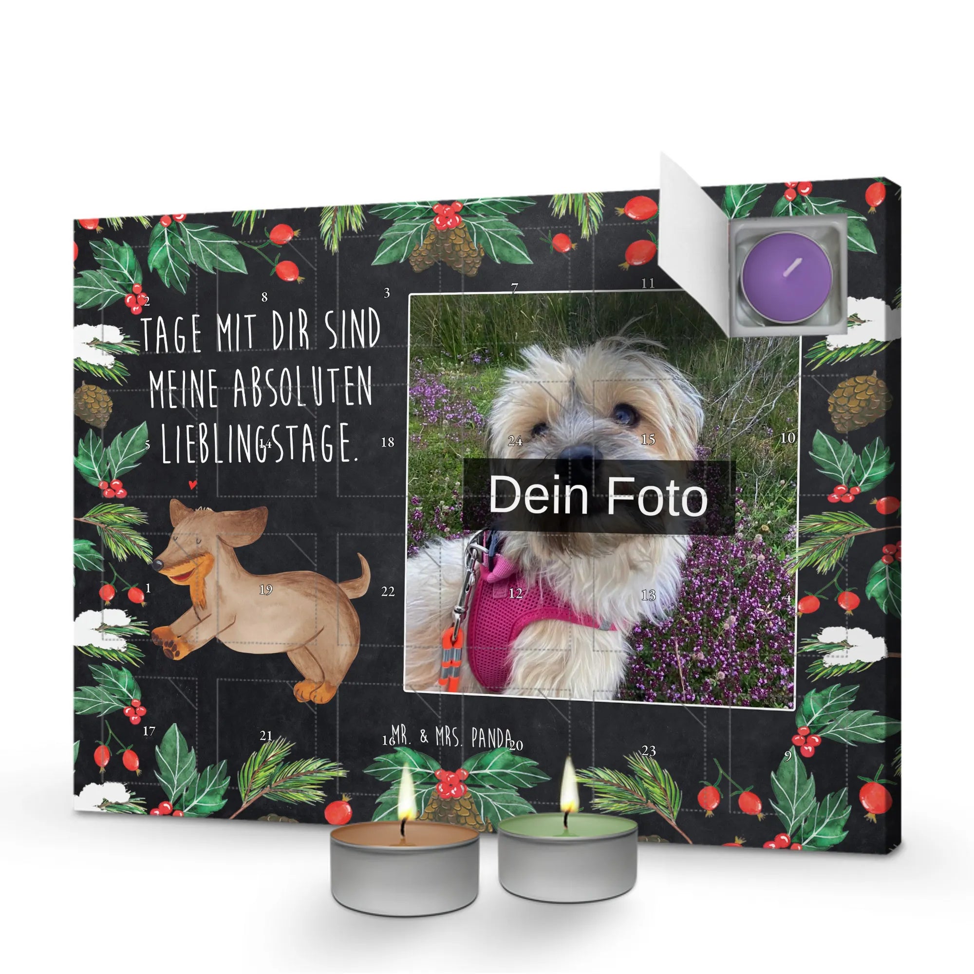 Personalisierter Duftkerzen Foto Adventskalender Hund Dackel