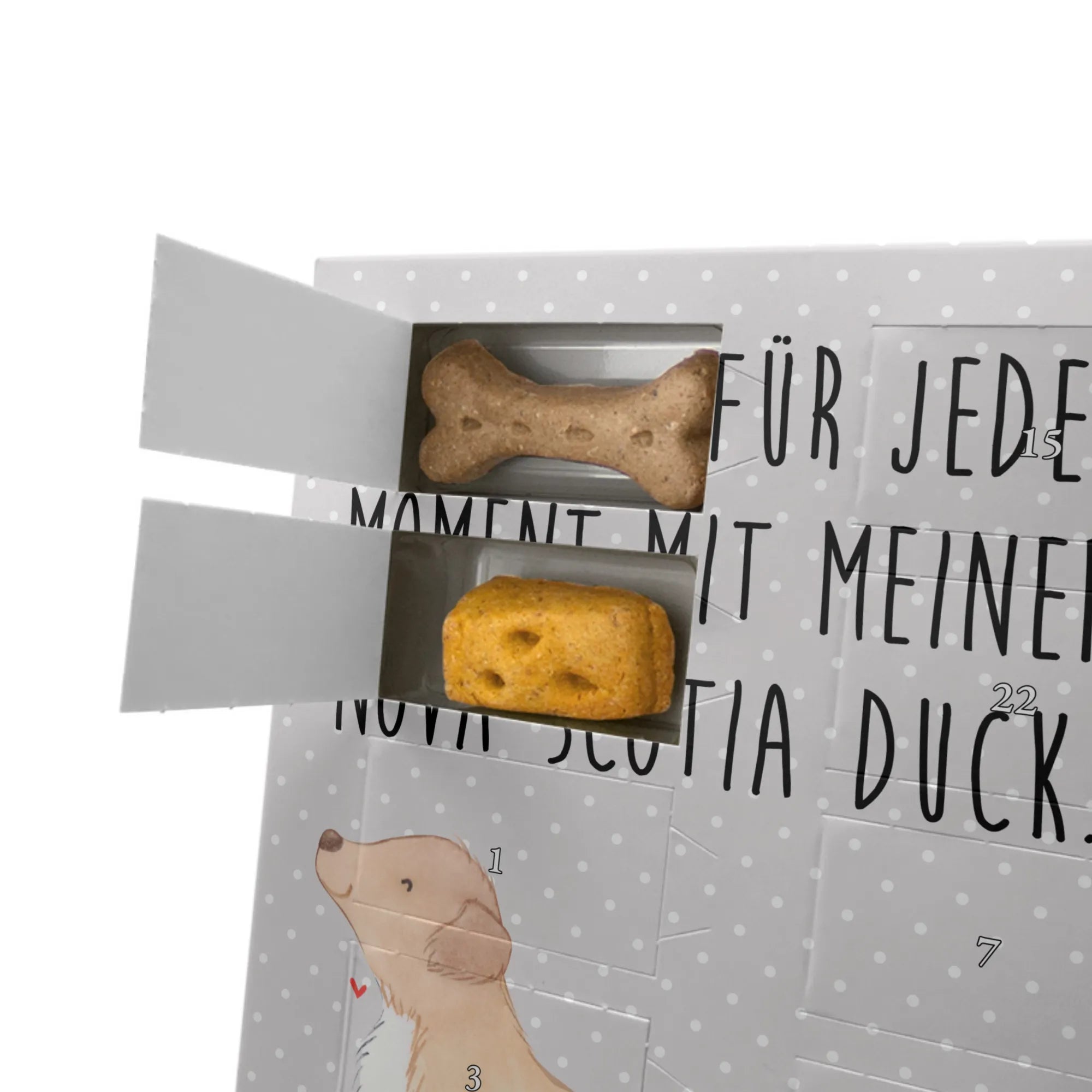 Wenn du einen Hund besitzt oder einem Freund ein Geschenk machen möchtest, welches sowohl praktisch als auch liebevoll ist, ist dieser Adventskalender genau der richtige. Ideal für Weihnachten, Geburtstagsgeschenke oder einfach, um deinem lieben Vierbeiner eine Freude zu machen. Das Motiv aus der Kollektion Hunderasse von Mr. & Mrs. Panda zeigt einen liebevoll gezeichneten Nova Scotia Duck Tolling Retriever in leuchtenden Brauntönen, der jedem Betrachter ein Lächeln ins Gesicht zaubert. Dieses Produkt ist ein echtes Highlight in der Adventszeit für jeden Hundebesitzer und zeigt, wie wichtig unsere pelzigen Freunde für uns sind. Denke daran, dass die Rücknahme bei personalisierten Artikeln ausgeschlossen ist, also wähle dein Bild weise, damit du lange Freude daran hast.